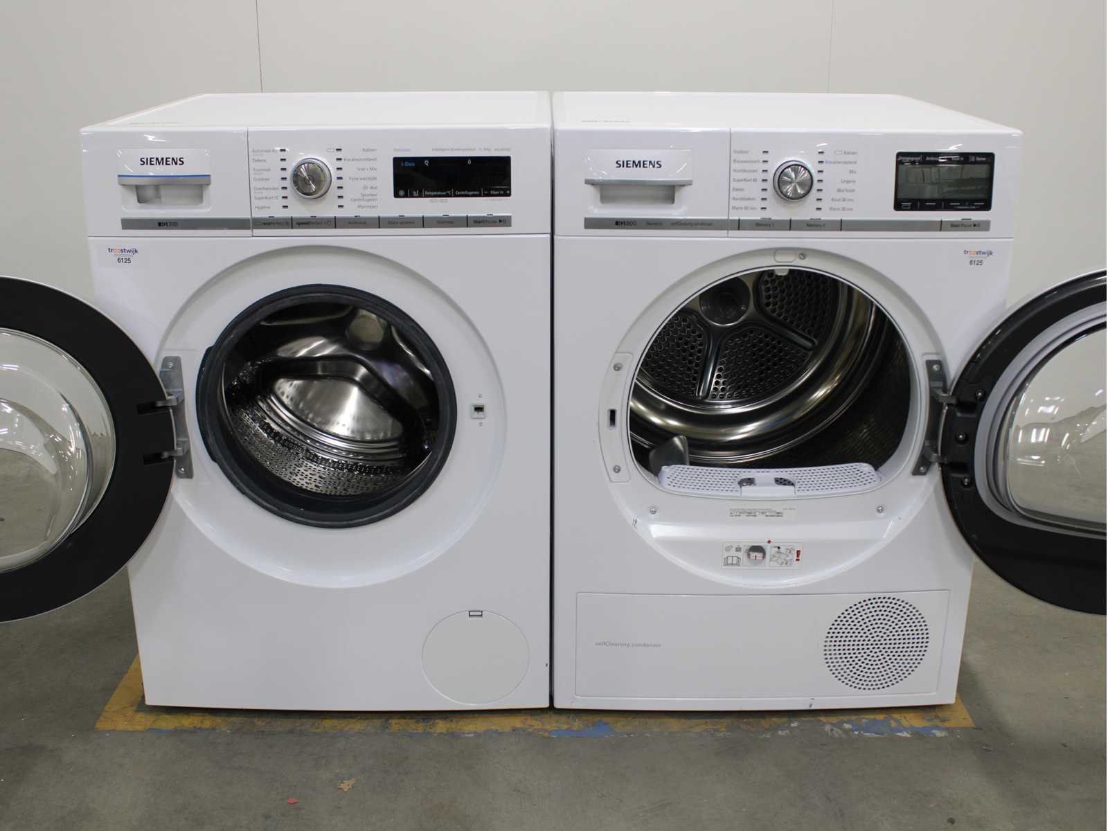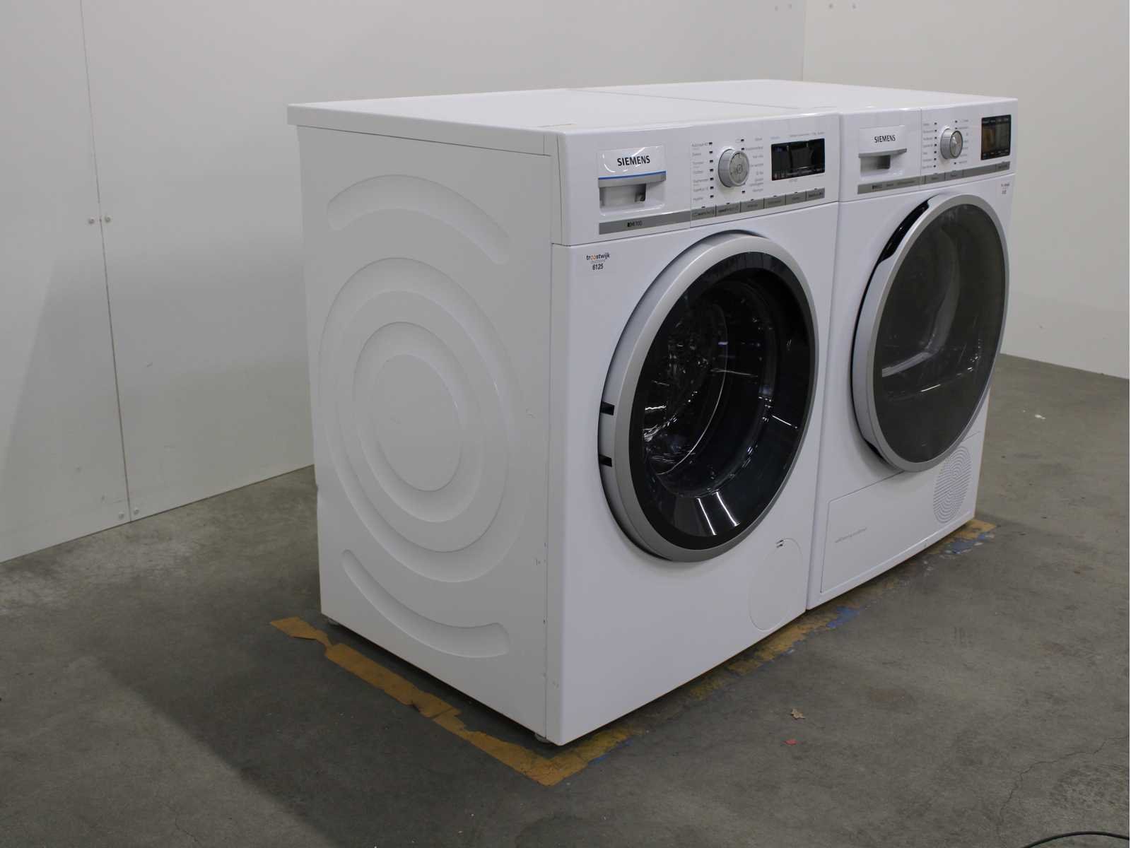 Deze wasmachine en wasdroger komen uit een partij jong gebruikt A-Merk witgoed. De machines zijn volledig getest, gereinigd en indien nodig gerepareerd. Houdt er rekening mee dat de machines lichte gebruikssporen kunnen hebben. Wasmachines en wasdrogers hebben vaak standaard afmetingen. Hoogte 85cm, Breedte 60cm en Diepte 60 tot 70cm, incl. uitstekende slangen e.d. aan de achterzijde. Als de machine vrij komt te staan is de afmeting minder relevant. Wil je de machine in een nis plaatsen of inbouwen? Controleer dan de exacte afmetingen op basis van het aangeboden merk en model/type. Within 7 days Merk: Siemens Serienummer: WM16W672NL en WT47Y700NL/19