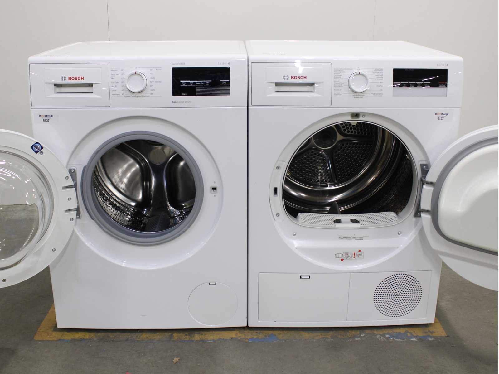Deze wasmachine en wasdroger komen uit een partij jong gebruikt A-Merk witgoed. De machines zijn volledig getest, gereinigd en indien nodig gerepareerd. Houdt er rekening mee dat de machines lichte gebruikssporen kunnen hebben. Wasmachines en wasdrogers hebben vaak standaard afmetingen. Hoogte 85cm, Breedte 60cm en Diepte 60 tot 70cm, incl. uitstekende slangen e.d. aan de achterzijde. Als de machine vrij komt te staan is de afmeting minder relevant. Wil je de machine in een nis plaatsen of inbouwen? Controleer dan de exacte afmetingen op basis van het aangeboden merk en model/type. Within 7 days Merk: Bosch Serienummer: WAT28321NL/18 en WTN83204FG