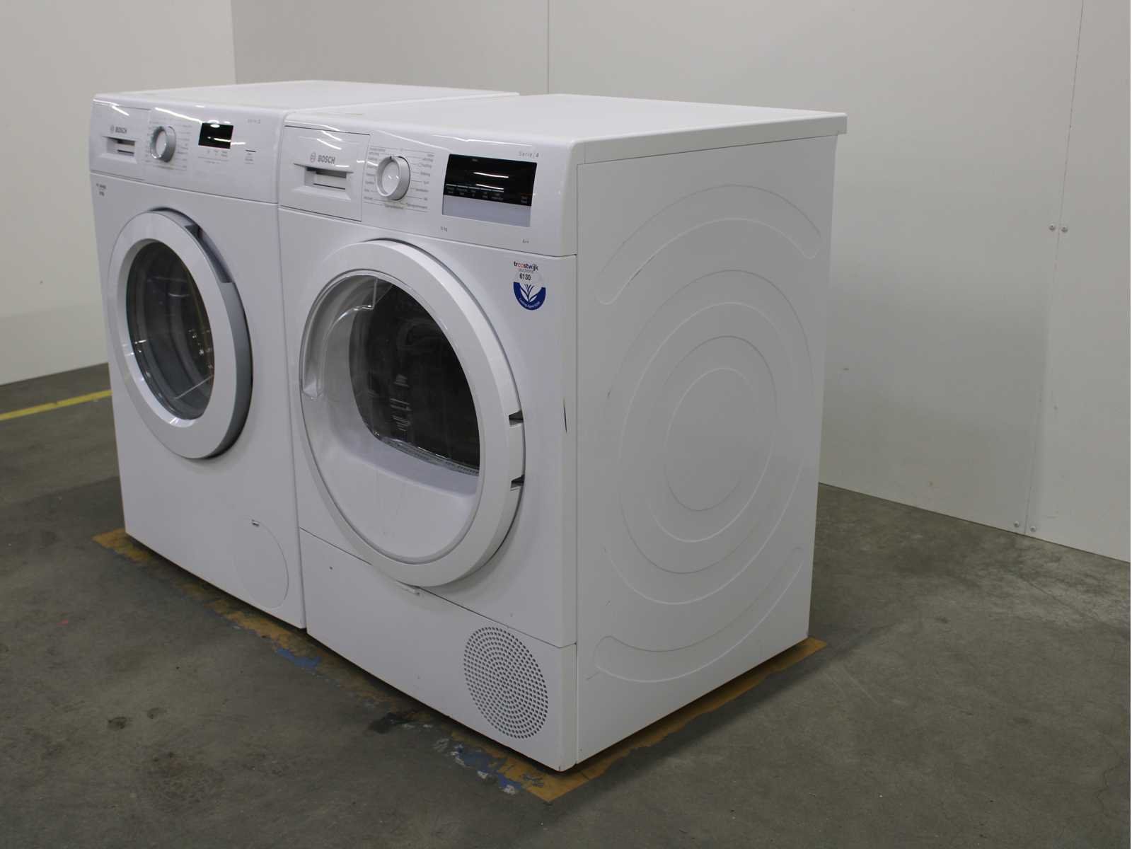 Deze wasmachine en wasdroger komen uit een partij jong gebruikt A-Merk witgoed. De machines zijn volledig getest, gereinigd en indien nodig gerepareerd. Houdt er rekening mee dat de machines lichte gebruikssporen kunnen hebben. Wasmachines en wasdrogers hebben vaak standaard afmetingen. Hoogte 85cm, Breedte 60cm en Diepte 60 tot 70cm, incl. uitstekende slangen e.d. aan de achterzijde. Als de machine vrij komt te staan is de afmeting minder relevant. Wil je de machine in een nis plaatsen of inbouwen? Controleer dan de exacte afmetingen op basis van het aangeboden merk en model/type. Within 7 days Merk: Bosch Serienummer: WAJ28010NL en WTR85V02NL