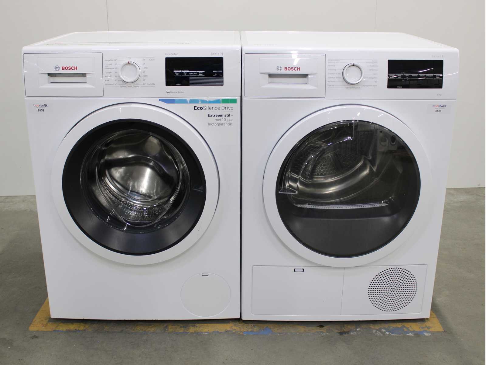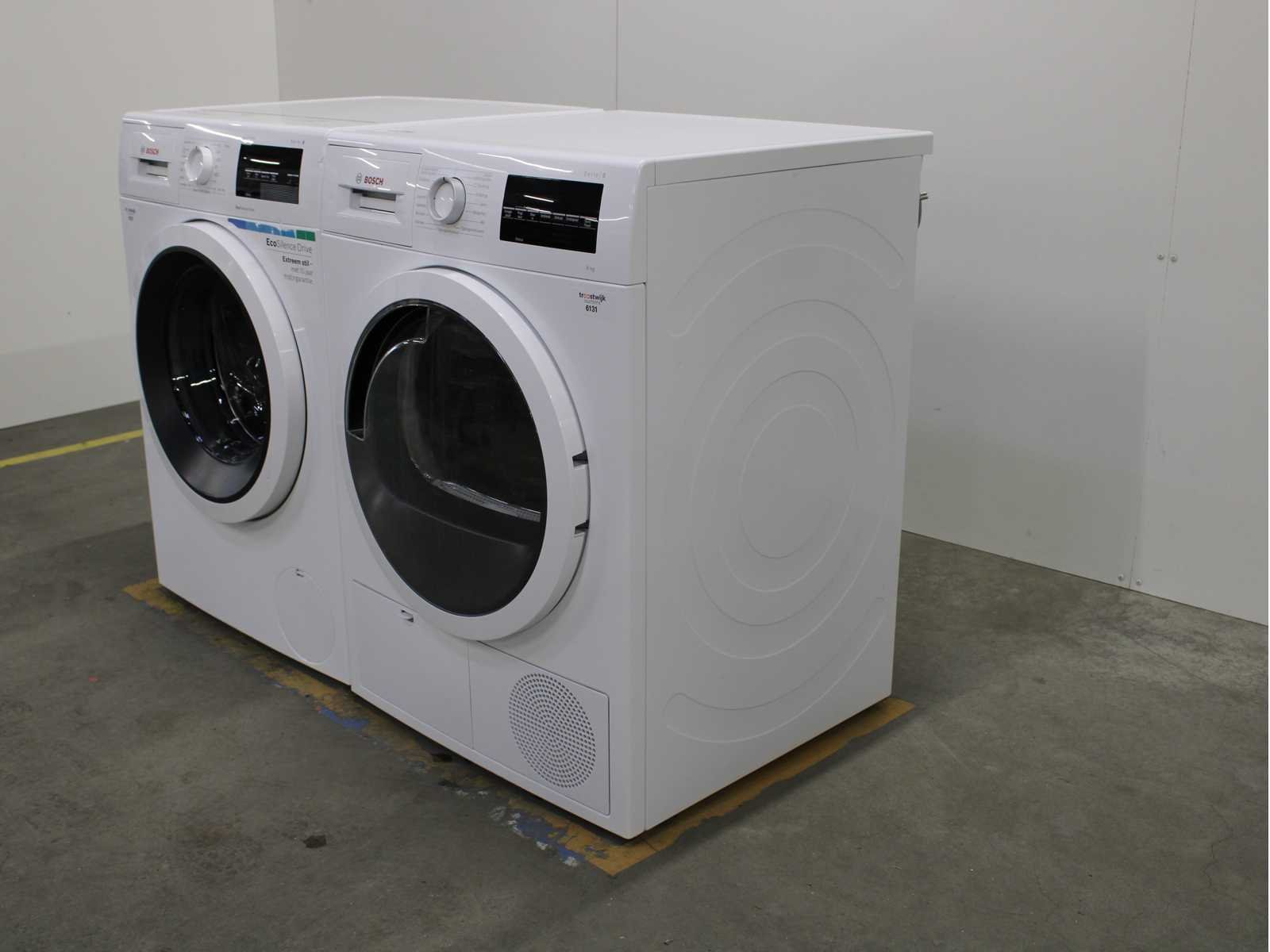 Deze wasmachine en wasdroger komen uit een partij jong gebruikt A-Merk witgoed. De machines zijn volledig getest, gereinigd en indien nodig gerepareerd. Houdt er rekening mee dat de machines lichte gebruikssporen kunnen hebben. Wasmachines en wasdrogers hebben vaak standaard afmetingen. Hoogte 85cm, Breedte 60cm en Diepte 60 tot 70cm, incl. uitstekende slangen e.d. aan de achterzijde. Als de machine vrij komt te staan is de afmeting minder relevant. Wil je de machine in een nis plaatsen of inbouwen? Controleer dan de exacte afmetingen op basis van het aangeboden merk en model/type. Within 7 days Merk: Bosch Serienummer: WAT28320NL en WTG846C0NL/12