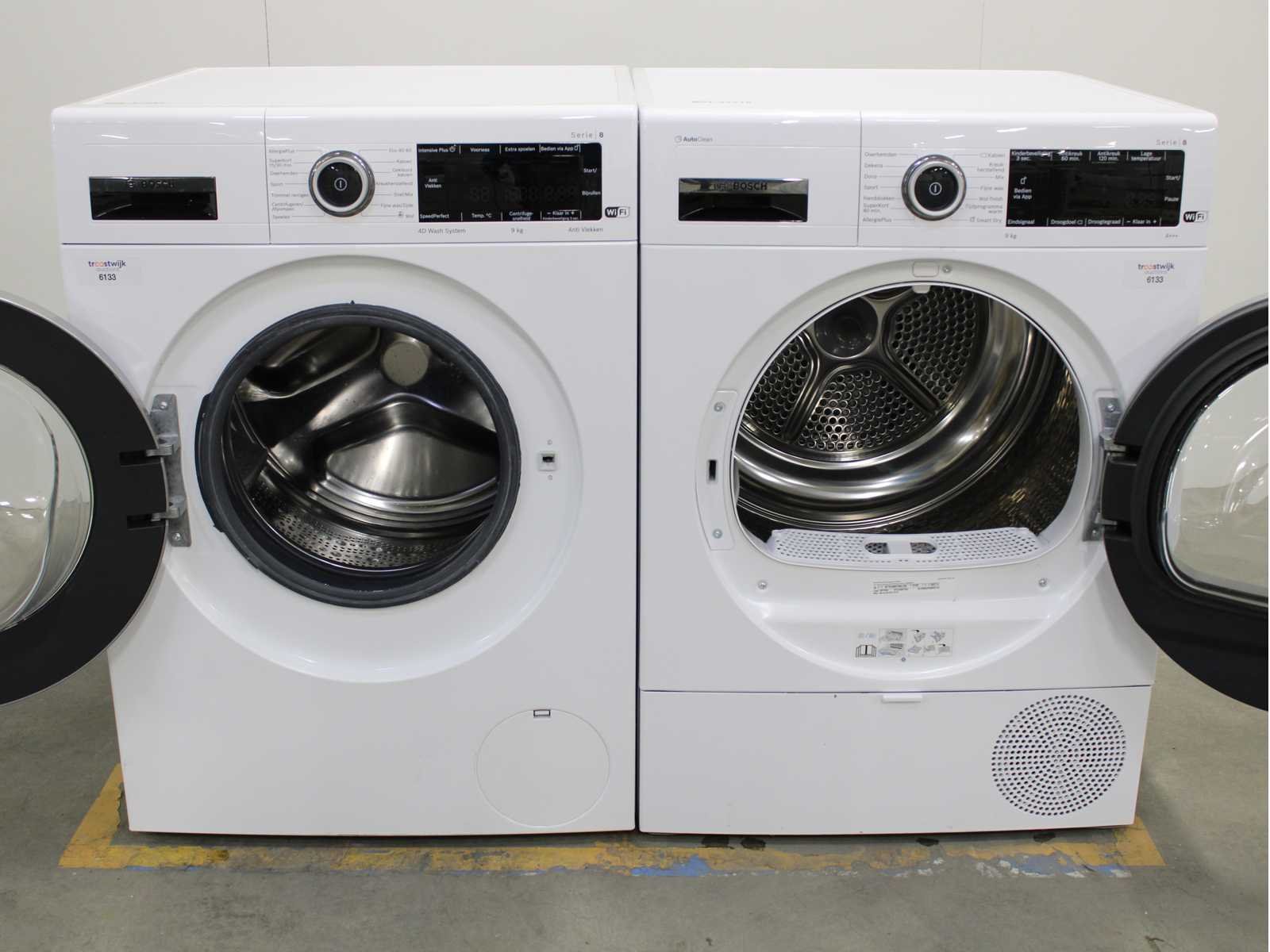 Deze wasmachine en wasdroger komen uit een partij jong gebruikt A-Merk witgoed. De machines zijn volledig getest, gereinigd en indien nodig gerepareerd. Houdt er rekening mee dat de machines lichte gebruikssporen kunnen hebben. Wasmachines en wasdrogers hebben vaak standaard afmetingen. Hoogte 85cm, Breedte 60cm en Diepte 60 tot 70cm, incl. uitstekende slangen e.d. aan de achterzijde. Als de machine vrij komt te staan is de afmeting minder relevant. Wil je de machine in een nis plaatsen of inbouwen? Controleer dan de exacte afmetingen op basis van het aangeboden merk en model/type. Within 7 days Merk: Bosch Serienummer: WAXH2M70NL/01 FD 0009 200230 en WTXH8M75NL/03