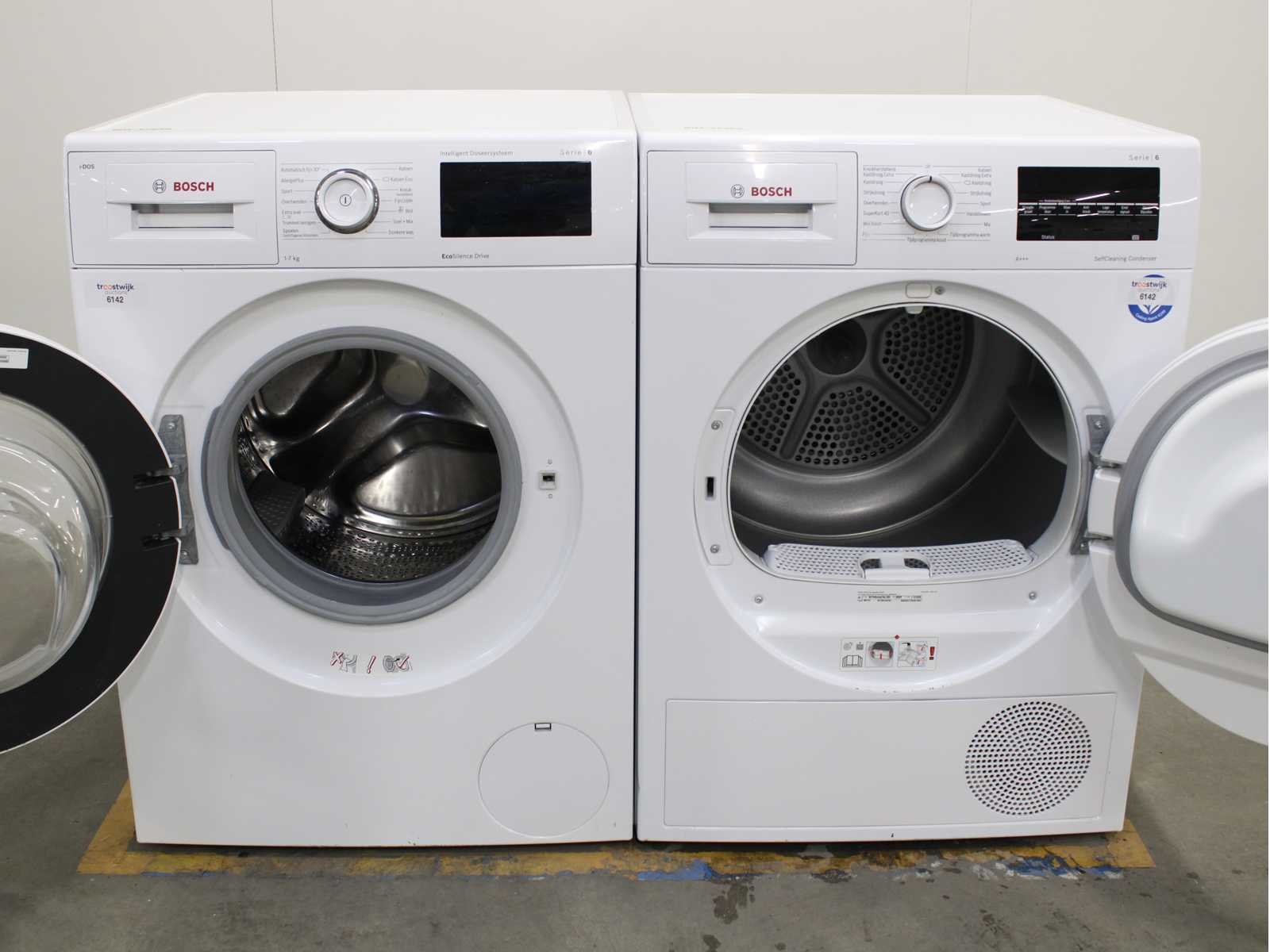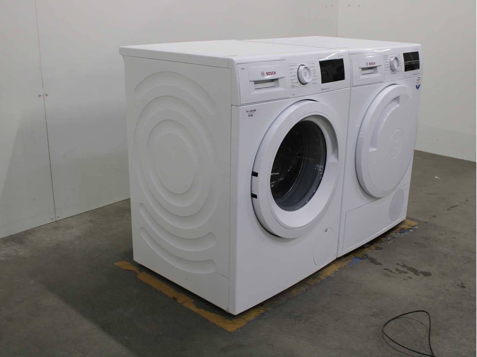 Deze wasmachine en wasdroger komen uit een partij jong gebruikt A-Merk witgoed. De machines zijn volledig getest, gereinigd en indien nodig gerepareerd. Houdt er rekening mee dat de machines lichte gebruikssporen kunnen hebben. Wasmachines en wasdrogers hebben vaak standaard afmetingen. Hoogte 85cm, Breedte 60cm en Diepte 60 tot 70cm, incl. uitstekende slangen e.d. aan de achterzijde. Als de machine vrij komt te staan is de afmeting minder relevant. Wil je de machine in een nis plaatsen of inbouwen? Controleer dan de exacte afmetingen op basis van het aangeboden merk en model/type. Within 7 days Merk: Bosch Serienummer: WAT28645NL en WTW8444ENL/09
