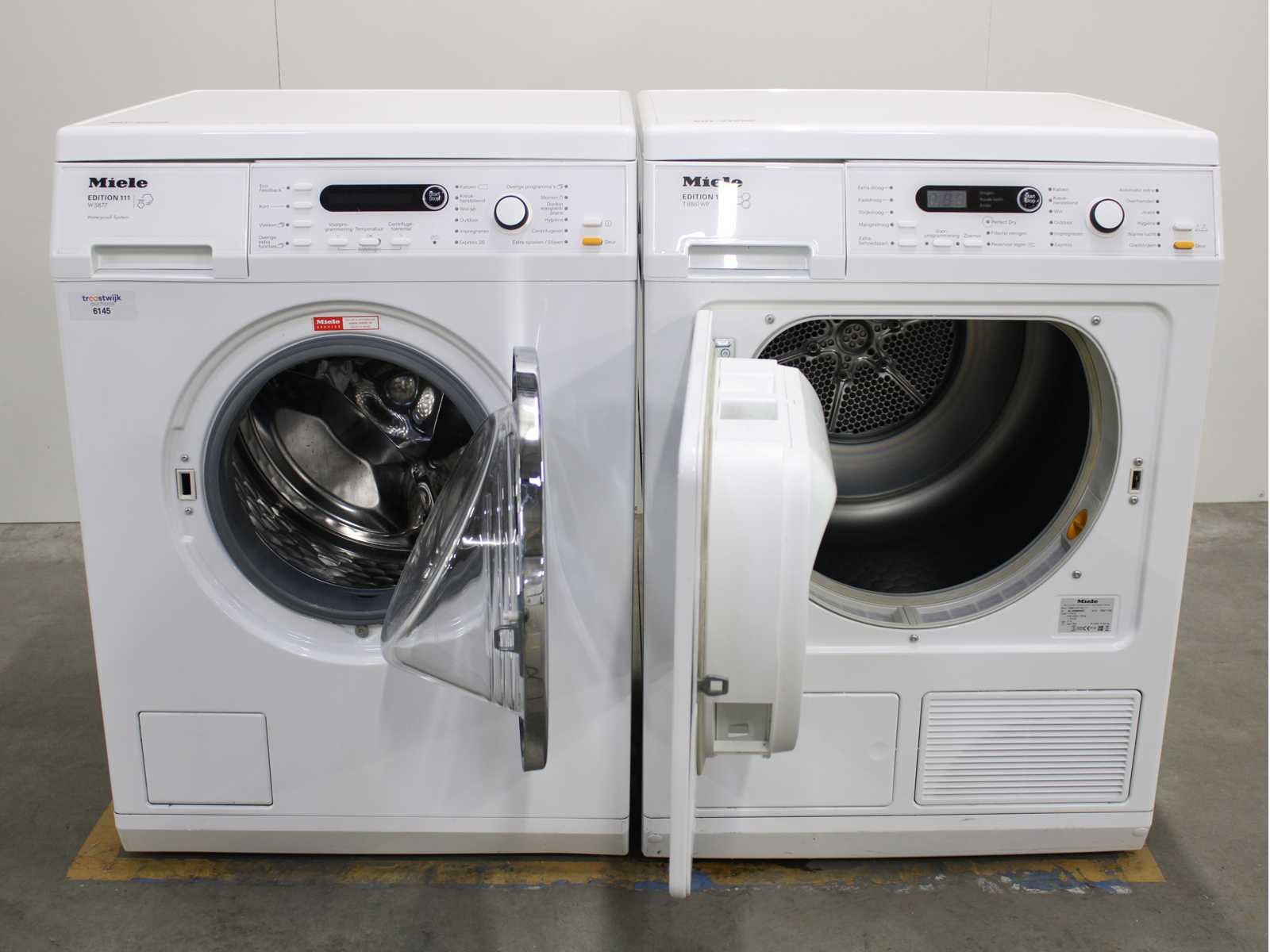 Deze wasmachine en wasdroger komen uit een partij jong gebruikt A-Merk witgoed. De machines zijn volledig getest, gereinigd en indien nodig gerepareerd. Houdt er rekening mee dat de machines lichte gebruikssporen kunnen hebben. Wasmachines en wasdrogers hebben vaak standaard afmetingen. Hoogte 85cm, Breedte 60cm en Diepte 60 tot 70cm, incl. uitstekende slangen e.d. aan de achterzijde. Als de machine vrij komt te staan is de afmeting minder relevant. Wil je de machine in een nis plaatsen of inbouwen? Controleer dan de exacte afmetingen op basis van het aangeboden merk en model/type. Within 7 days Merk: Miele Serienummer: W5877WPS en T8861WP Edi. 111