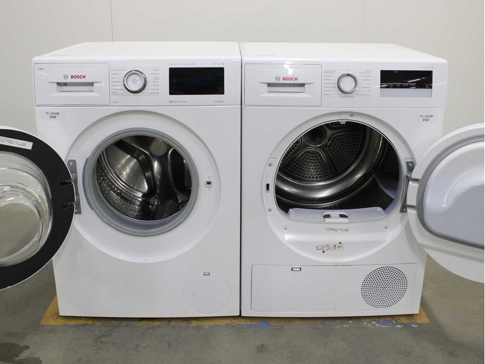 Deze wasmachine en wasdroger komen uit een partij jong gebruikt A-Merk witgoed. De machines zijn volledig getest, gereinigd en indien nodig gerepareerd. Houdt er rekening mee dat de machines lichte gebruikssporen kunnen hebben. Wasmachines en wasdrogers hebben vaak standaard afmetingen. Hoogte 85cm, Breedte 60cm en Diepte 60 tot 70cm, incl. uitstekende slangen e.d. aan de achterzijde. Als de machine vrij komt te staan is de afmeting minder relevant. Wil je de machine in een nis plaatsen of inbouwen? Controleer dan de exacte afmetingen op basis van het aangeboden merk en model/type. Within 7 days Merk: Bosch Serienummer: WAT28655NL en WTN83272NL/11
