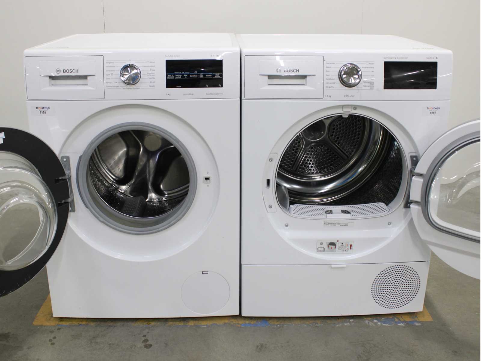 Deze wasmachine en wasdroger komen uit een partij jong gebruikt A-Merk witgoed. De machines zijn volledig getest, gereinigd en indien nodig gerepareerd. Houdt er rekening mee dat de machines lichte gebruikssporen kunnen hebben. Wasmachines en wasdrogers hebben vaak standaard afmetingen. Hoogte 85cm, Breedte 60cm en Diepte 60 tot 70cm, incl. uitstekende slangen e.d. aan de achterzijde. Als de machine vrij komt te staan is de afmeting minder relevant. Wil je de machine in een nis plaatsen of inbouwen? Controleer dan de exacte afmetingen op basis van het aangeboden merk en model/type. Within 7 days Merk: Bosch Serienummer: WAT28493NL/56 en WTU87691NL/03