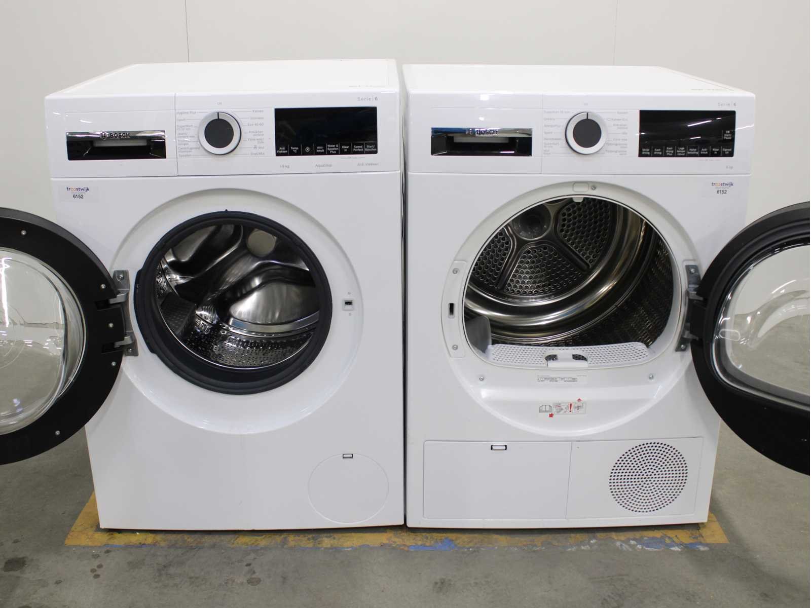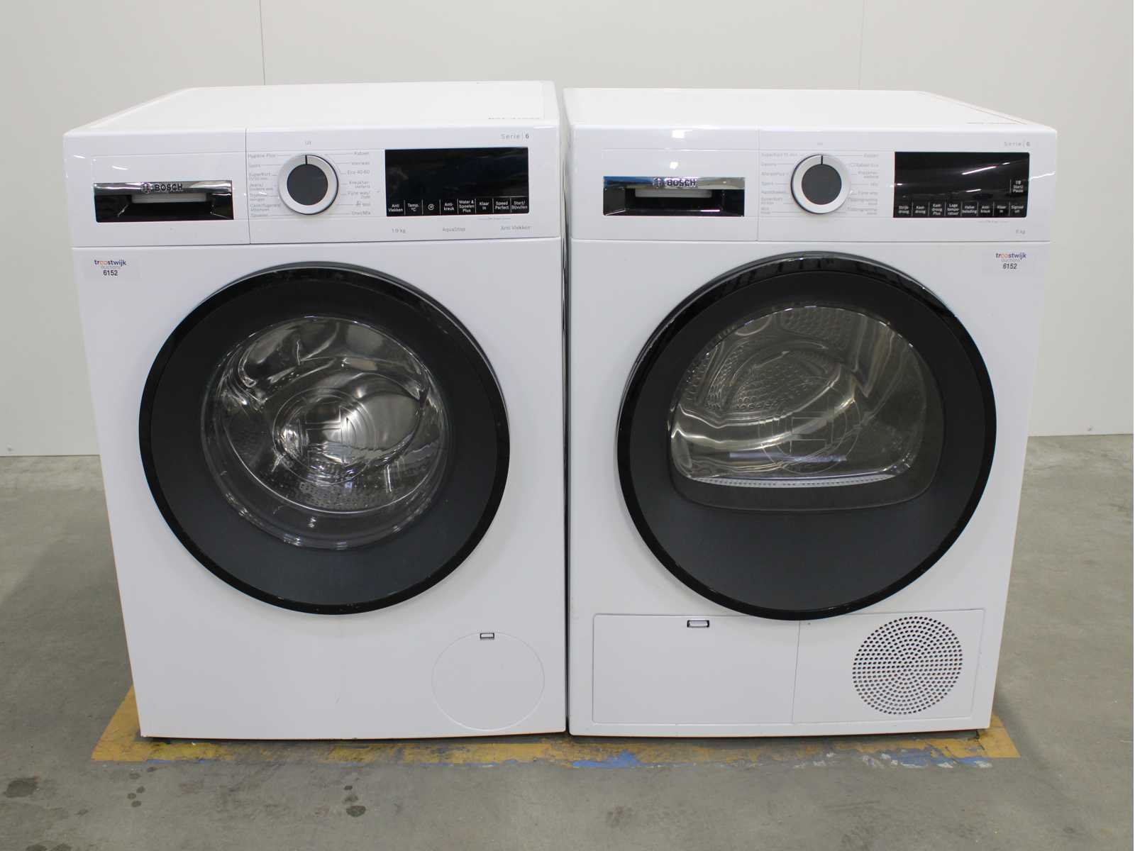 Deze wasmachine en wasdroger komen uit een partij jong gebruikt A-Merk witgoed. De machines zijn volledig getest, gereinigd en indien nodig gerepareerd. Houdt er rekening mee dat de machines lichte gebruikssporen kunnen hebben. Wasmachines en wasdrogers hebben vaak standaard afmetingen. Hoogte 85cm, Breedte 60cm en Diepte 60 tot 70cm, incl. uitstekende slangen e.d. aan de achterzijde. Als de machine vrij komt te staan is de afmeting minder relevant. Wil je de machine in een nis plaatsen of inbouwen? Controleer dan de exacte afmetingen op basis van het aangeboden merk en model/type. Within 7 days Merk: Bosch Serienummer: WGG14408NL en WPG23150NL