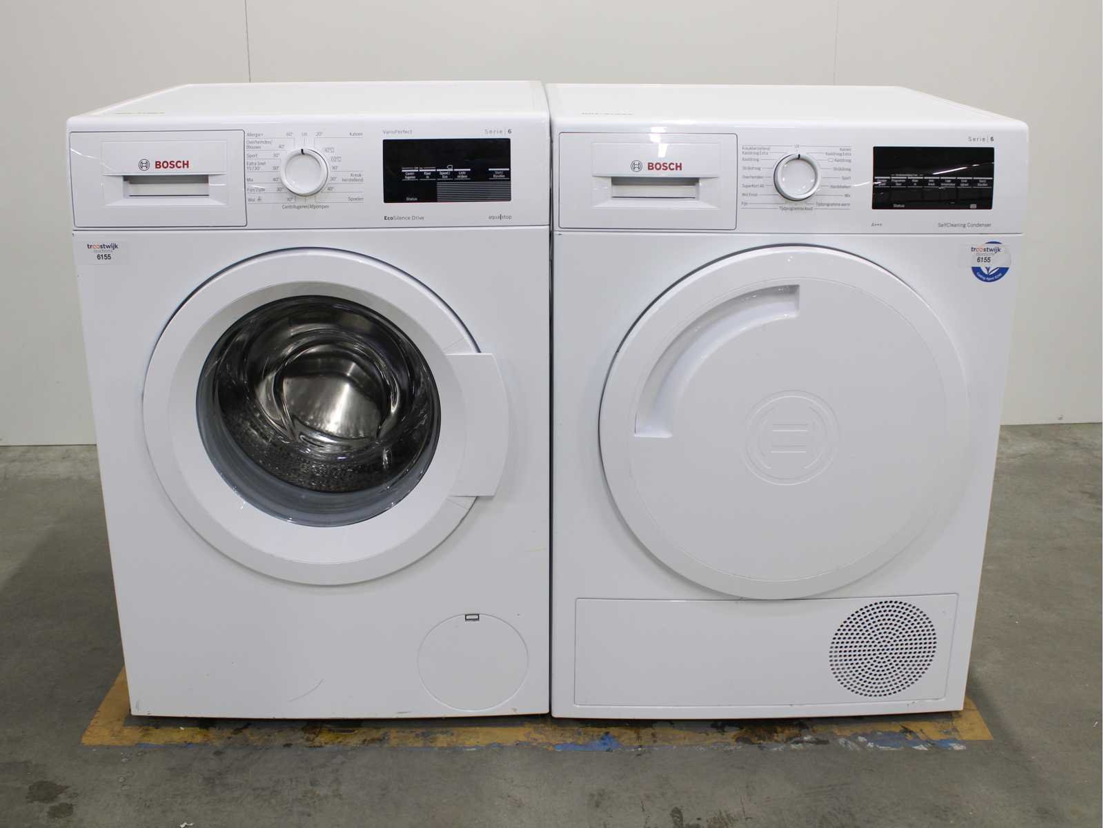 Deze wasmachine en wasdroger komen uit een partij jong gebruikt A-Merk witgoed. De machines zijn volledig getest, gereinigd en indien nodig gerepareerd. Houdt er rekening mee dat de machines lichte gebruikssporen kunnen hebben. Wasmachines en wasdrogers hebben vaak standaard afmetingen. Hoogte 85cm, Breedte 60cm en Diepte 60 tot 70cm, incl. uitstekende slangen e.d. aan de achterzijde. Als de machine vrij komt te staan is de afmeting minder relevant. Wil je de machine in een nis plaatsen of inbouwen? Controleer dan de exacte afmetingen op basis van het aangeboden merk en model/type. Within 7 days Merk: Bosch Serienummer: WNAT323471 en WTW8444ENL/08