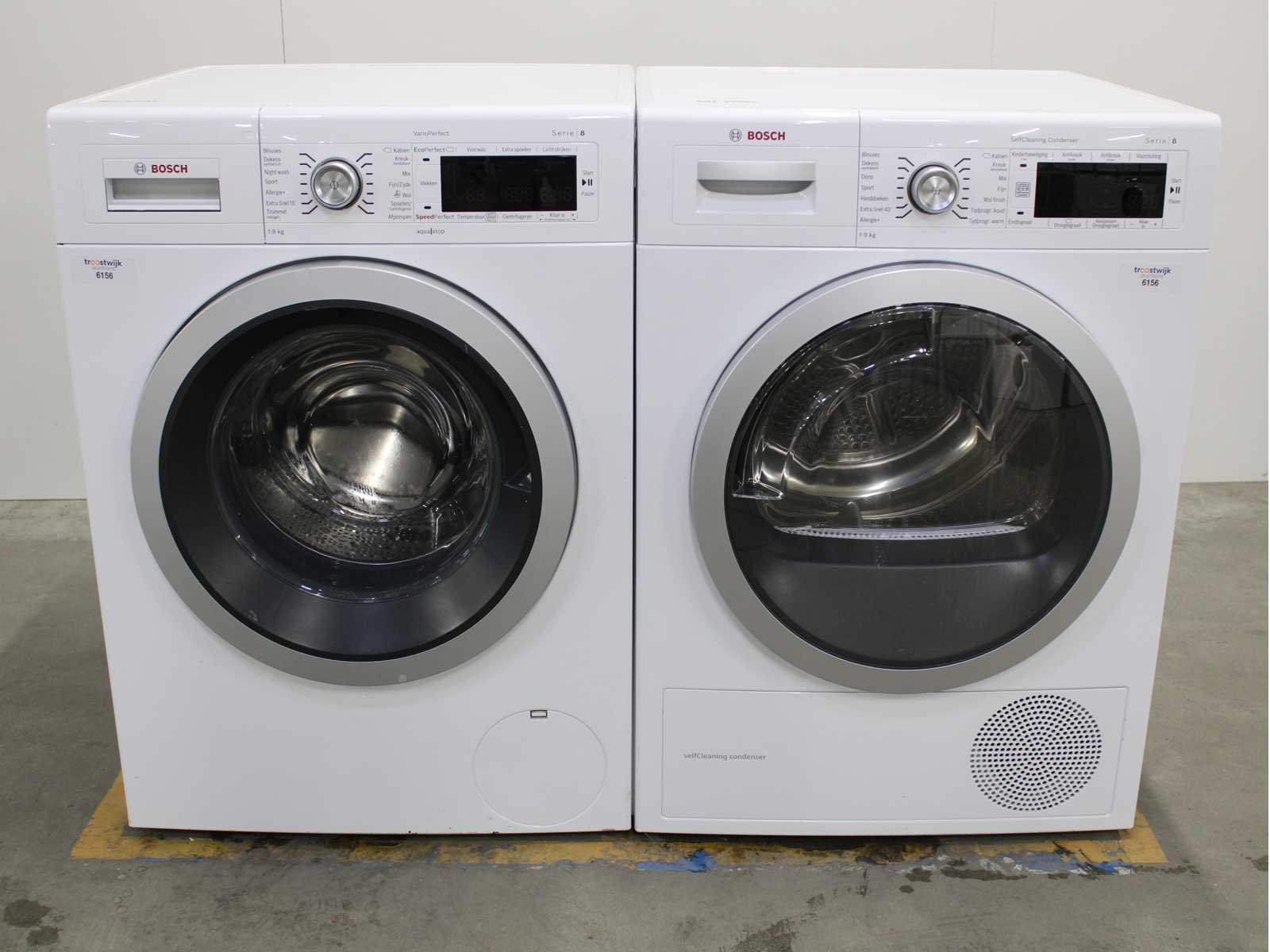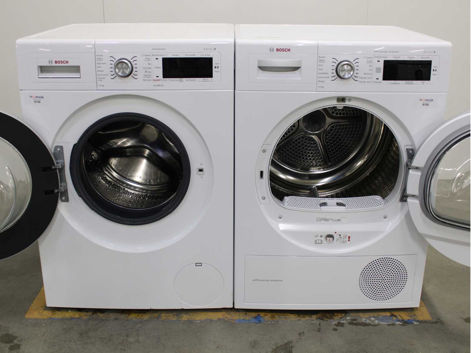 Deze wasmachine en wasdroger komen uit een partij jong gebruikt A-Merk witgoed. De machines zijn volledig getest, gereinigd en indien nodig gerepareerd. Houdt er rekening mee dat de machines lichte gebruikssporen kunnen hebben. Wasmachines en wasdrogers hebben vaak standaard afmetingen. Hoogte 85cm, Breedte 60cm en Diepte 60 tot 70cm, incl. uitstekende slangen e.d. aan de achterzijde. Als de machine vrij komt te staan is de afmeting minder relevant. Wil je de machine in een nis plaatsen of inbouwen? Controleer dan de exacte afmetingen op basis van het aangeboden merk en model/type. Within 7 days Merk: Bosch Serienummer: WAW32542NL/21 en WTW87562NL/02