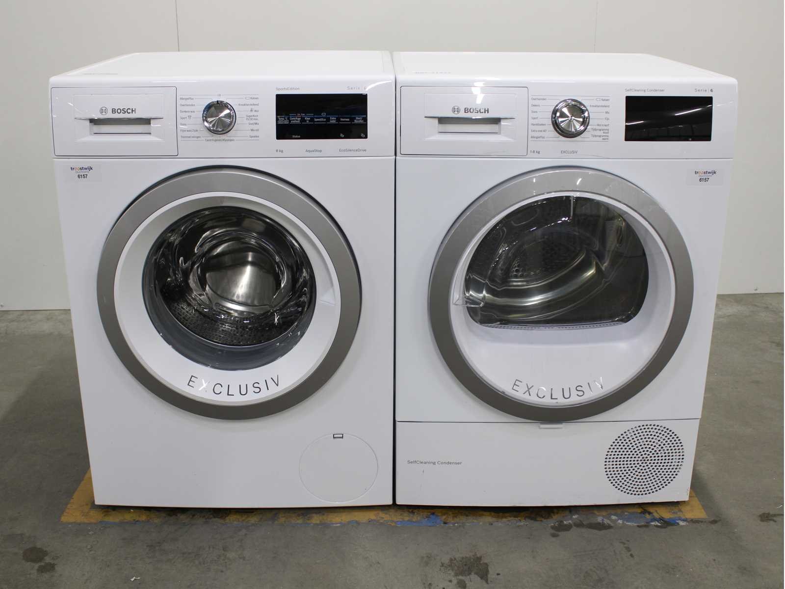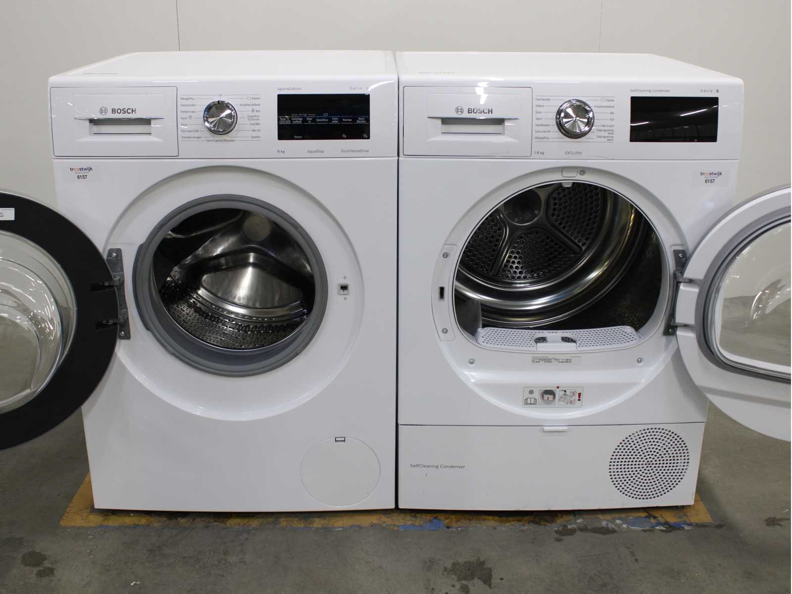 Deze wasmachine en wasdroger komen uit een partij jong gebruikt A-Merk witgoed. De machines zijn volledig getest, gereinigd en indien nodig gerepareerd. Houdt er rekening mee dat de machines lichte gebruikssporen kunnen hebben. Wasmachines en wasdrogers hebben vaak standaard afmetingen. Hoogte 85cm, Breedte 60cm en Diepte 60 tot 70cm, incl. uitstekende slangen e.d. aan de achterzijde. Als de machine vrij komt te staan is de afmeting minder relevant. Wil je de machine in een nis plaatsen of inbouwen? Controleer dan de exacte afmetingen op basis van het aangeboden merk en model/type. Within 7 days Merk: Bosch Serienummer: WAT28493NL en WTU87691NL/03