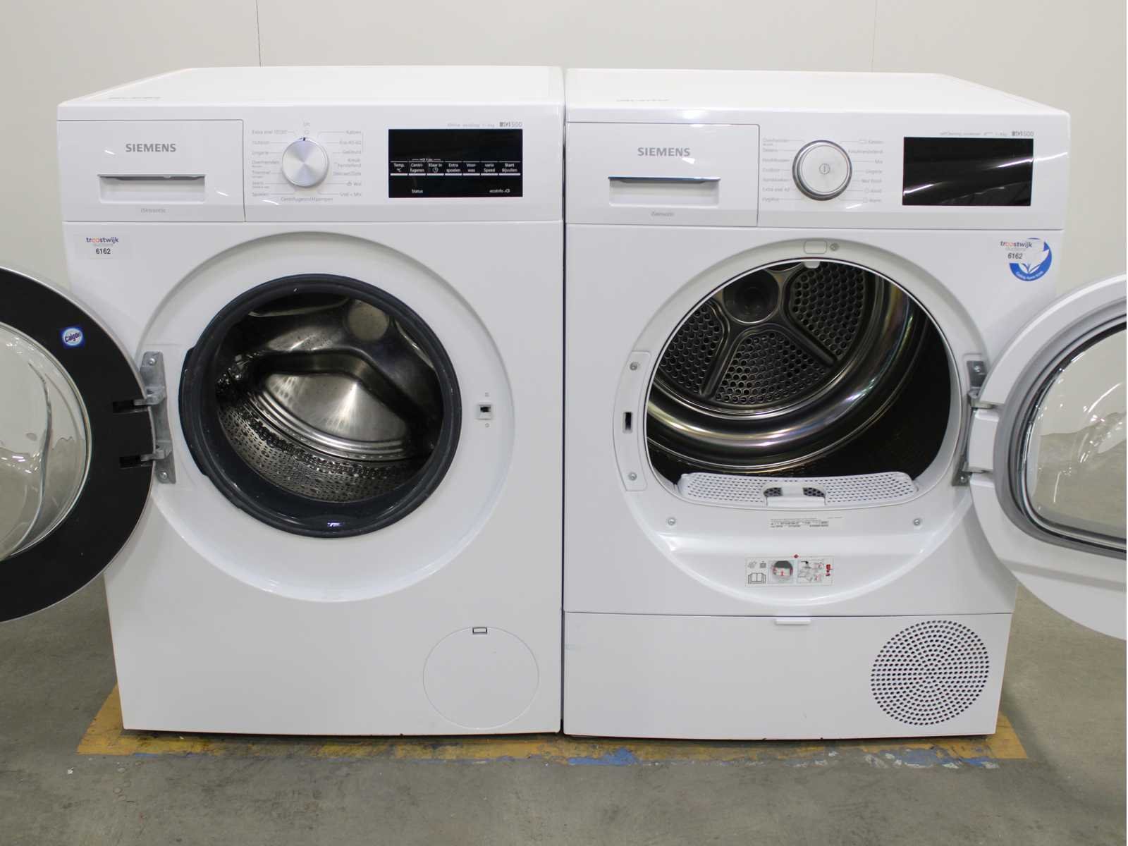 Deze wasmachine en wasdroger komen uit een partij jong gebruikt A-Merk witgoed. De machines zijn volledig getest, gereinigd en indien nodig gerepareerd. Houdt er rekening mee dat de machines lichte gebruikssporen kunnen hebben. Wasmachines en wasdrogers hebben vaak standaard afmetingen. Hoogte 85cm, Breedte 60cm en Diepte 60 tot 70cm, incl. uitstekende slangen e.d. aan de achterzijde. Als de machine vrij komt te staan is de afmeting minder relevant. Wil je de machine in een nis plaatsen of inbouwen? Controleer dan de exacte afmetingen op basis van het aangeboden merk en model/type. Within 7 days Merk: Siemens Serienummer: WM14UT75NL en WT7U4675NL/07