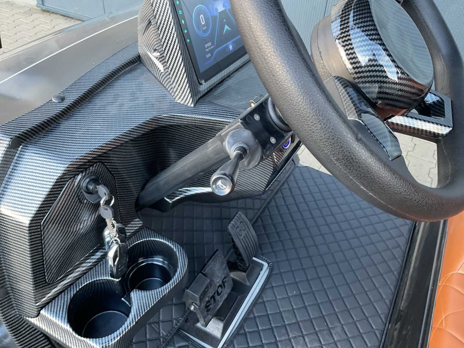 Voorzien van: 220 volt oplaad kabel. DX2440-SDK8.08-V1.5-2 Elektrische sleutel Multimedia systeem 10.1 inch touchscreen Achteruitrijcamera Radio Speakers Bekerhouders Knipperlicht Usb aansluiting Draadloze telefoonlader 230 V laadkabel Riemen Toeter Spiegels Opbergruimte Carbon look Leather look Disc Brakes Aluminium velg Led koplampen Beschrijving machine: Nieuwe, ongebruikte machine. Merk: RTE Type: K2+2 Bouwjaar: 2025 Spanning: 60V Aantal personen: 4 Elektrisch: true Kleur: Zwart Gewicht: 550kg Lengte: 285cm Breedte: 125cm Hoogte: 200cm