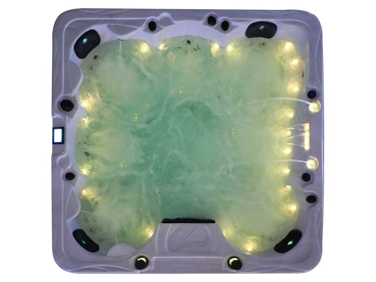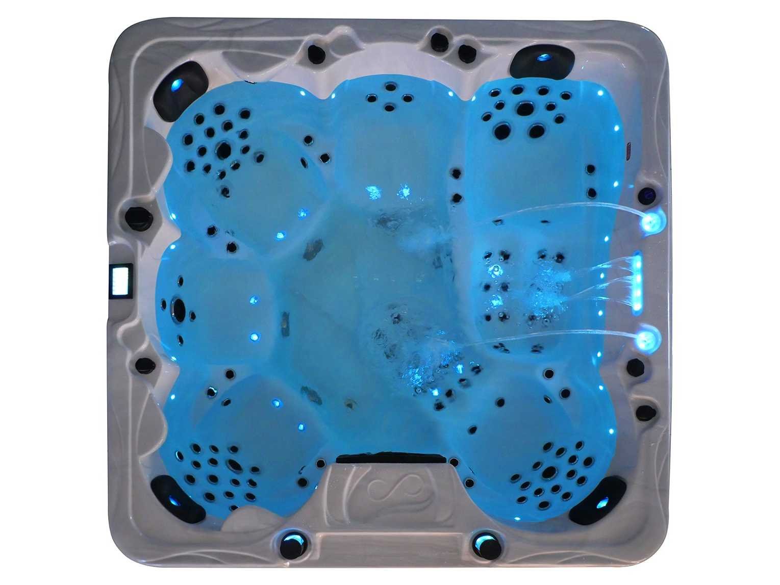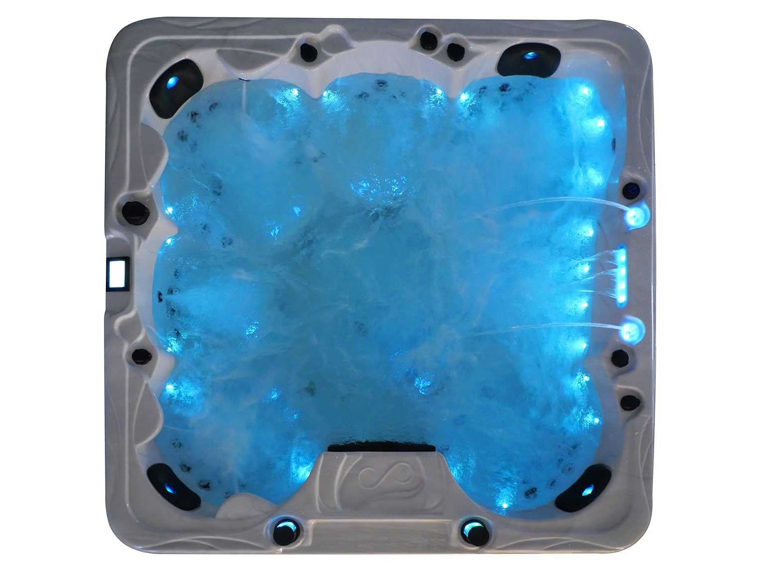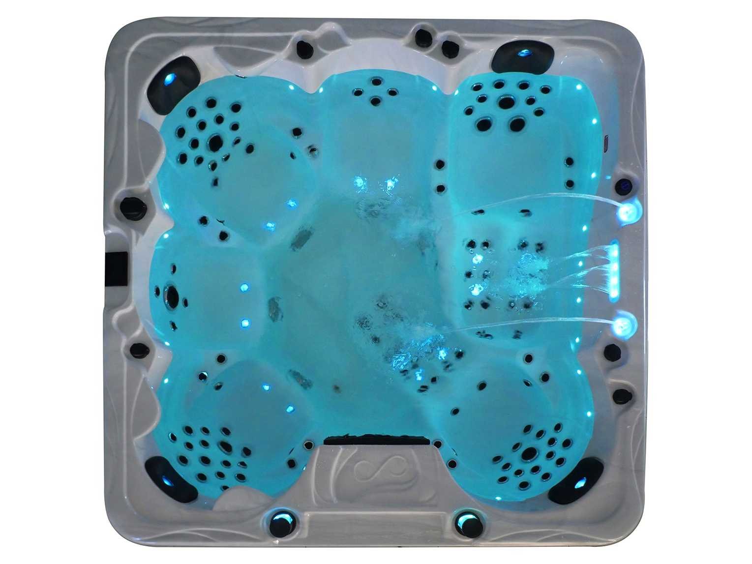 Besturing balboa (Balboa BP21 computer + nieuwste Spa touch 3 display), Balboa heater (3000 watt), Balboa wifi (voor besturing op afstand met de telefoon/tablet), Balboa bluetooth audio, 2 popup speakers met ledverlichting, Subwoofer, kunststof onderhoudsvrije ombouw met ledverlichting rondom in de zijpanelen, 4 massage pompen (3* 3pk, en 1* 400 watt luchtpomp ), 24h circulatiepomp (0,5pk), 4 zitplaatsen en 2 ligplaatsen (4 plaatsen voorzien van hoofdkussen), dikke (zwarte) afdek cover inclusief, totaal 150 rvs stainless steel RVS jets waarvan 16 luchtjets met ledverlichting (diverse maten en verschillende hydro stralen), extra nek en voet massage jets, vorst beveiliging, ozone desinfectie systeem 50mg/h, diverse leds (40 stuks) verlichting langs de waterrand, aroma feeder, 2x pop-up water fontein met ledverlichting, 1x grote waterval met ledverlichting, diverse regelknoppen om de de kracht en de verdeling naar de jets te regelen, 2x oppervlakte en reinigingsfilter, kuip extra dikke foam isolatie (minimaal 45mm) + extra isolatie aan de buitenwanden met folie + 5mm dikke isolatie op de PVC gesloten bdem, waterafvoer, inclusief trapje, Aluminium frame (zeer sterk en roest bestendig) deze spa zit vol met alle mogelijk bestelbare opties, dit betreft een nieuw product in verpakking. De spa kan zowel op 220volt als 380volt worden aangesloten (35a of 49a). Merk: Mawialux Model: ISABELLA Vermogen: 10500W Spanning: 220-380V Filters: 2 Verlichting: diverse leds met kleurentherapie (7 kleuren) op waterniveau Inhoud: 1470l Pompen: 5 Jets: 150 Aantal personen: 6 Kleur: Binnenkuip keuze uit 3 kleuren (H03 wit, of H06 zwart of H12 grijs) met donker zwarte ombouw (kleurkeuze graag doorgeven per email op info@mawialux.nl) Gewicht: 480kg Lengte: 230cm Breedte: 230cm Hoogte: 96cm Materiaal: USA Aristech acryl + Aluminium frame + kunststof ombouw + PVC gesloten bodem