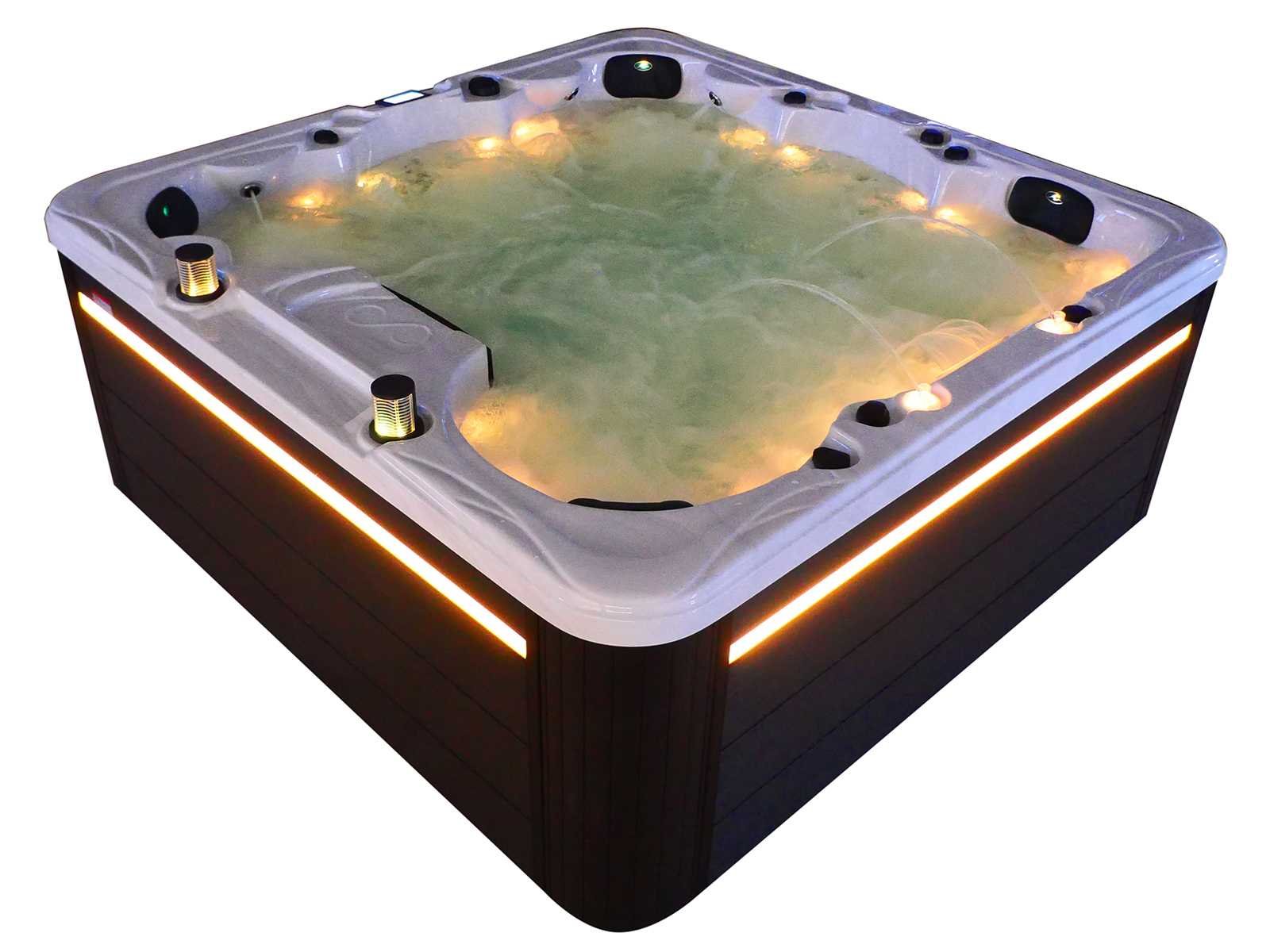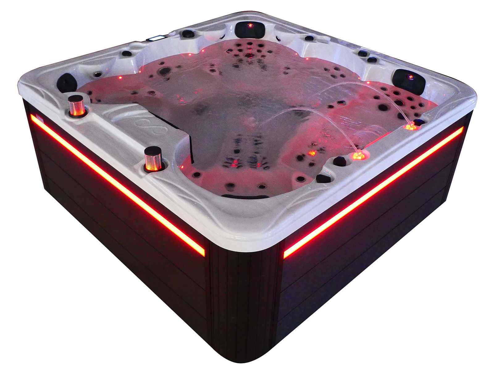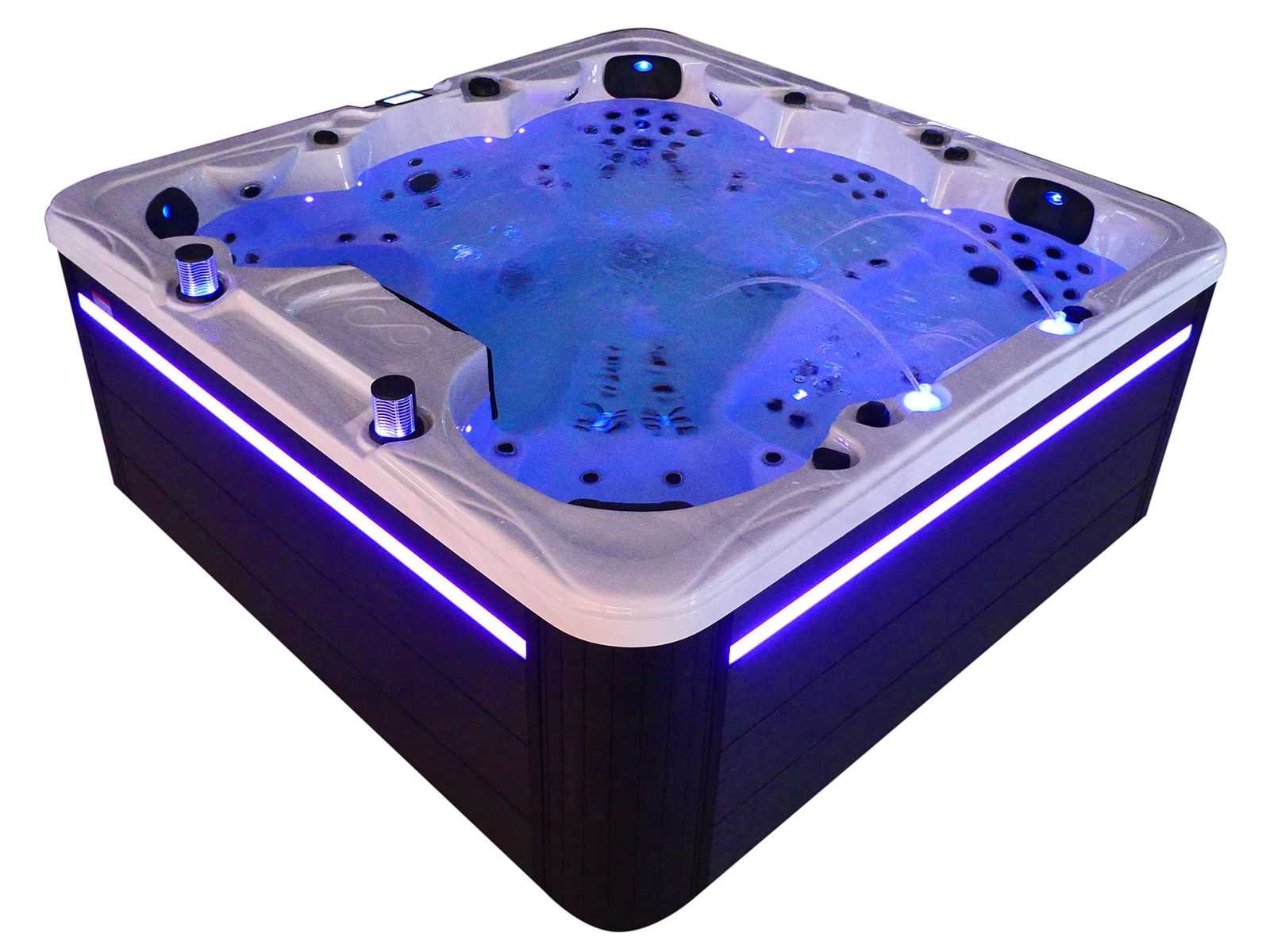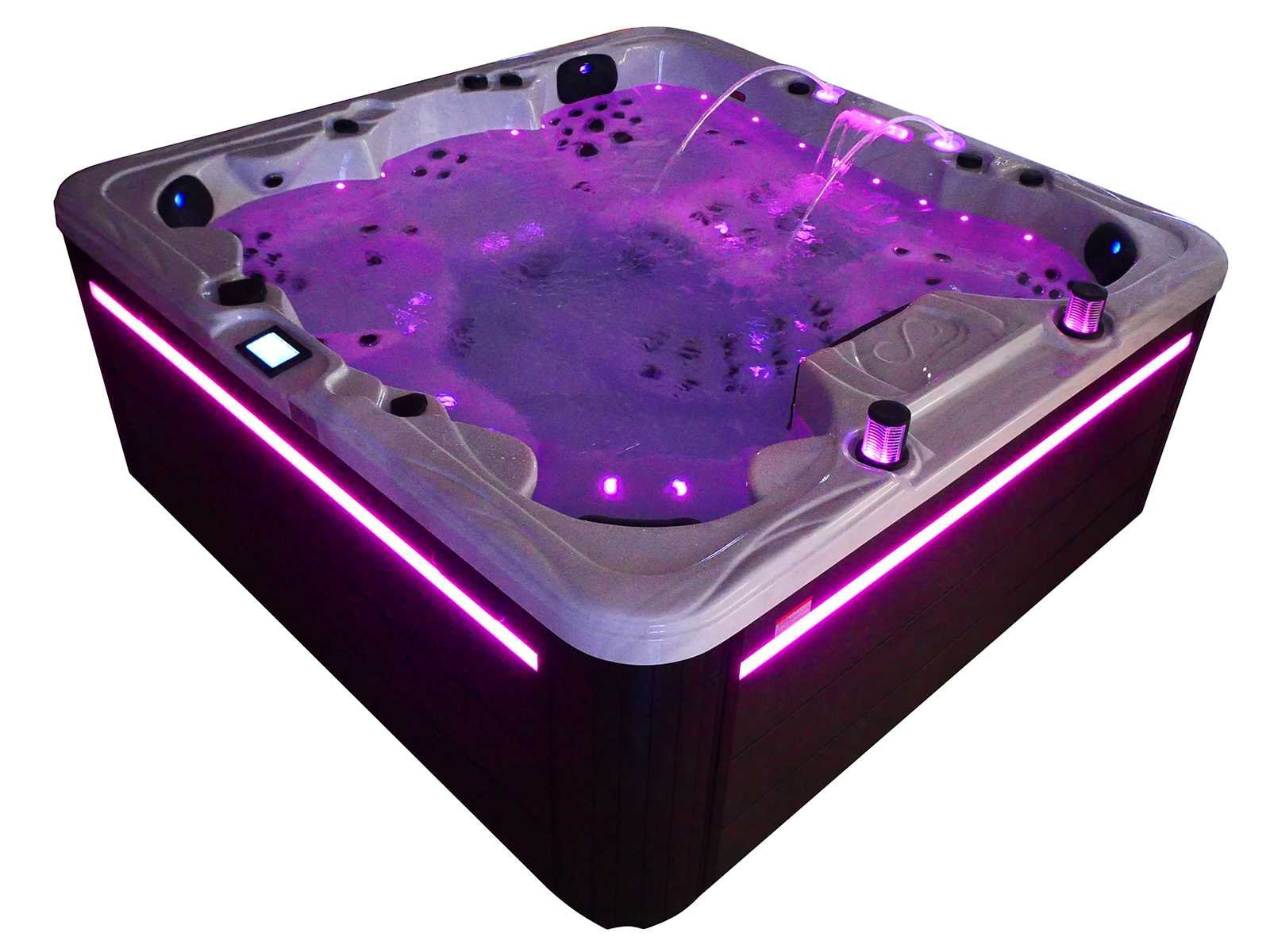Besturing balboa (Balboa BP21 computer + nieuwste Spa touch 3 display), Balboa heater (3000 watt), Balboa wifi (voor besturing op afstand met de telefoon/tablet), Balboa bluetooth audio, 2 popup speakers met ledverlichting, Subwoofer, kunststof onderhoudsvrije ombouw met ledverlichting rondom in de zijpanelen, 4 massage pompen (3* 3pk, en 1* 400 watt luchtpomp ), 24h circulatiepomp (0,5pk), 4 zitplaatsen en 2 ligplaatsen (4 plaatsen voorzien van hoofdkussen), dikke (zwarte) afdek cover inclusief, totaal 150 rvs stainless steel RVS jets waarvan 16 luchtjets met ledverlichting (diverse maten en verschillende hydro stralen), extra nek en voet massage jets, vorst beveiliging, ozone desinfectie systeem 50mg/h, diverse leds (40 stuks) verlichting langs de waterrand, aroma feeder, 2x pop-up water fontein met ledverlichting, 1x grote waterval met ledverlichting, diverse regelknoppen om de de kracht en de verdeling naar de jets te regelen, 2x oppervlakte en reinigingsfilter, kuip extra dikke foam isolatie (minimaal 45mm) + extra isolatie aan de buitenwanden met folie + 5mm dikke isolatie op de PVC gesloten bdem, waterafvoer, inclusief trapje, Aluminium frame (zeer sterk en roest bestendig) deze spa zit vol met alle mogelijk bestelbare opties, dit betreft een nieuw product in verpakking. De spa kan zowel op 220volt als 380volt worden aangesloten (35a of 49a). Merk: Mawialux Model: ISABELLA Vermogen: 10500W Spanning: 220-380V Filters: 2 Verlichting: diverse leds met kleurentherapie (7 kleuren) op waterniveau Inhoud: 1470l Pompen: 5 Jets: 150 Aantal personen: 6 Kleur: Binnenkuip keuze uit 3 kleuren (H03 wit, of H06 zwart of H12 grijs) met donker zwarte ombouw (kleurkeuze graag doorgeven per email op info@mawialux.nl) Gewicht: 480kg Lengte: 230cm Breedte: 230cm Hoogte: 96cm Materiaal: USA Aristech acryl + Aluminium frame + kunststof ombouw + PVC gesloten bodem