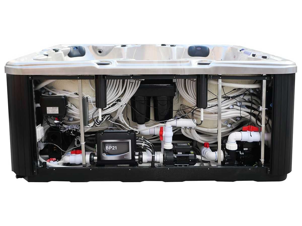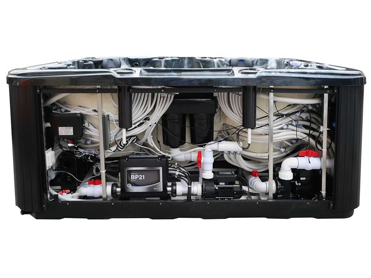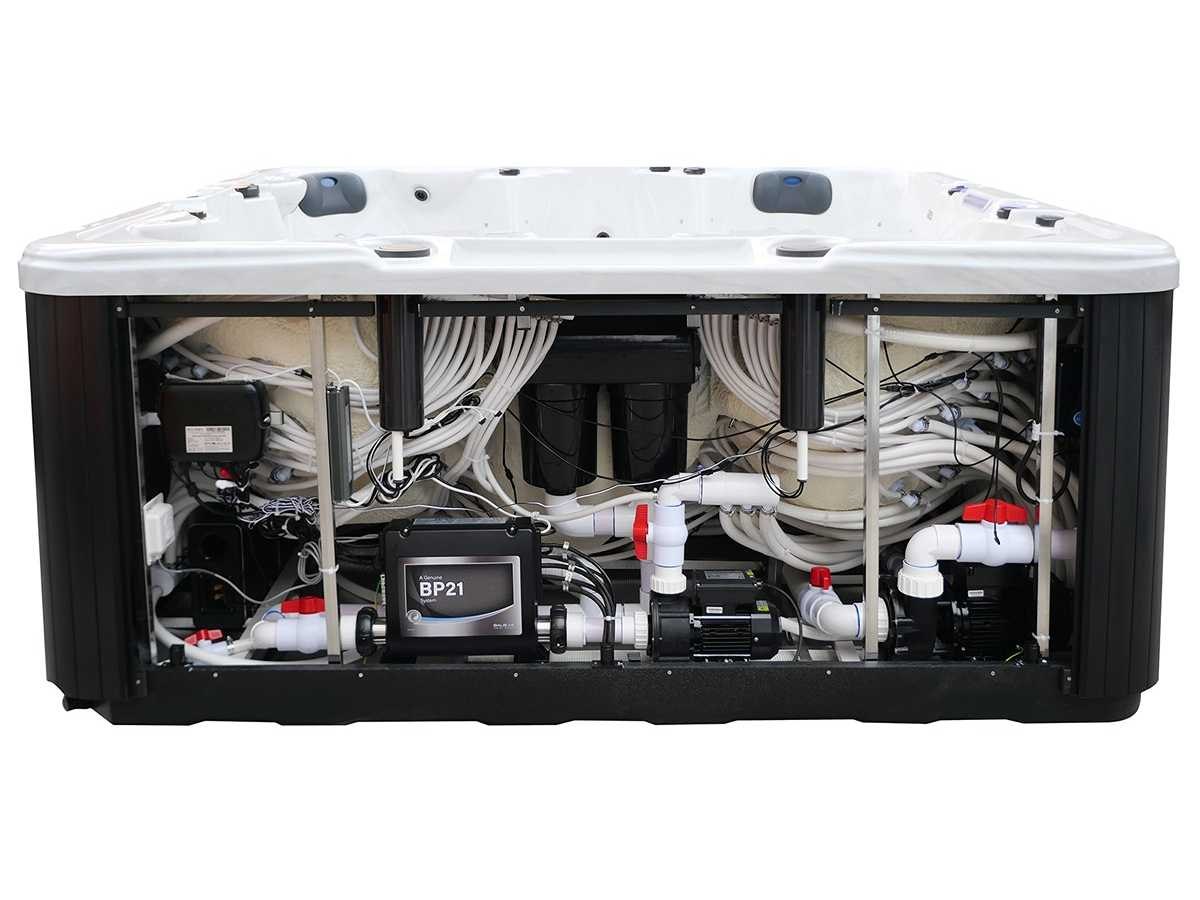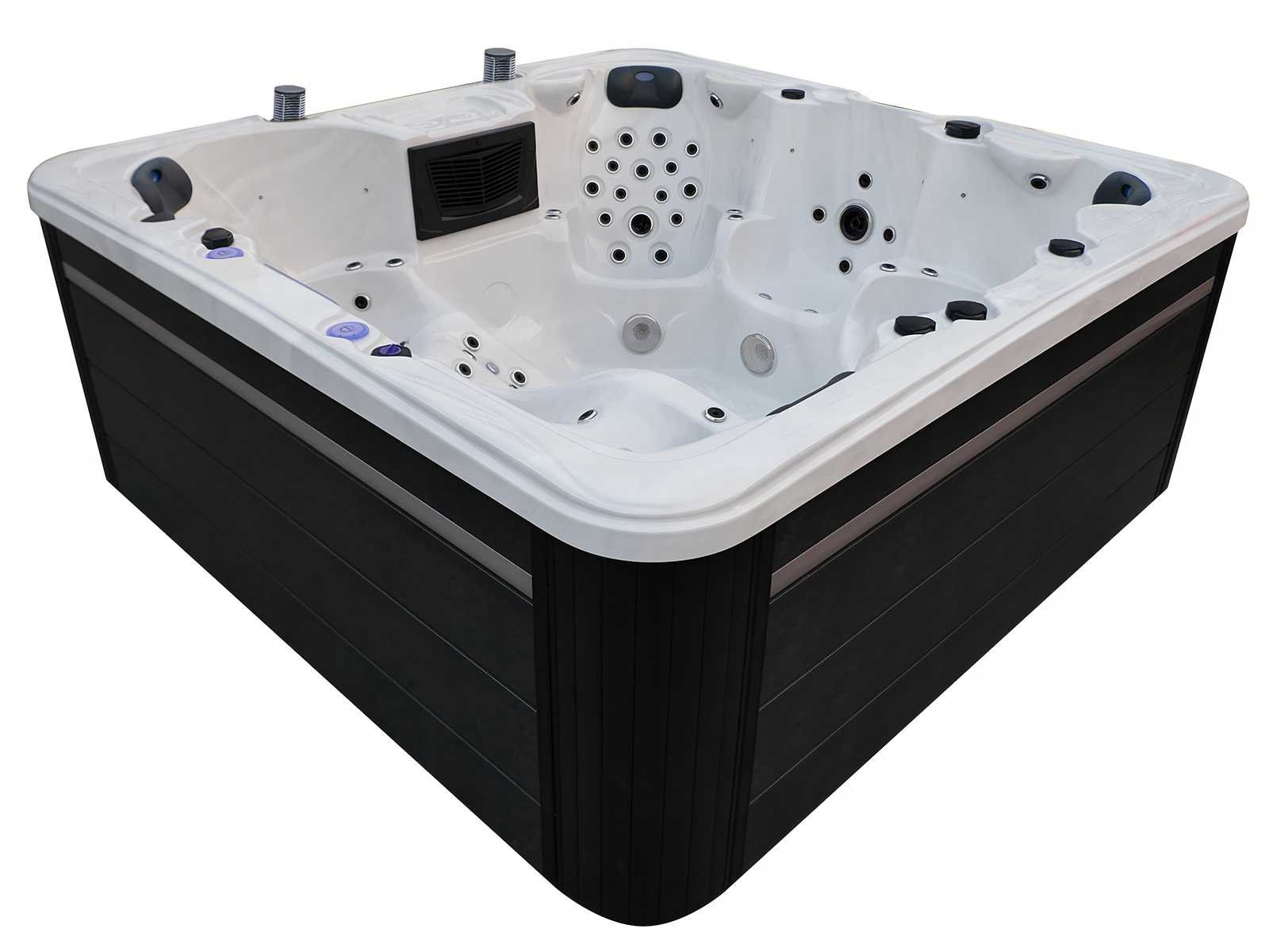 Besturing balboa (Balboa BP21 computer + nieuwste Spa touch 3 display), Balboa heater (3000 watt), Balboa wifi (voor besturing op afstand met de telefoon/tablet), Balboa bluetooth audio, 2 popup speakers met ledverlichting, Subwoofer, kunststof onderhoudsvrije ombouw met ledverlichting rondom in de zijpanelen, 4 massage pompen (3* 3pk, en 1* 400 watt luchtpomp ), 24h circulatiepomp (0,5pk), 4 zitplaatsen en 2 ligplaatsen (4 plaatsen voorzien van hoofdkussen), dikke (zwarte) afdek cover inclusief, totaal 150 rvs stainless steel RVS jets waarvan 16 luchtjets met ledverlichting (diverse maten en verschillende hydro stralen), extra nek en voet massage jets, vorst beveiliging, ozone desinfectie systeem 50mg/h, diverse leds (40 stuks) verlichting langs de waterrand, aroma feeder, 2x pop-up water fontein met ledverlichting, 1x grote waterval met ledverlichting, diverse regelknoppen om de de kracht en de verdeling naar de jets te regelen, 2x oppervlakte en reinigingsfilter, kuip extra dikke foam isolatie (minimaal 45mm) + extra isolatie aan de buitenwanden met folie + 5mm dikke isolatie op de PVC gesloten bdem, waterafvoer, inclusief trapje, Aluminium frame (zeer sterk en roest bestendig) deze spa zit vol met alle mogelijk bestelbare opties, dit betreft een nieuw product in verpakking. De spa kan zowel op 220volt als 380volt worden aangesloten (35a of 49a). Merk: Mawialux Model: ISABELLA Vermogen: 10500W Spanning: 220-380V Filters: 2 Verlichting: diverse leds met kleurentherapie (7 kleuren) op waterniveau Inhoud: 1470l Pompen: 5 Jets: 150 Aantal personen: 6 Kleur: Binnenkuip keuze uit 3 kleuren (H03 wit, of H06 zwart of H12 grijs) met donker zwarte ombouw (kleurkeuze graag doorgeven per email op info@mawialux.nl) Gewicht: 480kg Lengte: 230cm Breedte: 230cm Hoogte: 96cm Materiaal: USA Aristech acryl + Aluminium frame + kunststof ombouw + PVC gesloten bodem