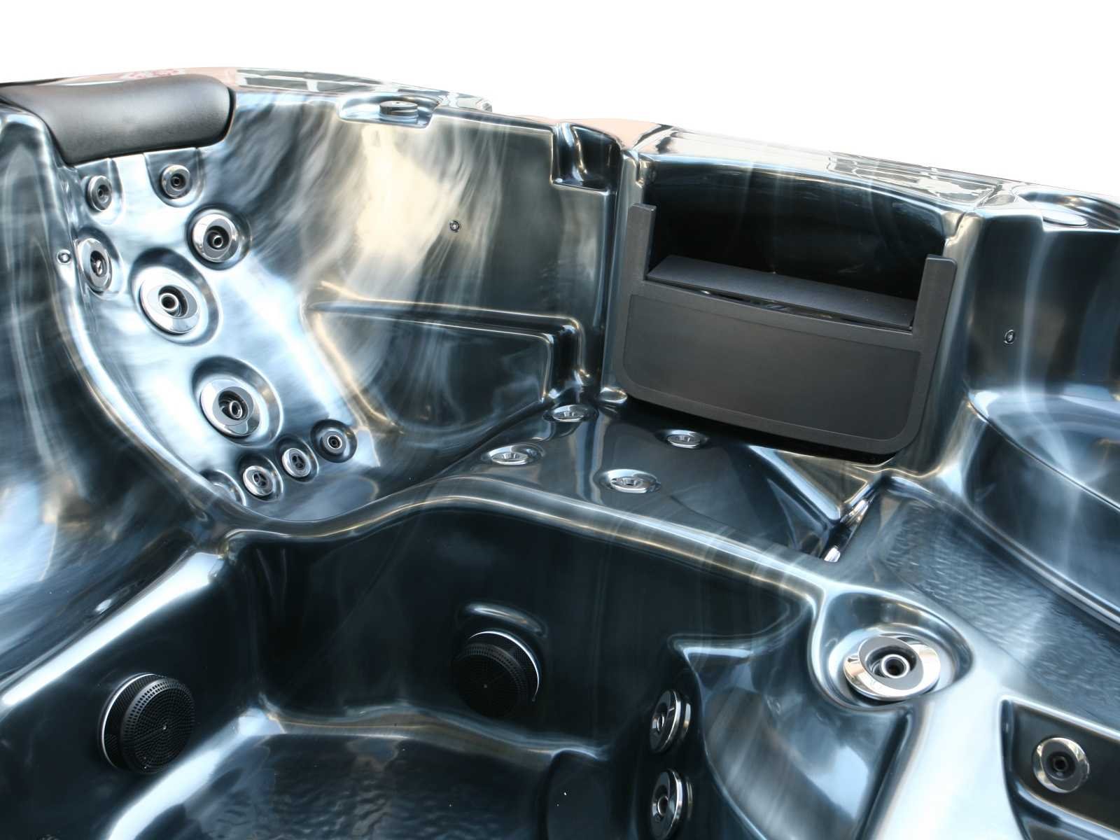 Bluetooth met speakers, kunststof onderhoudsvrije ombouw , besturing gecko uit canada (Gecko YE-5 + IN.K800), Gecko heater (3600 watt), 3 massage pompen (2x 3pk en 1x 1pk extra stille pomp), 24h circulatiepomp (200watt), 2 liglaatsen en 4 zitplaatsen (4 plaatsen voorzien van hoofdkussen), afdek cover extra dik inclusief (grijs), totaal 86 stainless steel RVS jets, extra nek en voet massage jets, vorst beveiliging, UV desinfectie systeem, diverse leds verlichting langs de waterrand + leds in de buitenhoek van de spa, diverse regelknoppen om de de kracht en de verdeling naar de jets te regelen, oppervlakte en reinigingsfilter, kuip extra dikke foam isolatie + extra isolatie aan de buitenwanden, waterafvoer, inclusief trapje (grijs), deze spa zit vol met alle mogelijk bestelbare opties, dit betreft een nieuw product in verpakking. Merk: Mawialux Model: New Roma Vermogen: 9050W Spanning: 220-380V Filters: 2 Verlichting: diverse leds met kleurentherapie (7 kleuren) op waterniveau Inhoud: 1500l Pompen: 4 Jets: 86 Aantal personen: 6 Kleur: snow white (wit) met zwarte ombouw Gewicht: 400kg Lengte: 230cm Breedte: 230cm Hoogte: 97cm Materiaal: acryl + Aluminium frame + kunststof ombouw + PVC gesloten bodem
