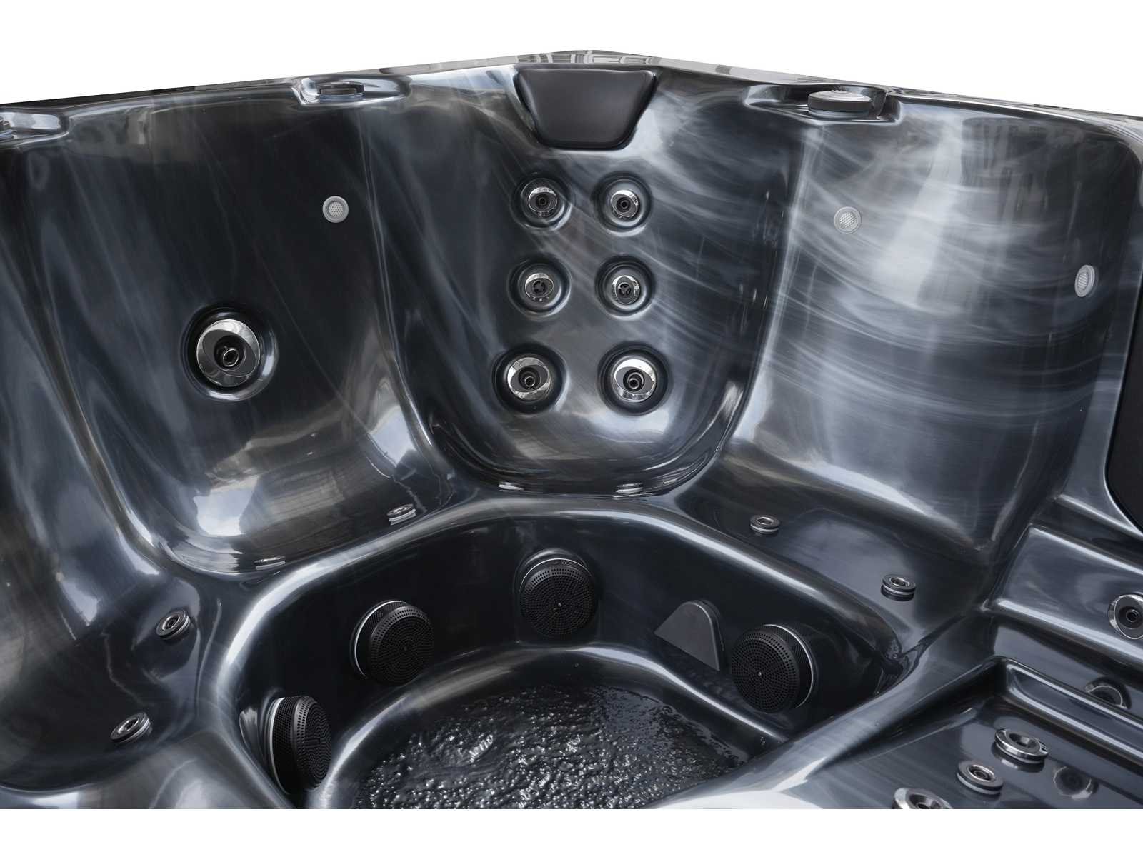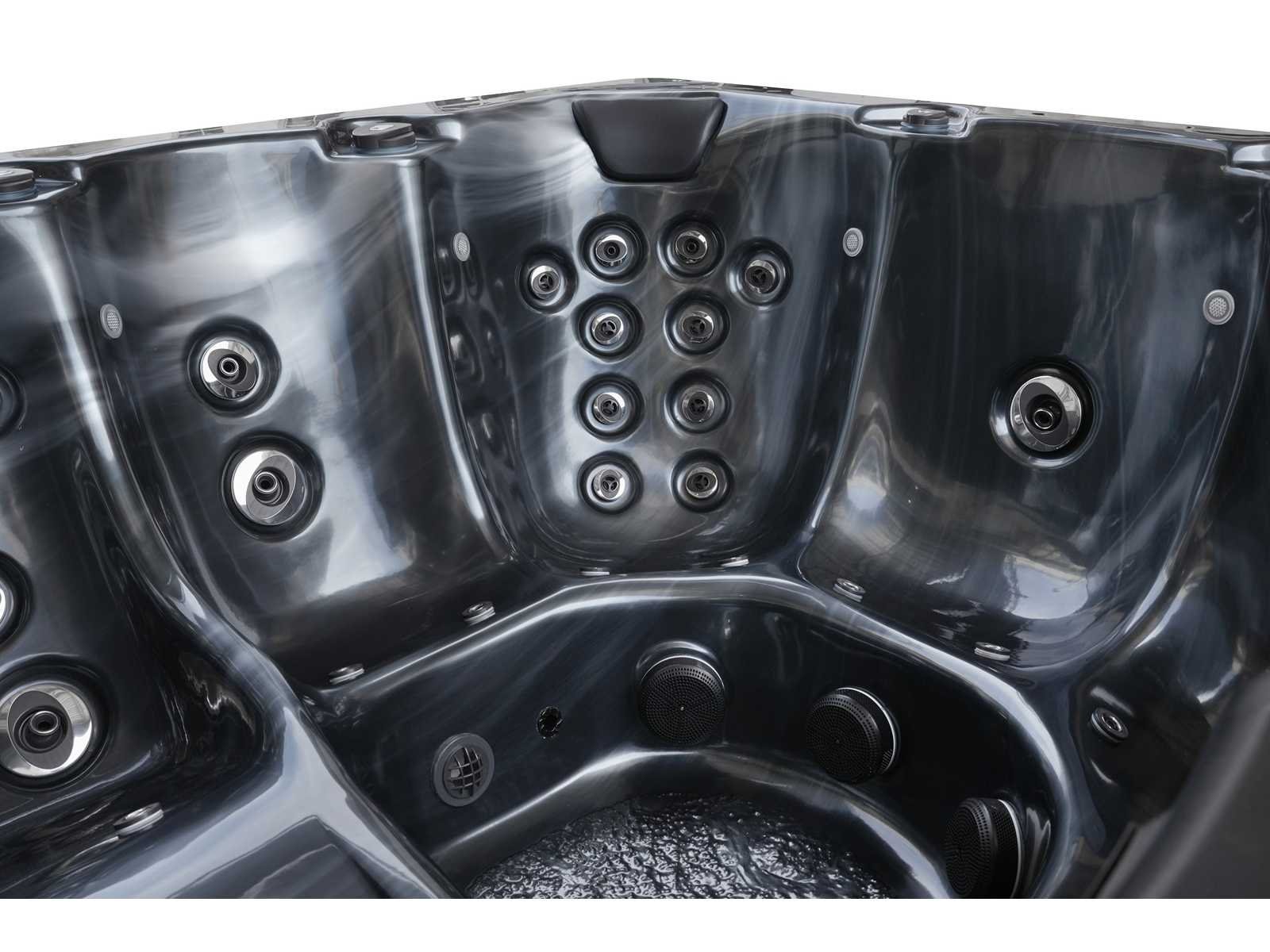 Bluetooth met speakers, kunststof onderhoudsvrije ombouw , besturing gecko uit canada (YJ-3 + IN.K506) + gecko digitaal bedieningspaneel), Gecko heater (2000 watt), 2 massage pompen (1x 3pk en 1x 1pk extra stille pomp), 24h circulatiepomp, 1 liglaatsen en 5 zitplaatsen (3 plaatsen voorzien van hoofdkussen), afdek cover extra dik inclusief (grijs), totaal 30 stainless steel RVS jets, extra nek en voet massage jets, vorst beveiliging, UV desinfectie systeem, diverse leds verlichting langs de waterrand + leds in de buitenhoek van de spa, diverse regelknoppen om de de kracht en de verdeling naar de jets te regelen, oppervlakte en reinigingsfilter, kuip extra dikke foam isolatie + extra isolatie aan de buitenwanden, waterafvoer, inclusief trapje (grijs), deze spa zit vol met alle mogelijk bestelbare opties, dit betreft een nieuw product in verpakking. Deze spa is uitermate geschikt voor locaties waar u maar 1x 220v stekker aansluiting heeft (wanneer de massagepomp aangezet wordt slaat automatisch de heater af waardoor de piekspanning nooit hoger als 3200watt komt) Bezorgtermijn 14 dagen Merk: Mawialux Model: New Milano Vermogen: 3200W Spanning: 220V Filters: ja Verlichting: diverse leds met kleurentherapie (7 kleuren) op waterniveau Inhoud: 1400l Pompen: 2 Jets: 52 Aantal personen: 6 Kleur: black pearl (zwart met zwarte ombouw Gewicht: 300kg Lengte: 200cm Breedte: 200cm Hoogte: 97cm Materiaal: acryl + Aluminium frame + kunststof ombouw + PVC gesloten bodem