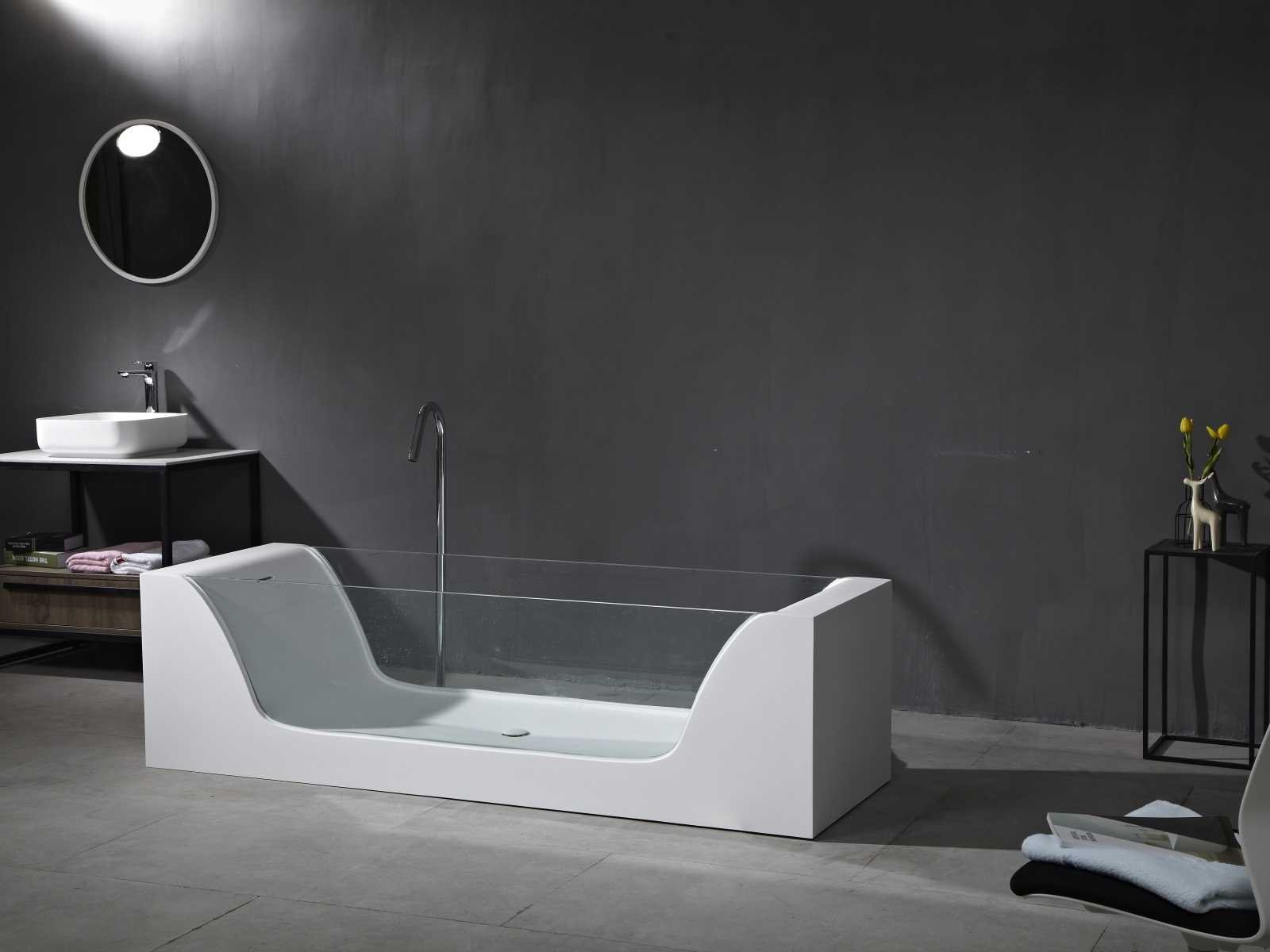 Randen bestaan uit 12mm dik veiligheidsglas, afvoer pop-up (in kleur van de binnenkant van het bad) inclusief, met afvoerslang (in lengte verstelbaar), 2 jaar garantie, hoge kwaliteit Merk: Mawialux Model: Dale Kleur: mat wit Gewicht: 200kg Lengte: 200cm Breedte: 65cm Hoogte: 56cm Materiaal: solid surface + veiligheidsglas