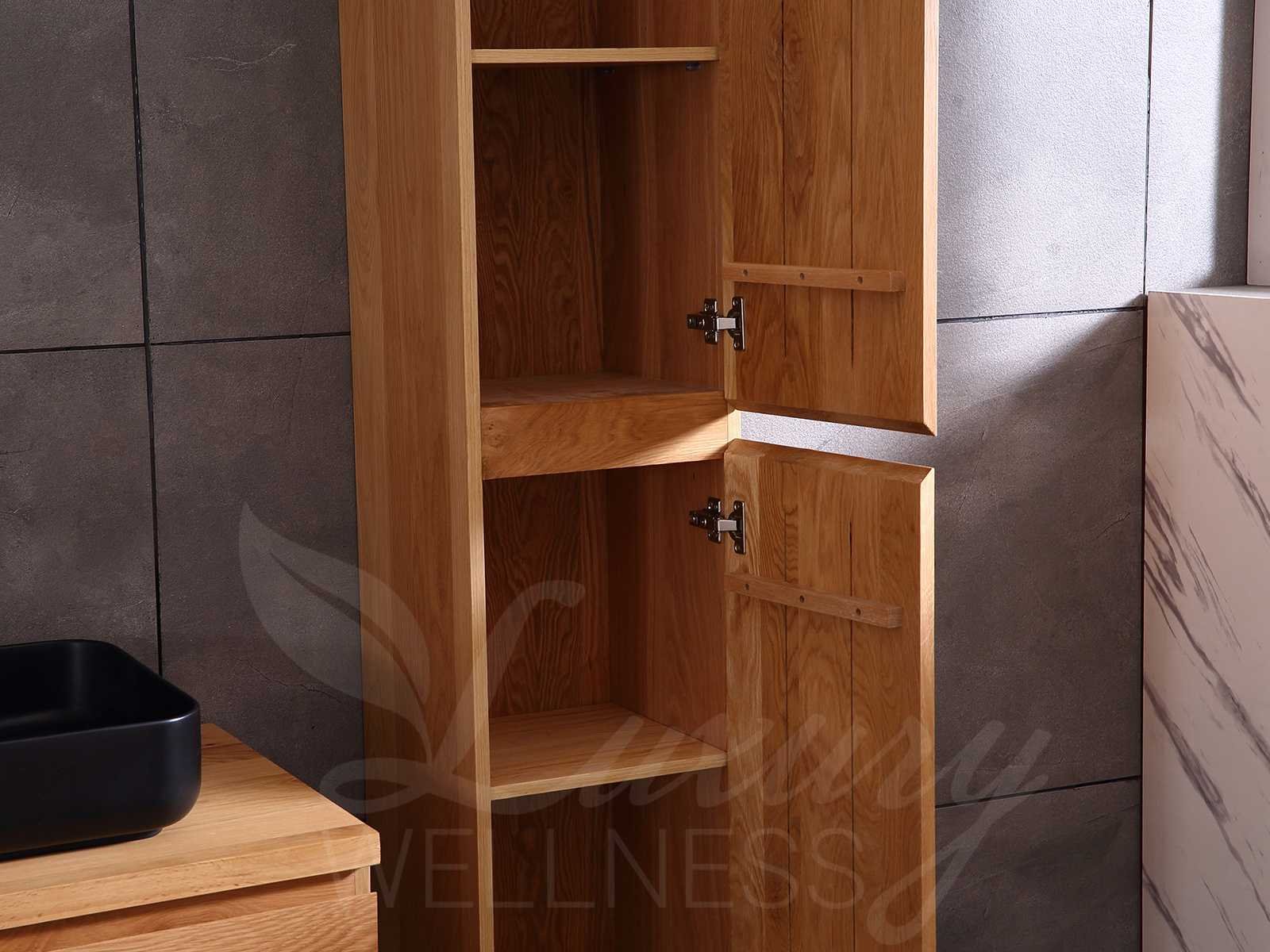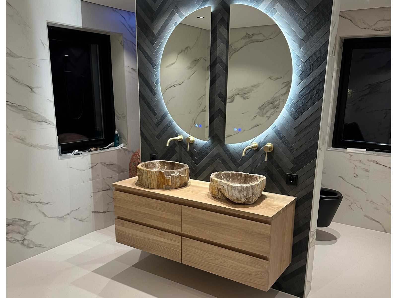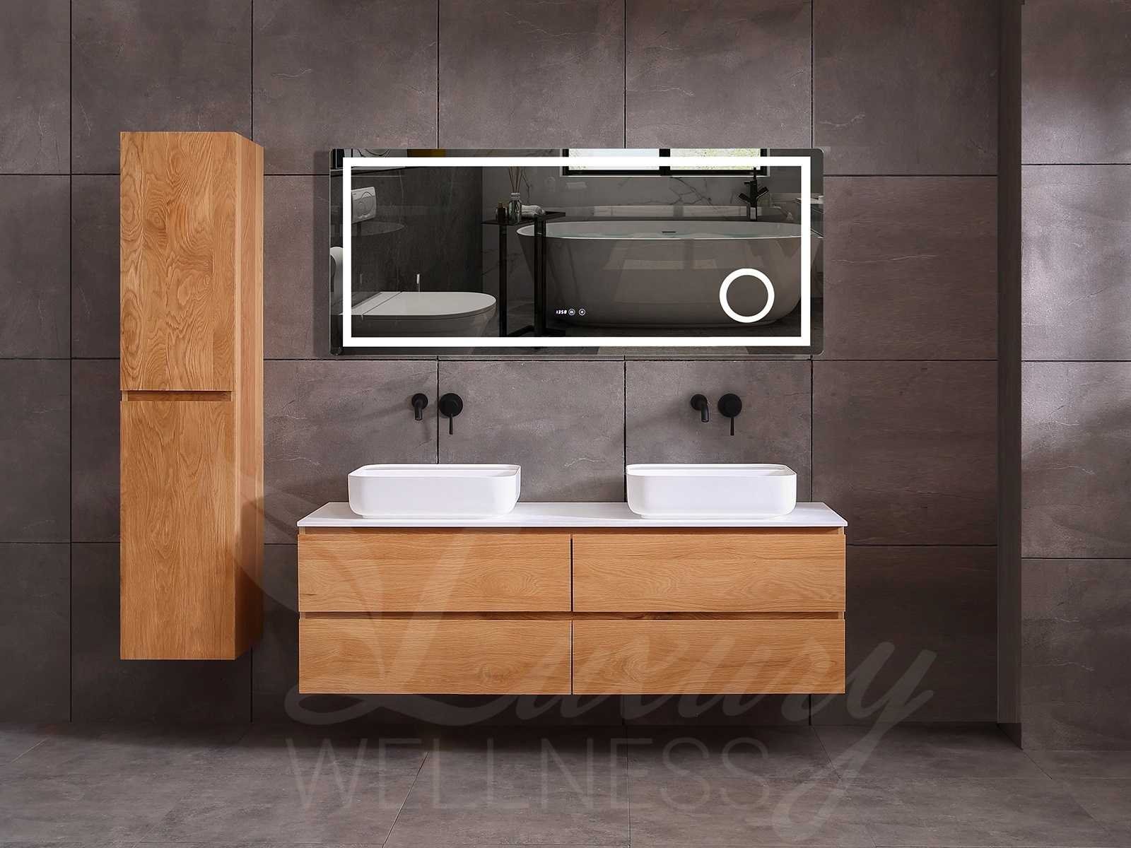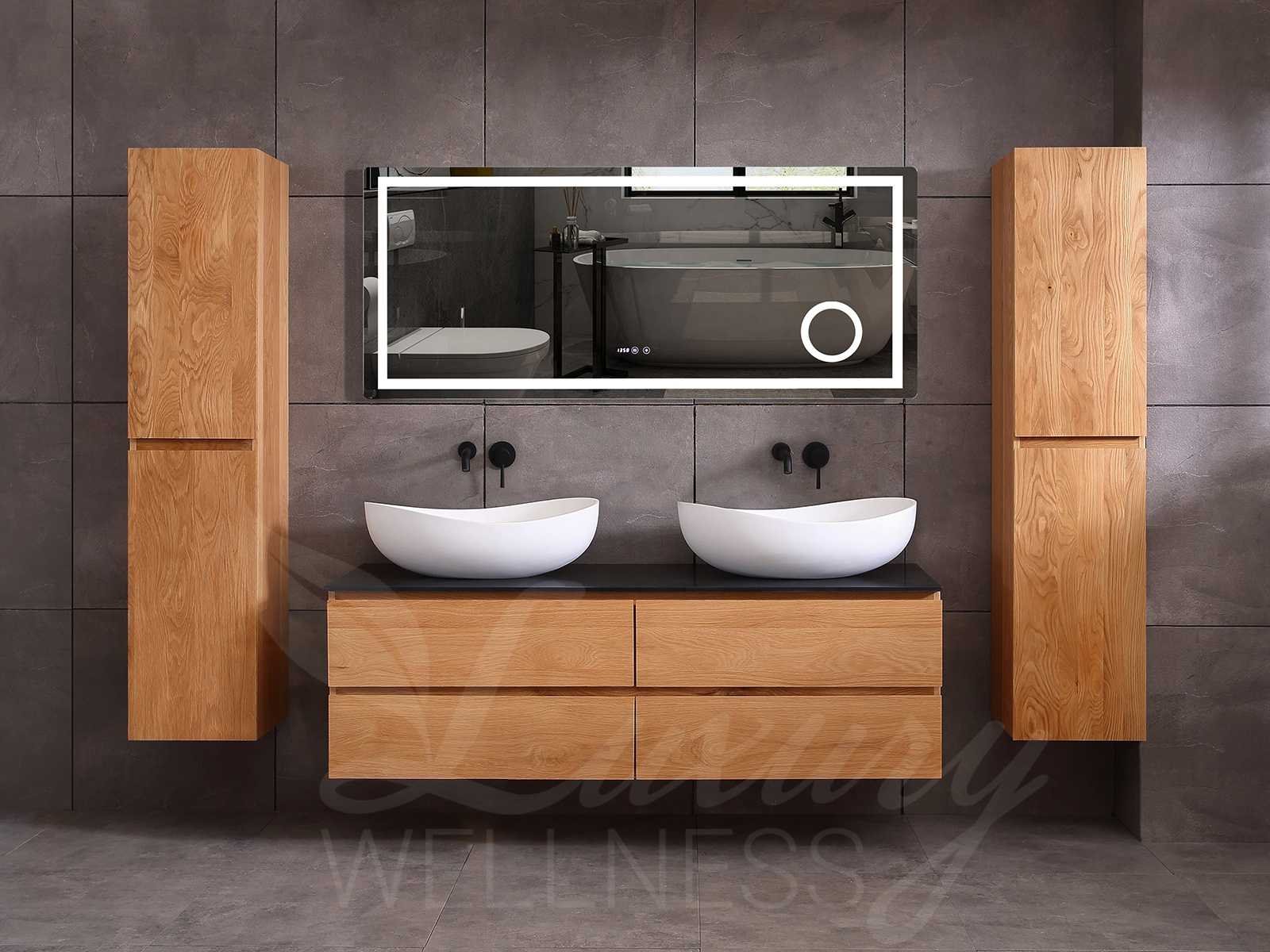 Afmeting meubel bxdxh 140x50x50cm - hangkast 40x28x168cm, kleur eiken natural, materiaal 3cm massief eiken top + 2cm massief eiken (front) en 5-laags multiplex(zeer sterk en vochtbestendig), hangkast softclose deuren en extra planchets (hangkast is universeel en kan zowel links als rechts naast het meubel gehangen worden), kranen exclusief, lades 4 stuks met softclose, wastafels natuursteen of solid surface (keuze uit diverse modellen van de laatste foto's, keuze graag op de afhaaldag aangeven), spiegel led spiegel met verwarming/bluetooth/radio/klok en vergrootglas met ledverlichting rondom aan de achterkant met 3 verstelbare kleuren led 3000/4500/6000k led-dioden (geel/blauw/wit licht) met de volgende opties digitaal display, geïntegreerde vergrotingsspiegel van 10cm doorsnede met ledverlichting(vergroot 3x), bluetooth met speaker, digitale klok, digitale temperatuur aanduiding, 220volt stekker(plug and play), LET OP: Dit betreft een onderkast met een massief 3cm top zoals de laatste foto, de overige foto's zijn enkel een voorbeeld, let op! de hangkast mag geruild worden voor een set kranen en popup afvoeren naar keus of als u een extra hangkast nodig graag op de afhaaldag aangeven voor een passende aanbieding Merk: Mawialux Model: William Hoogte: 50cm Lengte: 50cm Breedte: 140cm Materiaal: Eiken Kleur: grey smoked of natural eiken Lades: 4 Softclose: true Bevestigingsmateriaal: true Zijkast: ja 1x