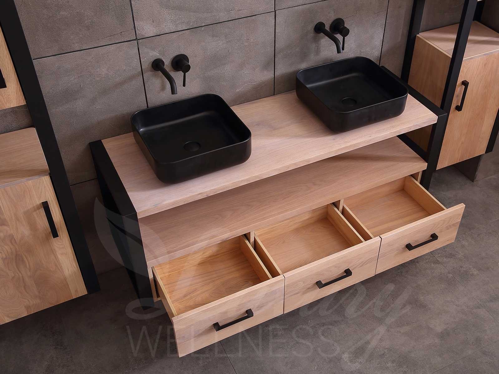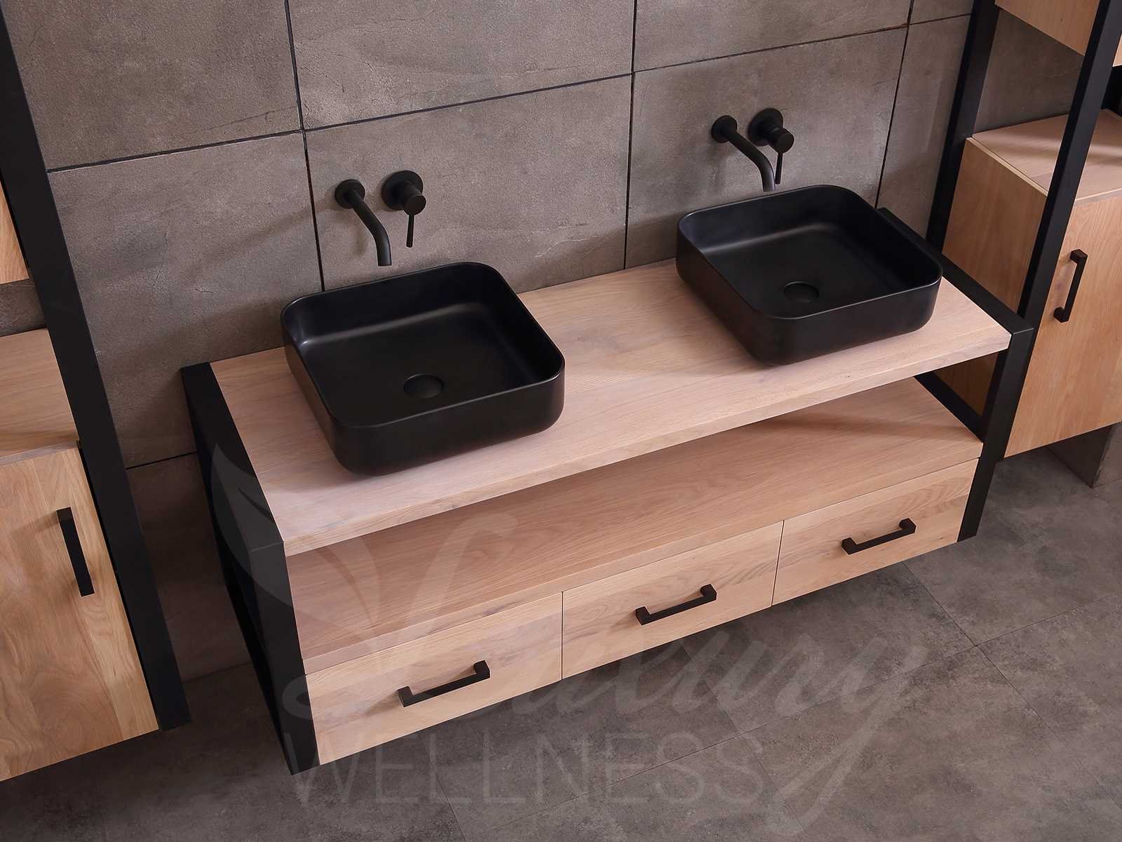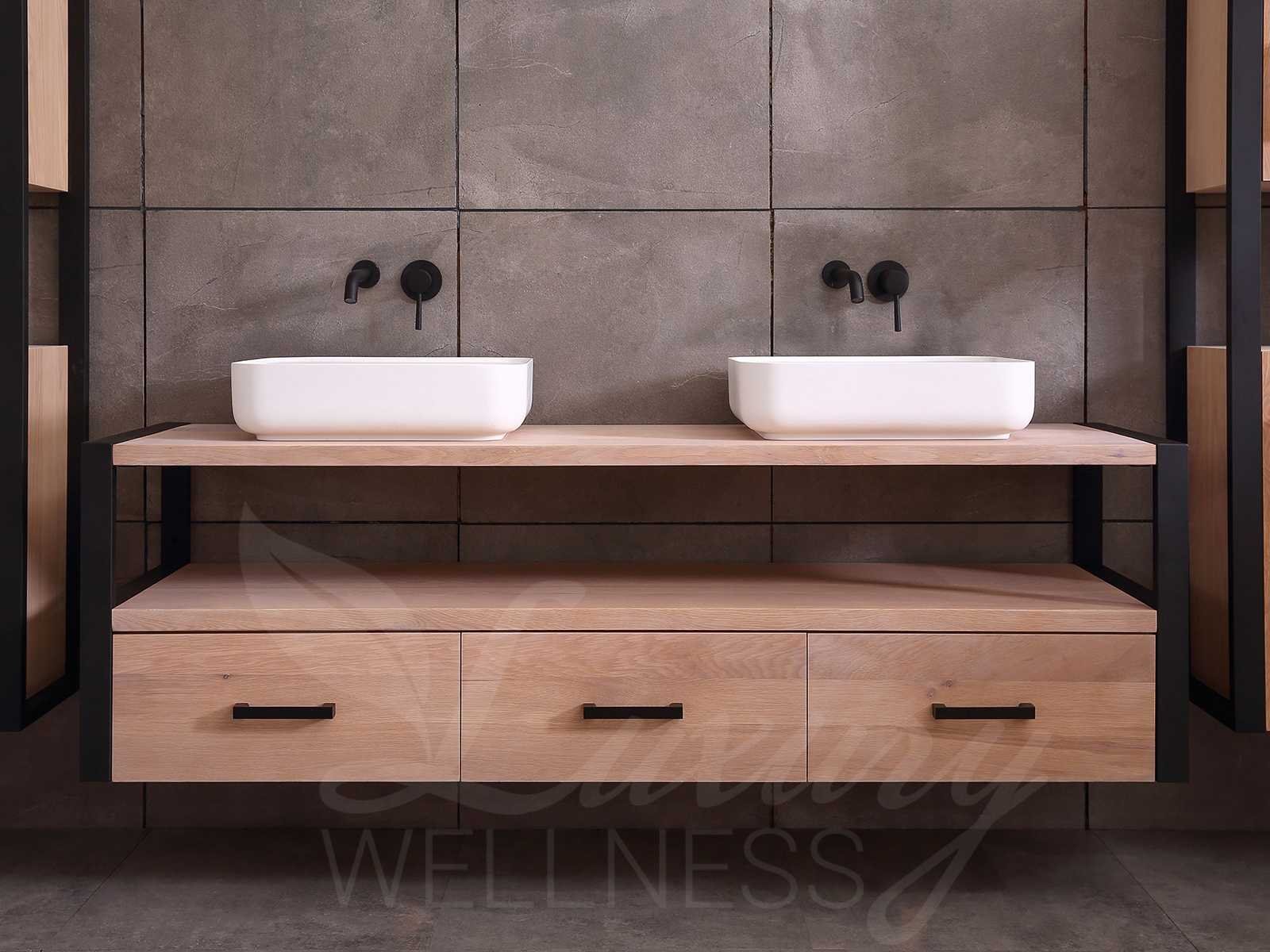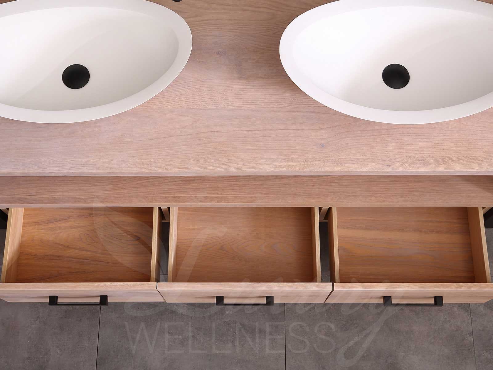 Afmeting meubel bxdxh 150x50x55cm - hangkasten 45x35x160cm(5cm rvs frame per kant), kleur eiken natural, materiaal 2cm massief eiken (front) met 3cm massief top overige en 5-laags multiplex(zeer sterk en vochtbestendig), Hangkast softclose deuren en extra planchets (hangkast is universeel en kan zowel links als rechts naast het meubel gehangen worden), kranen exclusief , Lades 2 stuks met softclose, Wastafel natuursteen of solid surface (keuze uit diverse modellen van de laatste foto's, kraangaten zijn nog niet in het top voorgeboord zodat u muurkranen of kranen uit het blad kan gebruiken, led spiegel met verwarming/klok en vergrootglas met ledverlichting, geïntegreerde vergrotingsspiegel van 10cm doorsnede met ledverlichting(vergroot 3x), digitale klok, digitale temperatuur aanduiding, 220volt stekker(plug and play), verwarming ter voorkoming van condens, 1.5mm kopervrij met explosion-proof laag met dezelfde functie als gehard glas(de spiegel mag geruild worden voor een ander model/type), afvoeren exclusief, Conditie: Nieuw in doos, Bijzonderheden 2 jaar garantie, compleet met installatie materiaal, zeer hoge kwaliteit, let op! 1 hangkast mag geruild worden voor een set kranen en popup afvoeren naar keus (graag op de afhaaldag aangeven) Merk: Mawialux Model: Philip Hoogte: 55cm Lengte: 50cm Breedte: 150cm Materiaal: Eiken Kleur: Eiken white wash Kraan: exclusief Wastafel: diverse keuzes Waskom: diverse keuzes Spiegel met verlichting: ja Verlichting: ja Lades: 3 Softclose: true Bevestigingsmateriaal: true Zijkast: ja 2x Afmeting hangkast: LxBxH 35x45x160