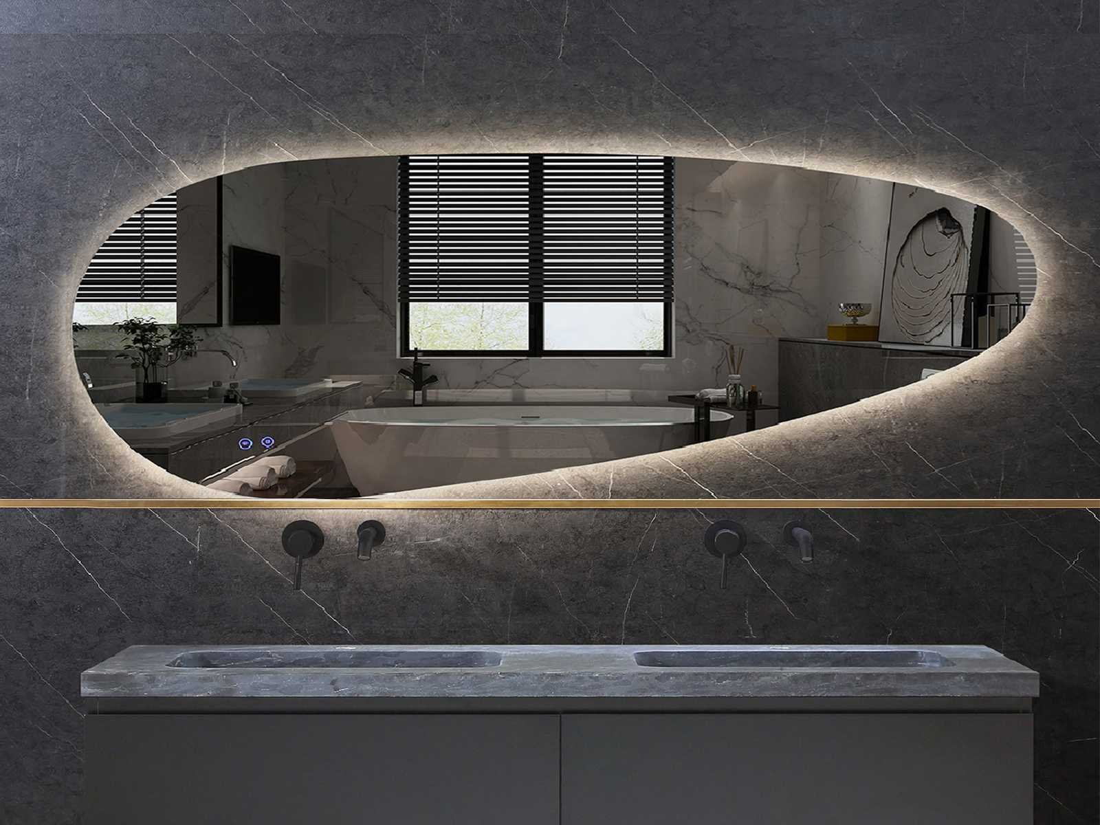 LET OP: keuze uit 2 maten namelijk 160x85 of 180x75 en spiegel is ook in spiegelbeeld verkrijgbaar (met het dikke gedeelte links) keuze graag aangeven op afhaaldag, verwarming, bediening 2x one-touch touchebediening, verlichting 3 verstelbare kleuren led 3000/4500/6000k led-dioden(dimbaar) (geel/blauw/wit licht), voorzien van 4 geïntegreerde ophangpunten, 220volt stekker(plug and play), 1.5mm kopervrij glas met explosion-proof laag, er zitten 4 ophangpunten achter de spiegel waardoor je spiegel zowel horizontaal als verticaal op kunt hangen (past dus zowel op een 80cm als een 50cm breed meubel en diverse andere 1 of 2-persoons meubels), zeer exclusieve spiegel Merk: Mawialux Model: Darla Breedte: 160-180cm Hoogte: 75-85cm Touchscreen: true