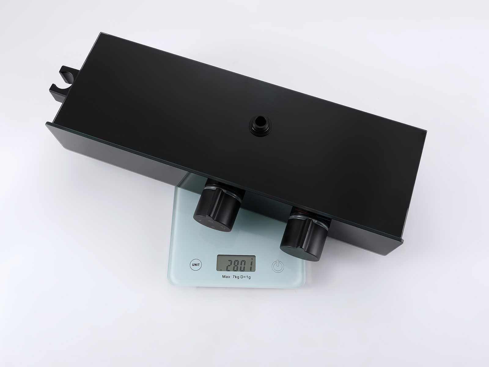 De doucheset is uitgerust met drie functies. Hoofddouche, handdouche en de baduitloop worden afzondelijk van elkaar gebruikt. Door de aanwezigheid van de baduitloop is deze doucheset uitermate geschikt voor douchebaden. Naast deze drie functies is de doucheset uitgerust met een digitaal display waarop je in een oogopslag de temperatuur van het water en de gebruiksduur kunt aflezen. Daarnaast word er gebruik gemaakt van keramische binnenwerken zodat je jarenlang plezier zult hebben van jouw regendoucheset. Doordat de doucheset in hoogte verstelbaar is past hij in vrijwel elke badkamer. Het digitale scherm word aangestuurd door de waterflow. Je hebt hier dus geen stroom voor nodig. Hoogte: verstelbaar 80 - 125 cm. Materiaal: aluminium en messing. Kleur: mat zwart. Kraan: thermostaatkraan. Binnenwerk: keramisch. Douchekop: 30 cm doorsnee. Handdouche: verstelbaar. Voorzien van: digitale micromotor aansturing door middel van waterflow, geen stroom nodig, temperatuur digitaal afleesbaar, digitale aanduiding tijdsduur, keramisch binnenwerk , baduitloop, gehard glazen front voor lange levensduur Bijzonderheden: h.o.h. afstand van 150mm. Merk: Mawialux Model: Yuri Kleur: mat zwart