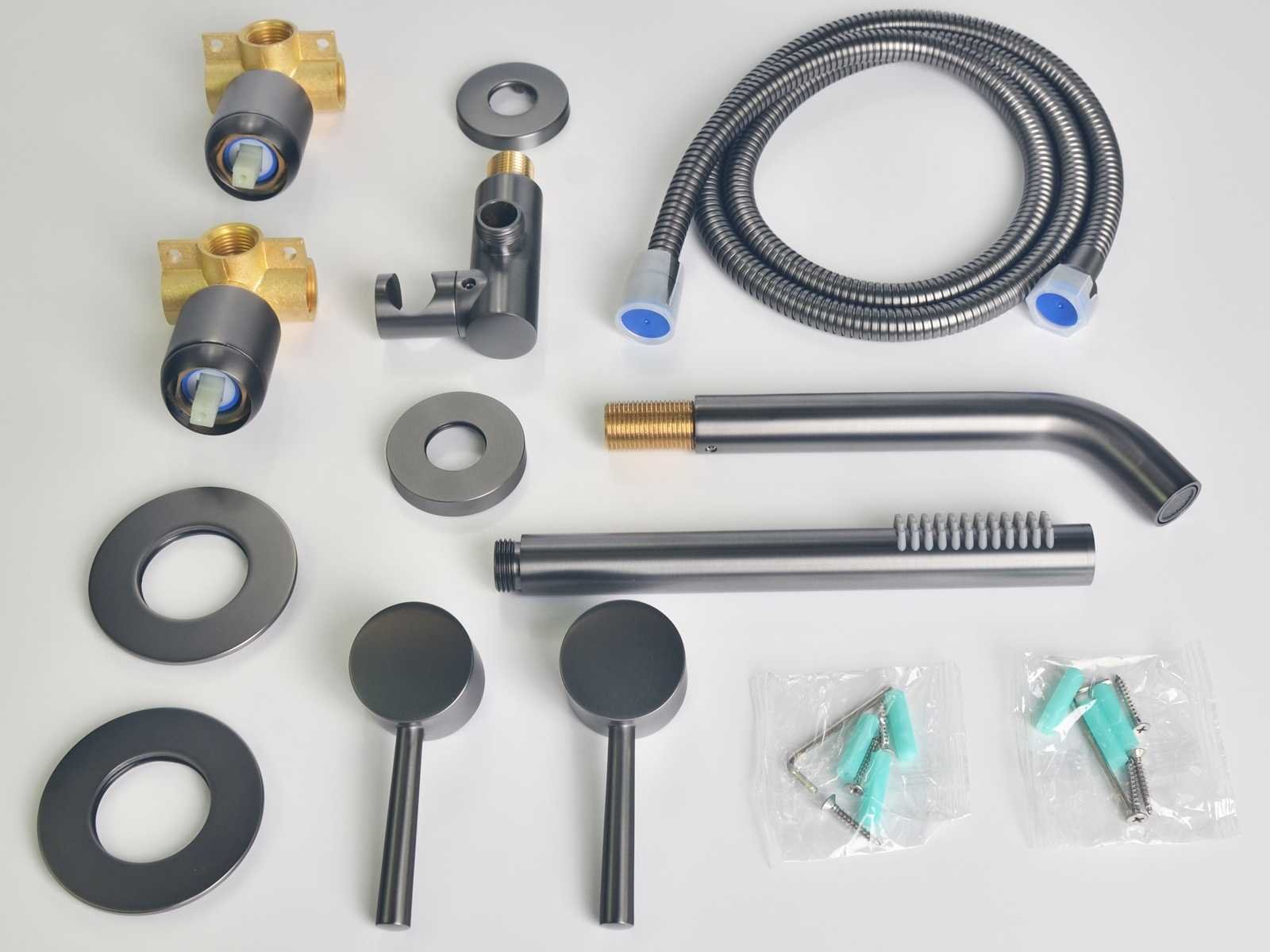 Binnenwerk keramisch, handdouche ja met flexibele doucheslang en verstelbare messing ophanging, voorzien van 2 mengkranen, 20cm badkraan uitloop, LET OP: dit artikel kan gratis bezorgd worden binnen de Benelux(neem hiervoor contact met ons op via info@mawialux.nl) Merk: Mawialux Model: Madal Kleur: gunmetal grey