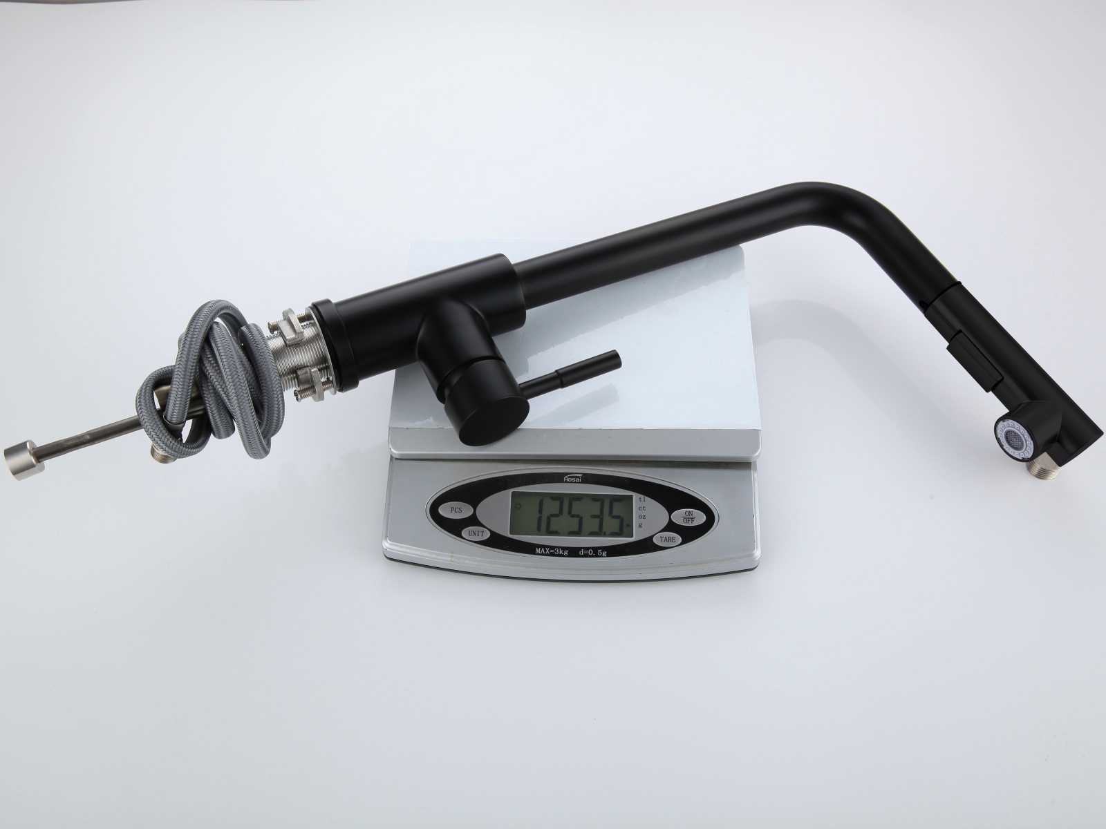 Materiaal 304 rvs, hoogte circa 36 cm, gewicht 2kg, voorzien van sproeikop met 2 functies, uitloop 360 graden draaibaar, waterslangen met aansluitmateriaal, sproeikop uitneembaar met extra lange flexibele waterslang, LET OP: boven een bod van 50,- euro excl BTW en veilingkosten versturen we dit product gratis binnen de benelux naar u toe per post. Merk: Mawialux Model: Rosa Kleur: mat zwart