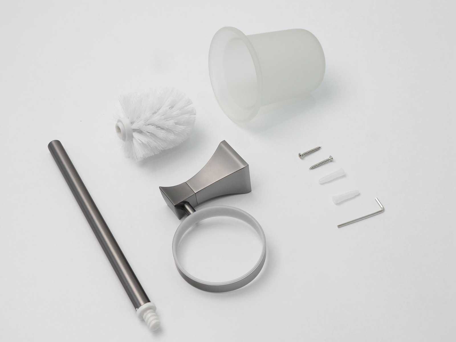 Set 4-delig, materiaal messing, kleur gunmetal grey, voorzien van toiletborstel met houder, toiletrolhouder met klep, reserverol houder, haak, bevestigingsmateriaal, LET OP: boven een bod van 60,- euro excl BTW en veilingkosten versturen we dit product gratis binnen de benelux naar u toe per post. Merk: Mawialux
