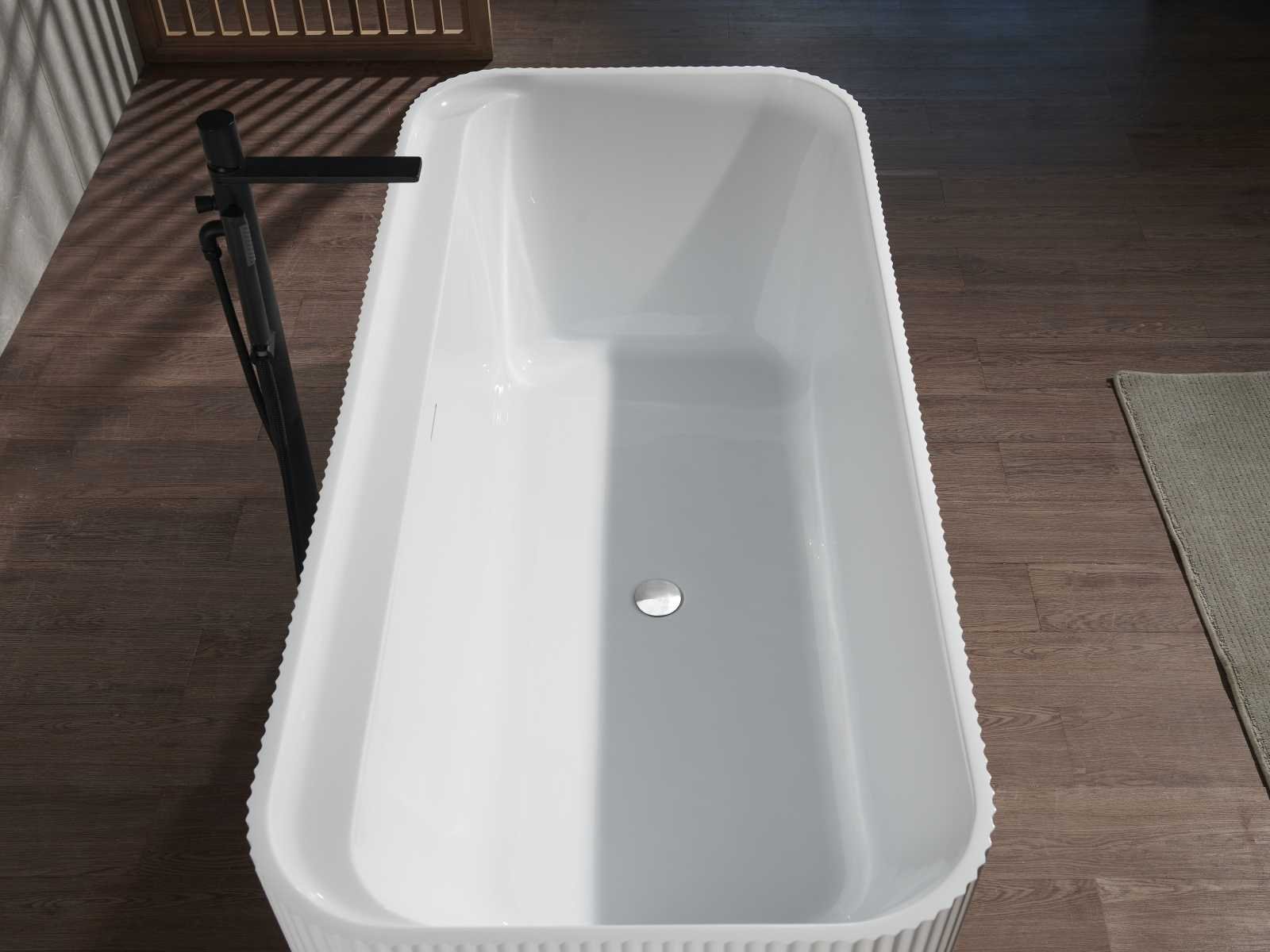 Pop-up afvoer met flexibele waterslang; onderstel verstelbaar van RVS Merk: Mawialux Kleur: Mat wit Gewicht: 50kg Lengte: 170cm Breedte: 78cm Hoogte: 58cm Materiaal: 7 mm acryl verstevigd met polyester