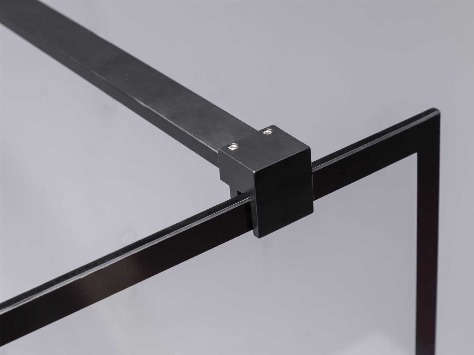 Kleur mat zwart, materiaal aluminium profiel met messing ophanging, glas 8mm dik helder nano gecoat veiligheidsglas (vermindert kalkaanslag), voorzien van onzichtbare schroefbevestiging - hoek verstevigingsblok voor vloer - bevestiging materiaal - vierkante bevestiging stang van messing 120cm (in te korten naar gewenste maat), ruitprofiel - geschikt voor op een douchebak en direct op de tegelvloer - wandprofiel 20 mm verstelbaar Merk: Mawialux Model: Ohio Breedte: 90cm Hoogte: 195cm