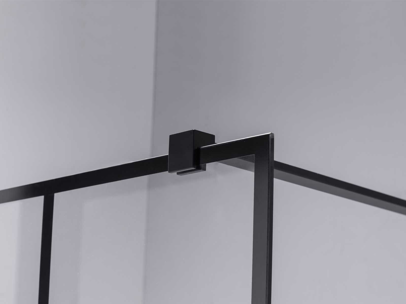 Kleur mat zwart, materiaal aluminium profiel met messing ophanging, glas 8mm dik helder nano gecoat veiligheidsglas (vermindert kalkaanslag), voorzien van onzichtbare schroefbevestiging - hoek verstevigingsblok voor vloer - bevestiging materiaal - vierkante bevestiging stang van messing 120cm (in te korten naar gewenste maat), ruitprofiel - geschikt voor op een douchebak en direct op de tegelvloer - wandprofiel 20 mm verstelbaar Merk: Mawialux Model: Ohio Breedte: 90cm Hoogte: 195cm
