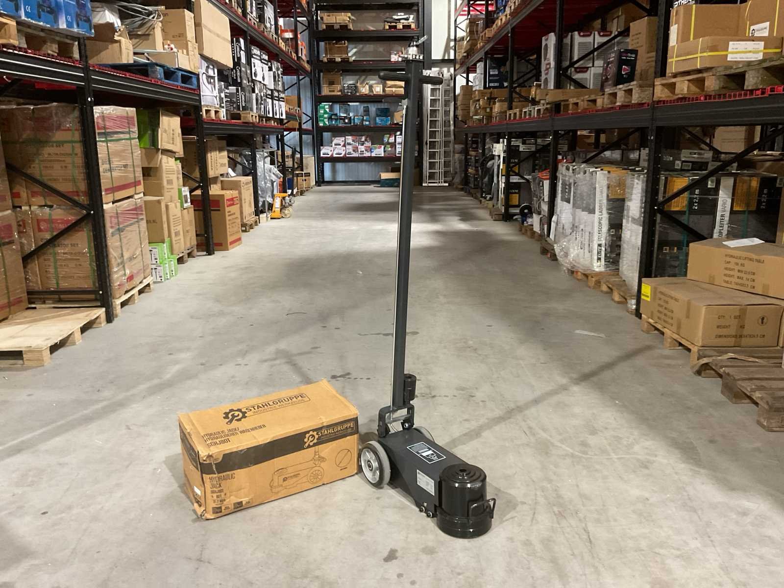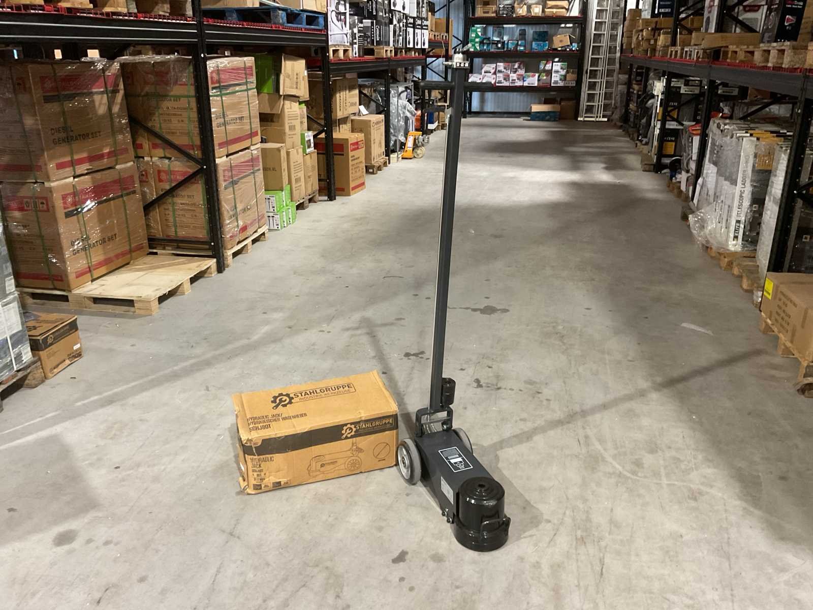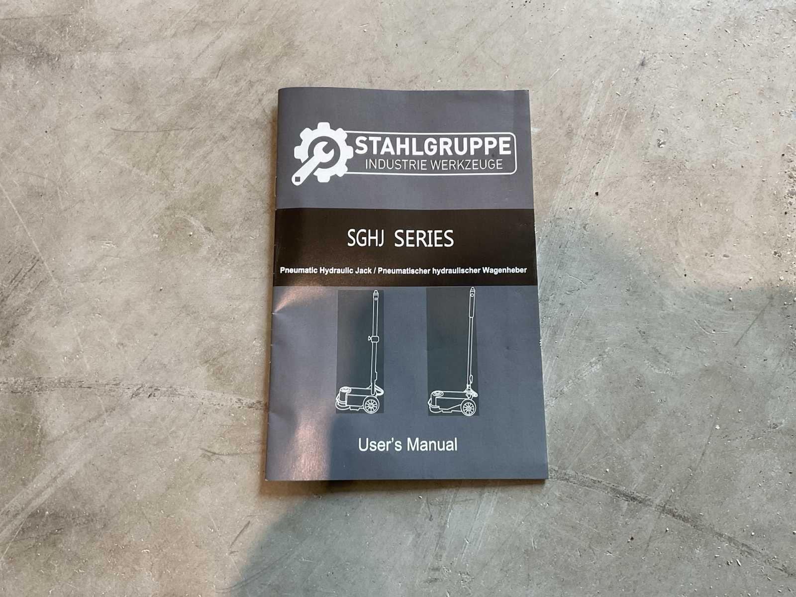Voorzien van Pneumatisch / Hydraulische krik; 50 Ton tilkracht; 2 Traps cilinder; 8 Bar minimum werkdruk; Ongebruikt in 2 dozen (Colie 1 580x330x255 - Collie 2 150x28x15 5,4kg) Merk: Stahlgruppe Type: SGHJ50T Bouwjaar: 2025 Capaciteit.: 50t Eigen gewicht: 50.6kg Totale afmeting L: 580mm Totale afmeting Breedte: 330mm Totale afmeting Hoogte: 255mm
