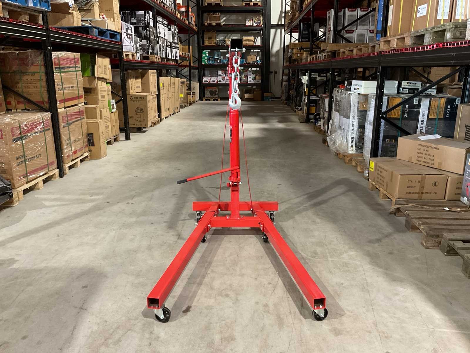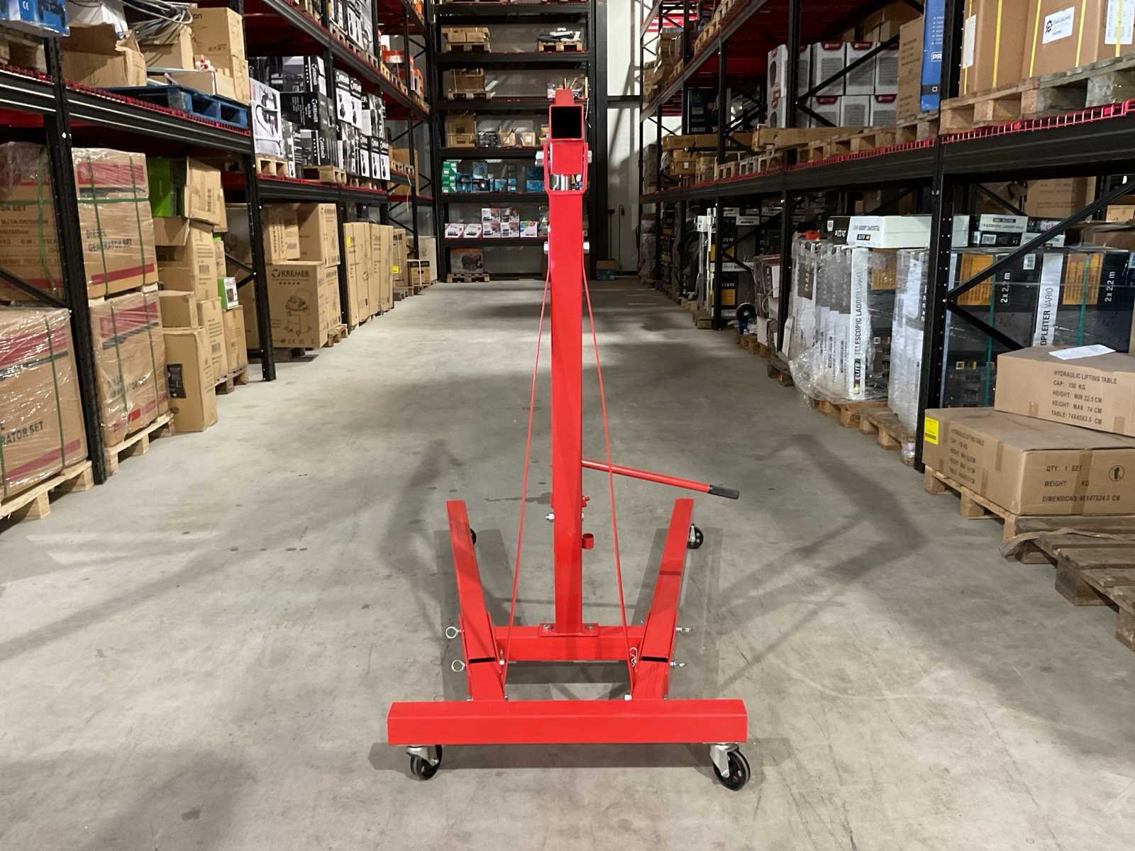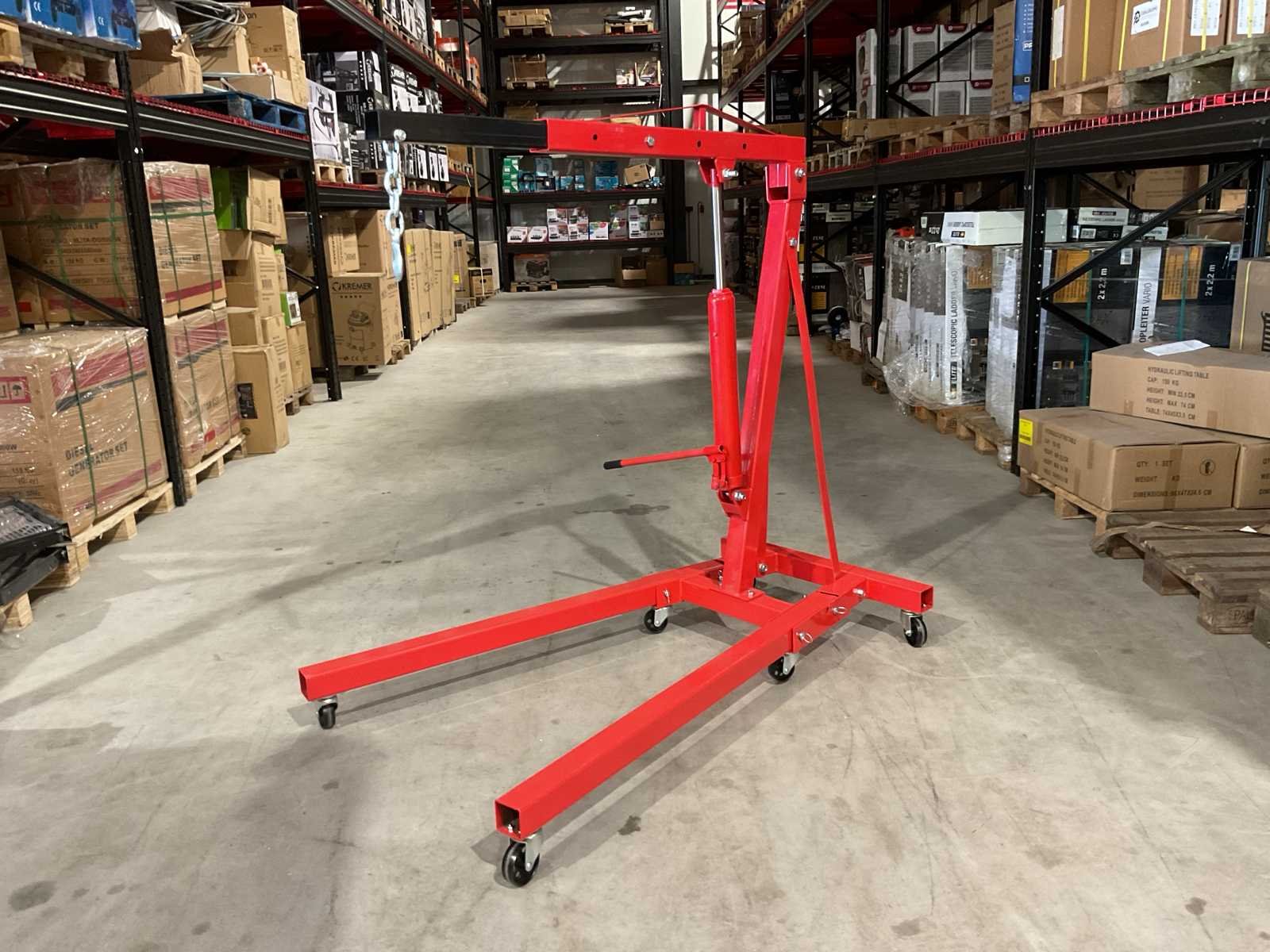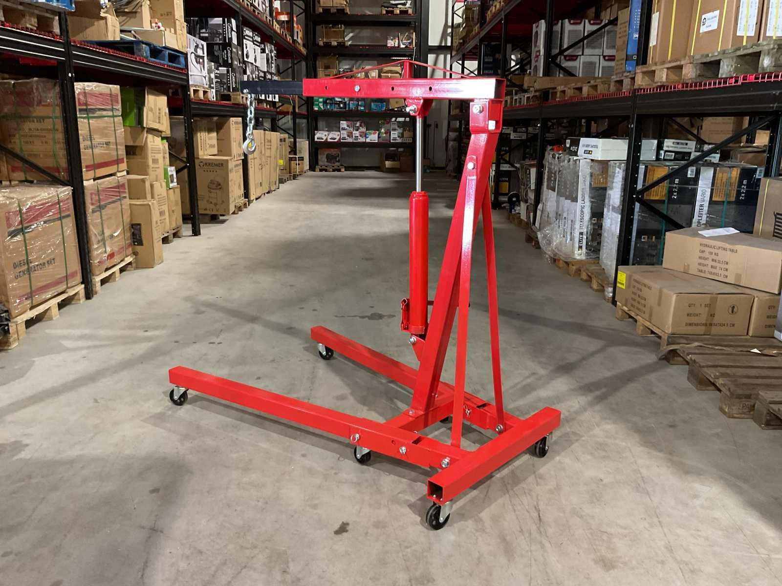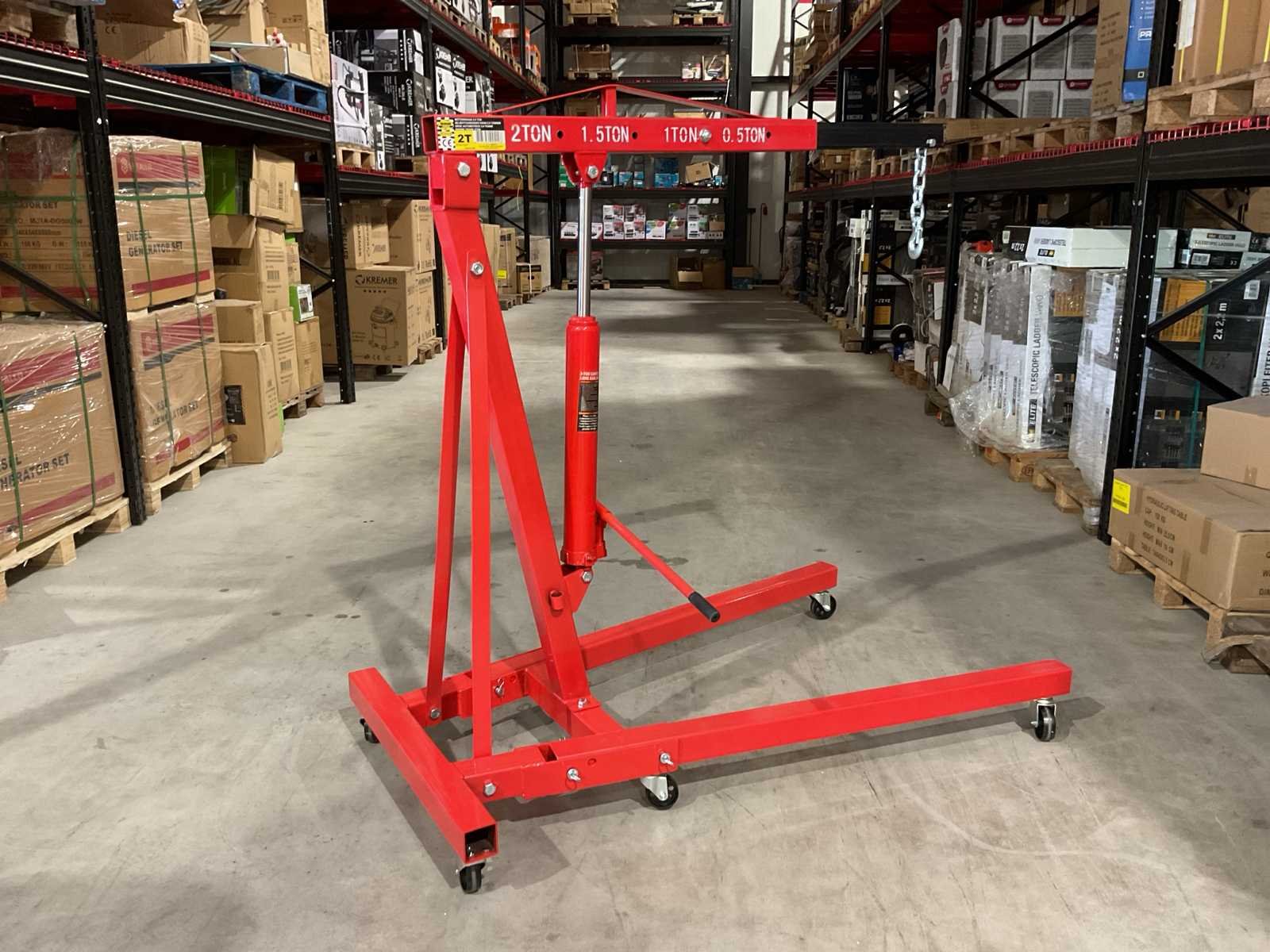 Voorzien van zwenk wielen; telescoop arm; 4 verschillende standen (500, 1000, 1500 en 2000 kilo); lengte van 107 tot 160 cm; Maximale reikhoogte van 270 cm; Binnenbreedte tussen de wielen: 88 cm en de hoogte van de wielen bedraagt 12 cm; Ongebruikt in doos (Afmeting transport verpakking doos 1 - 1385x310x155 mm / Doos 2 - 830x580x80 lxbxh, gewicht 75 kg) Merk: Benson Tools Type: 2 Ton Bouwjaar: 2025 Eigen gewicht: 75kg Totale afmeting Hoogte: 2700mm