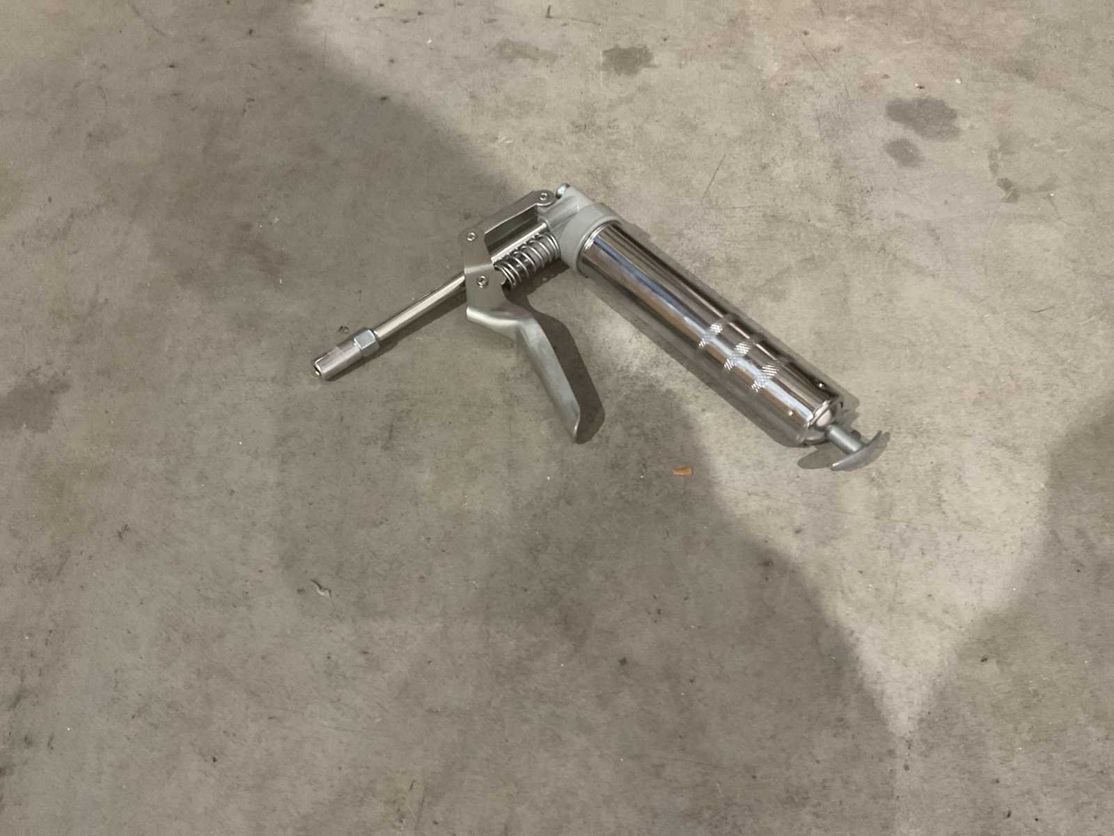 Voorzien van vetspuit; geschikt voor 85 gram vetpatronen; flexibele slang; vaste pijp 145 mm; ongebruikt in doos Transport afmeting 270 x 135 x 40, Gewicht 0.62 kg ) Merk: Benson tools Type: 010391 Bouwjaar: 2025 Eigen gewicht: 0.09kg Totale afmeting L: 270mm Totale afmeting Breedte: 40mm Totale afmeting Hoogte: 135mm