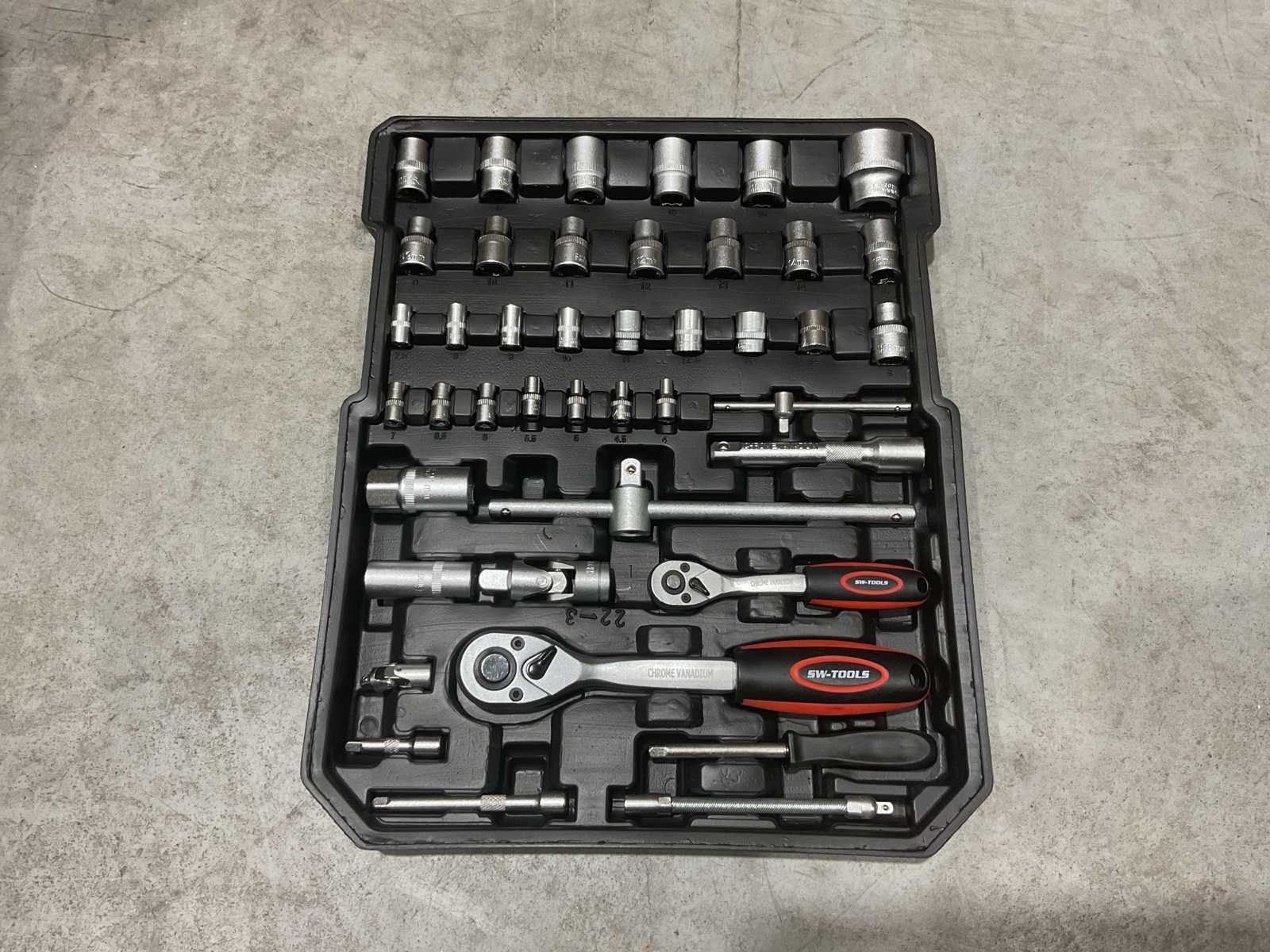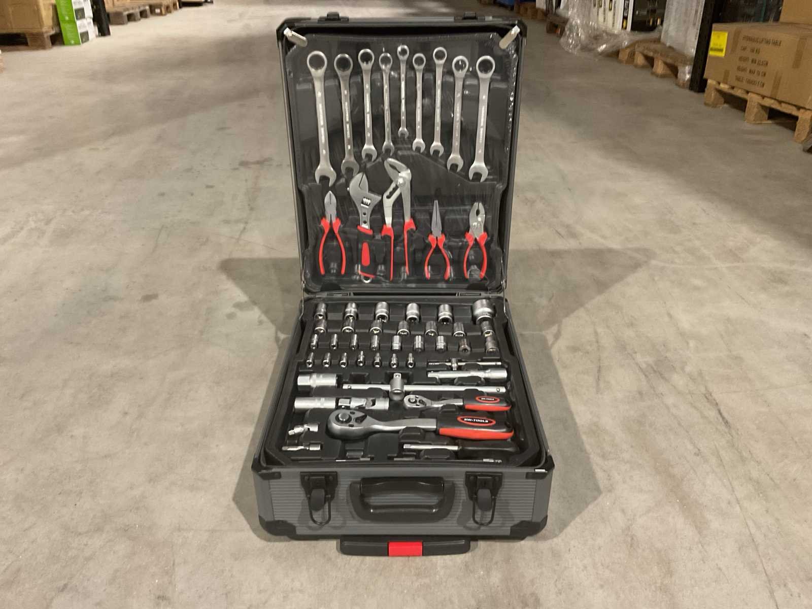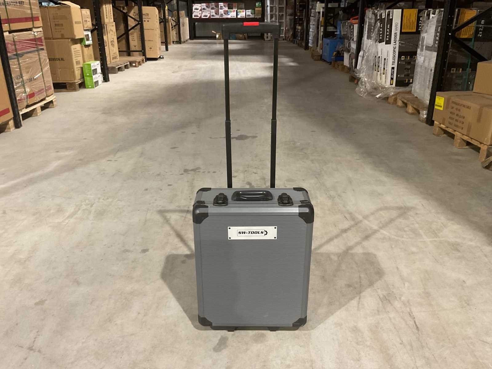 Voorzien van Schroevendraaierset; Zaag; Waterpas; Hamer; Bitset; Inbussleutels; Spanningsmeter; Handgereedschap; Spijkers; pluggen; Aluminium Koffer; Telescoop handgreep; wielen; ongebruikt in doos Merk: SW Tool Type: 399PCS Aluminium: true Metaal: true Met inhoud: true Afmeting l: 38.5mm Afmeting b: 20.5mm Afmeting h: 52mm Eigen gewicht: 13kg