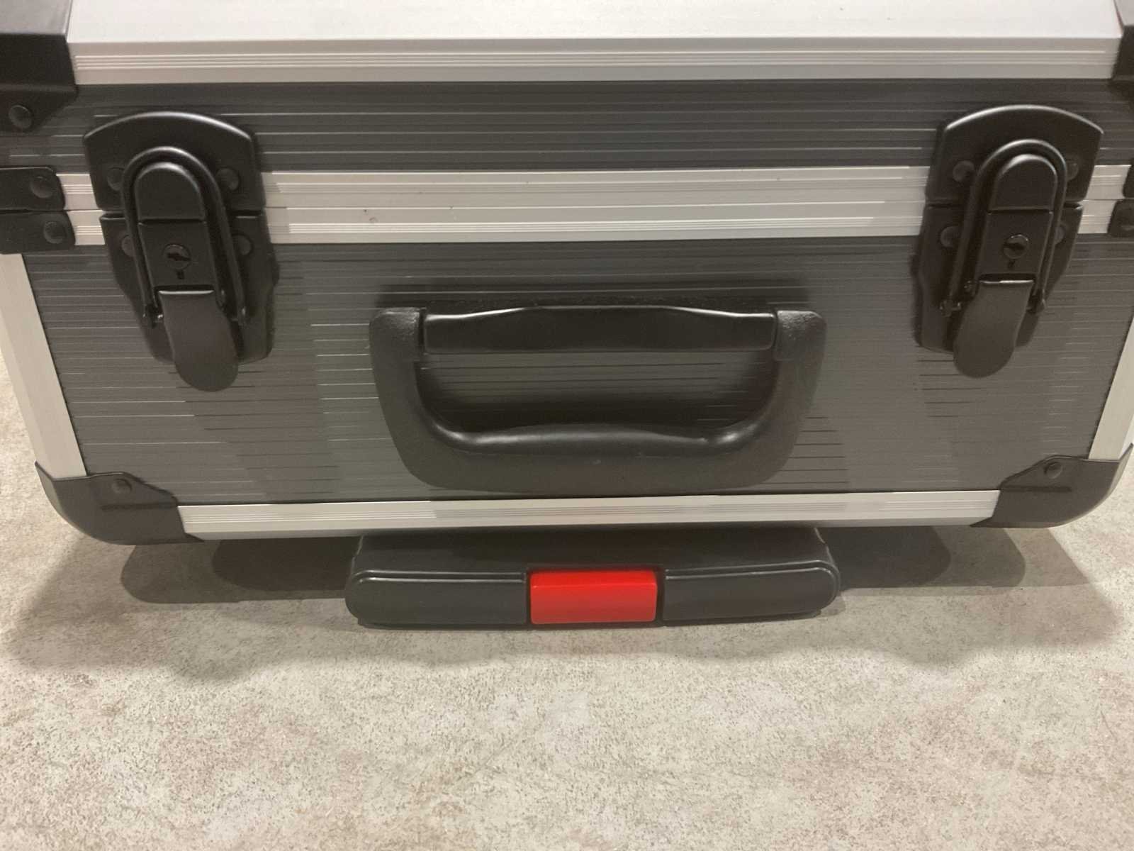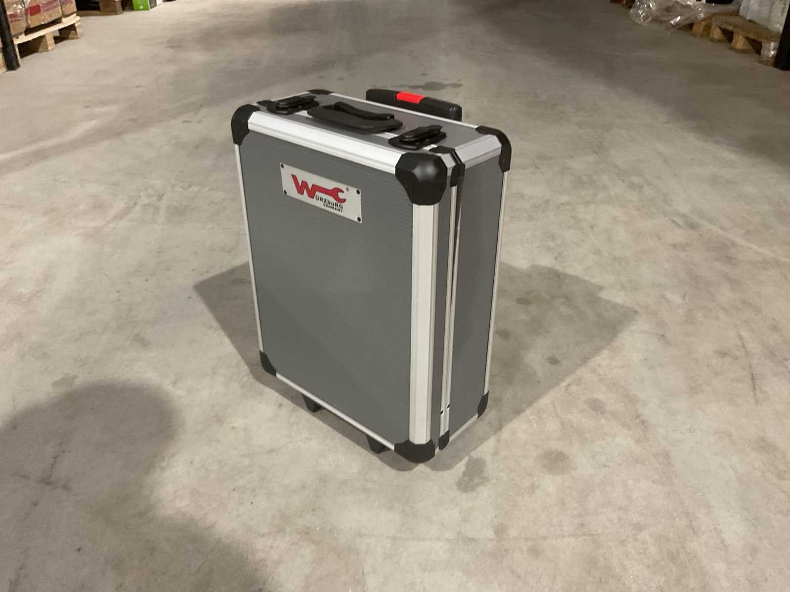 Voorzien van Schroevendraaierset; Lijmpistool; Waterpas; Hamer; Bitset; Inbussleutels; Spanningsmeter; Handgereedschap; Spijkers; pluggen; Aluminium Koffer; Telescoop handgreep; wielen; ongebruikt in doos Merk: Wurzburg Type: 396PCS W-800 Aluminium: true Metaal: true Met inhoud: true Afmeting l: 38.5mm Afmeting b: 20.5mm Afmeting h: 52mm Eigen gewicht: 13kg