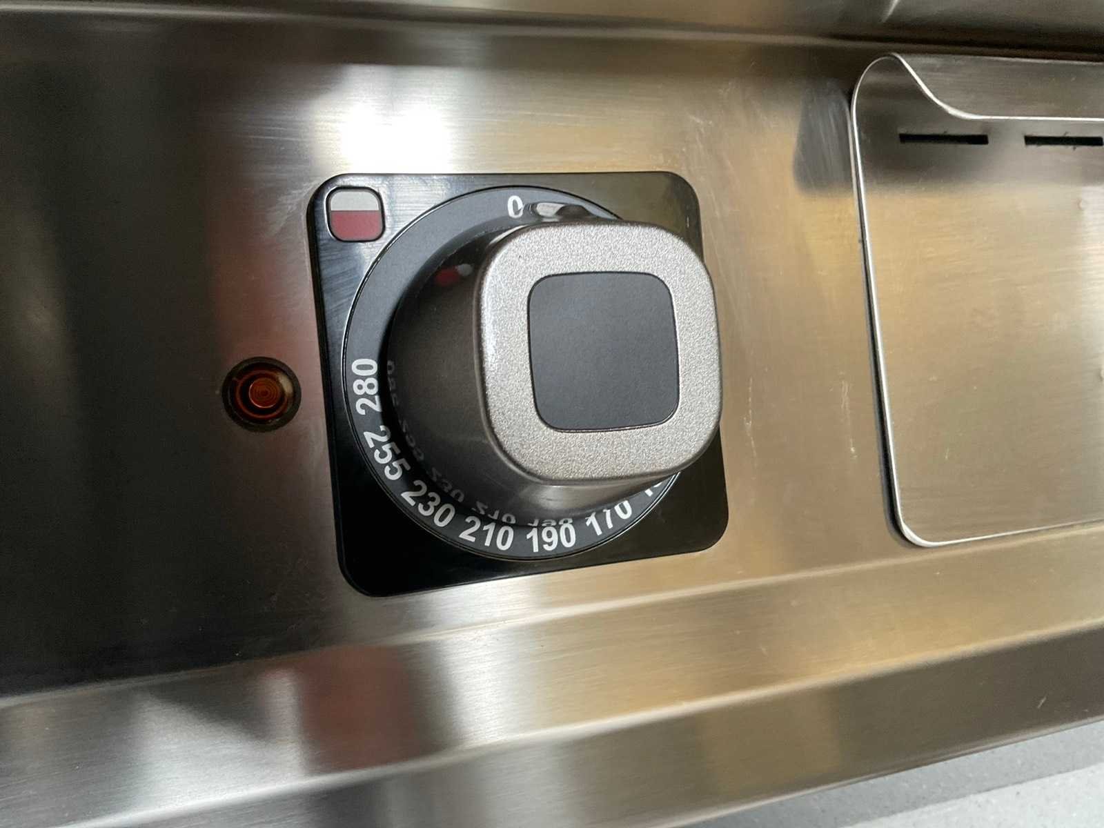 Bouwjaar: 03/2023, Voltage: 400v, Vermogen: 10,8 kW, Beschermingsklasse: IPX4, plaat oppervlak: 700x490mm. Merk: Metos Model: D74/10TSFTECR Materiaal: RVS Totale afmeting Breedte: 800mm Totale afmeting L: 760mm Totale afmeting Hoogte: 320mm