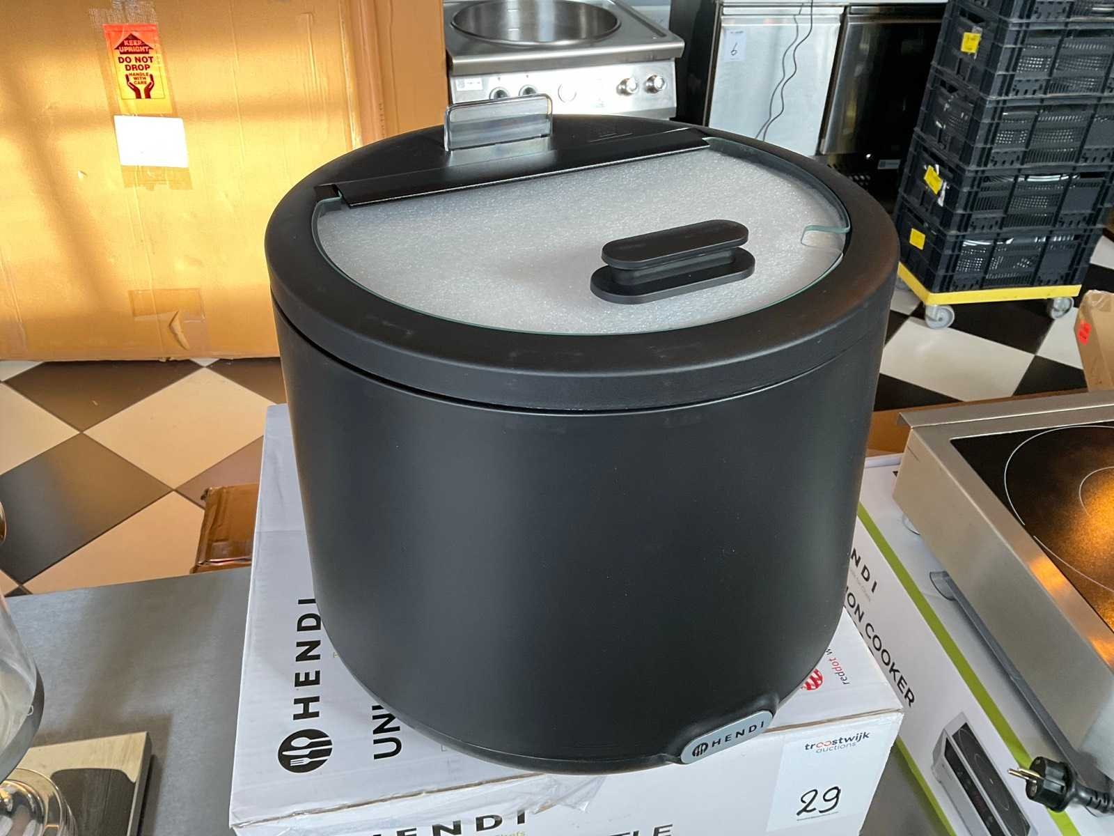 Inhoud: 8 liter, Voltage: 230v, Vermogen: 500W, Formaat: Ø 366 x H 325mm. Merk: Hendi Model: Uniq Materiaal: RVS