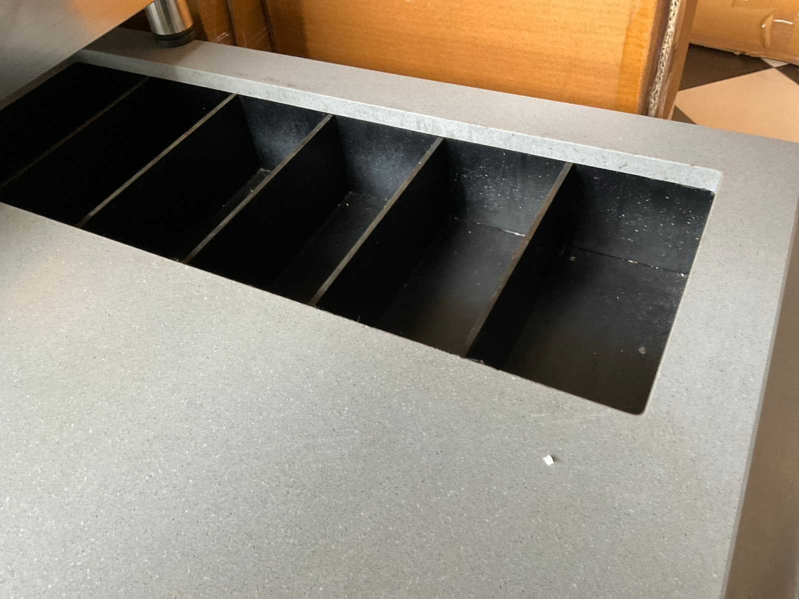 Met 2-deurs onderkast (geen sleutel), bestekgrijpbak. Totale afmeting L: 1450mm Totale afmeting Breedte: 600mm Totale afmeting Hoogte: 1000mm Materiaal: Hout / Graniet