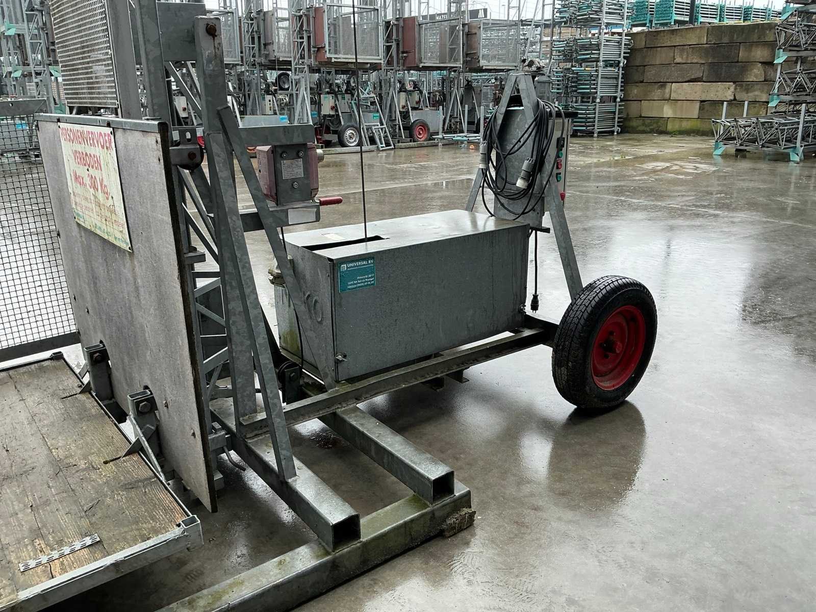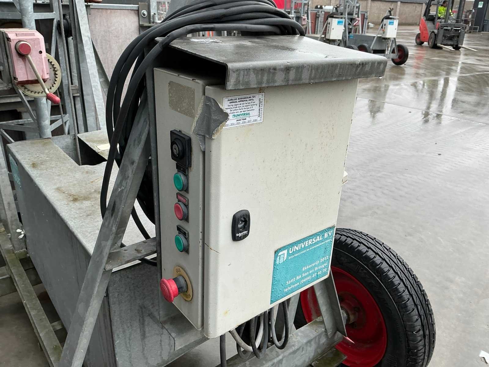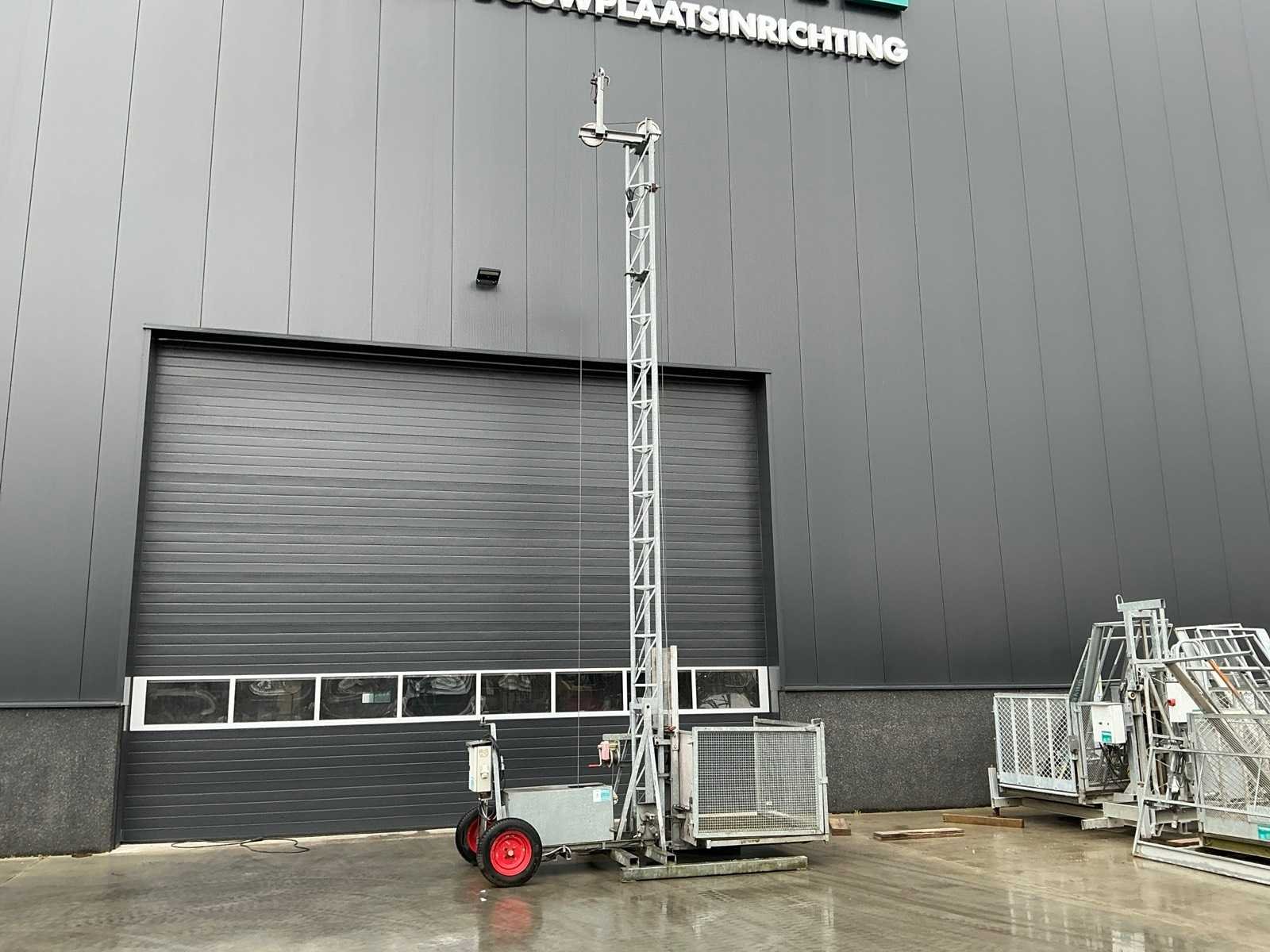 Basis mast 600 cm; met extra 1x 150 cm mastdeel; voorzien van kogelkoppeling voor trekhaak; elektrische aangedreven; alsook voorzien van handlier. Merk: Neko Type: 300A Bouwjaar: 2008 Serienummer: 9080077 Staalkabel: true Max. belasting: 300kg Hefhoogte: 6m Vrijstaande masthoogte: 7.5m Plateau afm. l: 1500mm Plateau afm. b: 1250mm Aantal mastdelen: 1 Aansluiting: 2V Motorvermogen (kW): 1.1kW