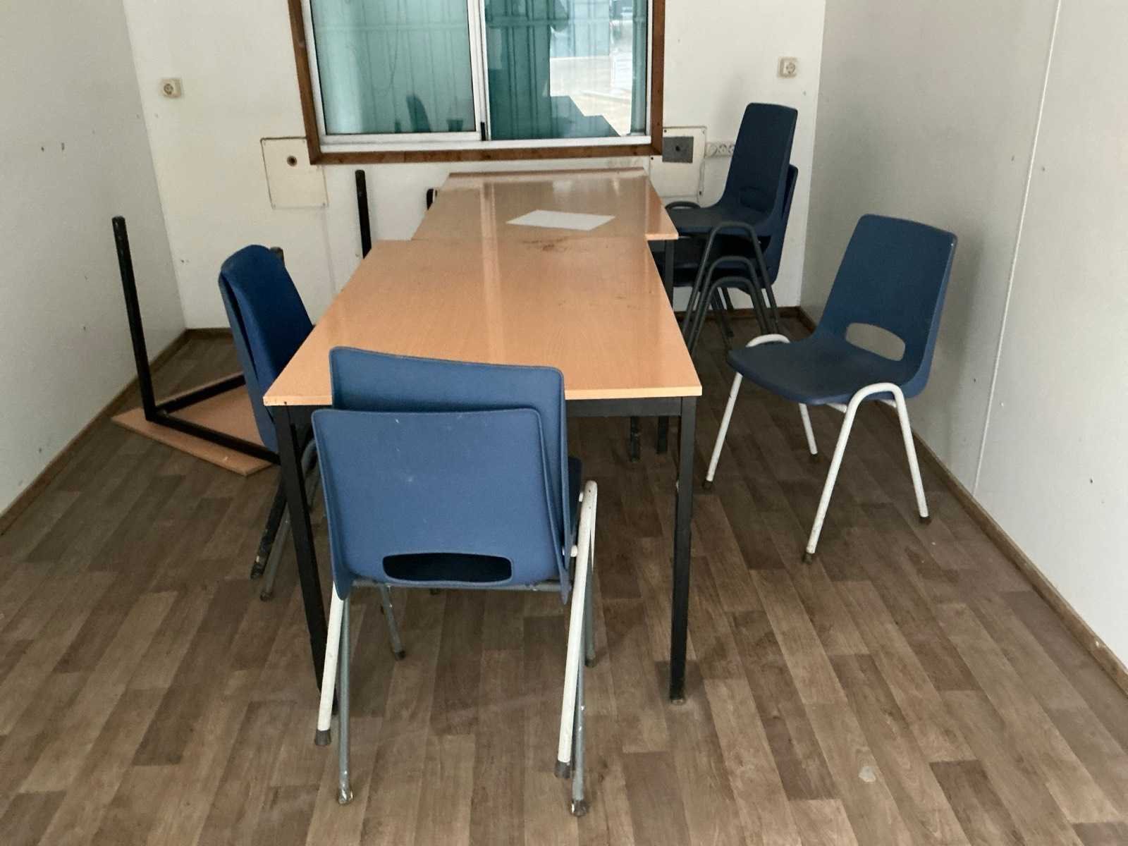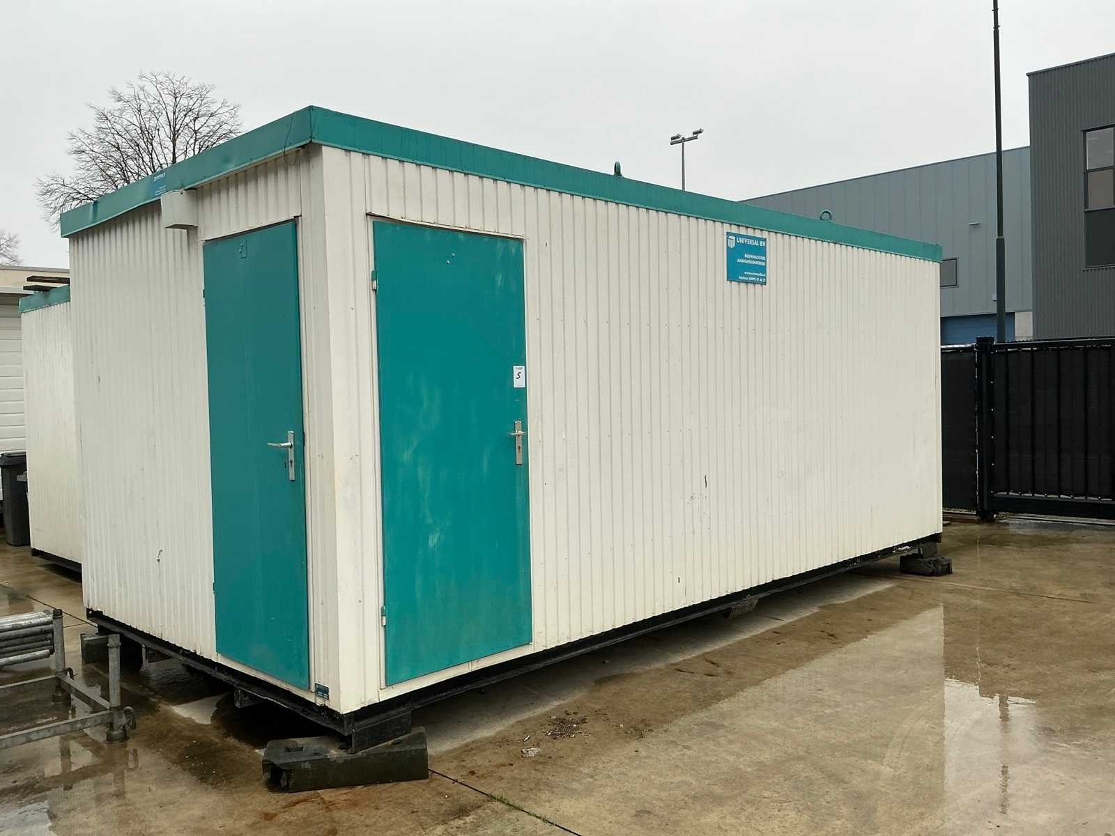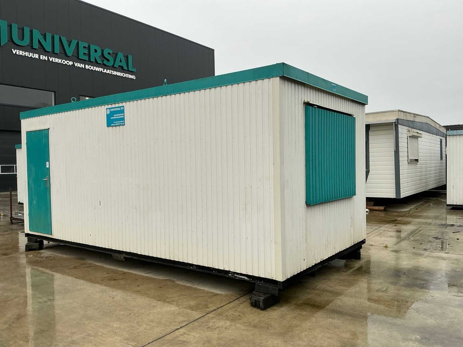 1x loopdeur; elektrische kachel; verlichting; 2x stopcontact; aansluiting 400 Volt 32 Ampère; 1x raam met luik; tafels, stoelenvoorzien van 4x hijsoog Aantal ramen: 2 Totale afmeting L: 6050mm Totale afmeting Breedte: 3000mm Totale afmeting Hoogte: 2750mm