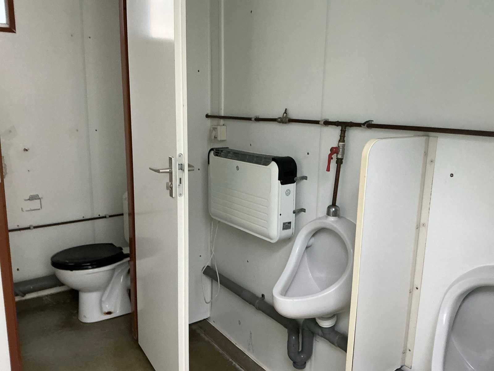 2x urinoir; 2x toilet; 2x wasbak met kraan; elektrische kachel; verlichting; 1x stopkontaktn aansluiting 230 Volt 16 Ampère; voorzien van 4x hijsoog; zonder slot in deur Aantal ramen: 1 Aantal toiletten: 2 Aantal wastafels: 2 Totale afmeting L: 3050mm Totale afmeting Breedte: 2400mm Totale afmeting Hoogte: 2750mm