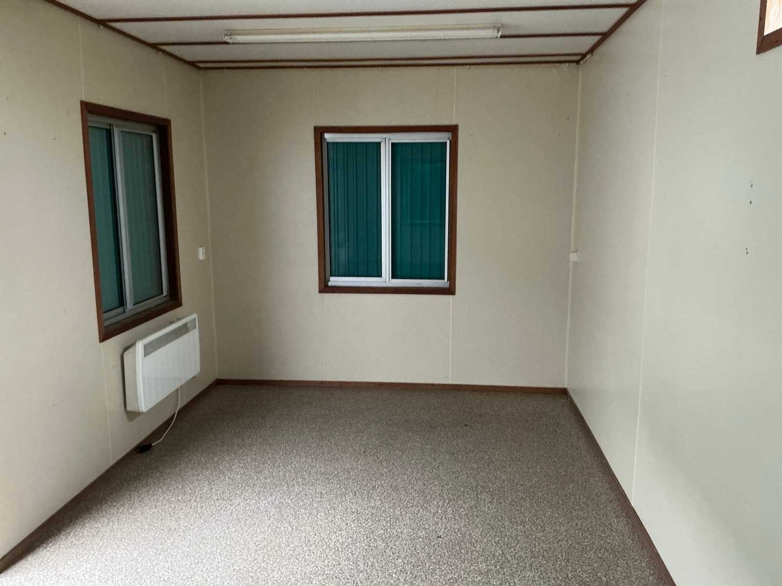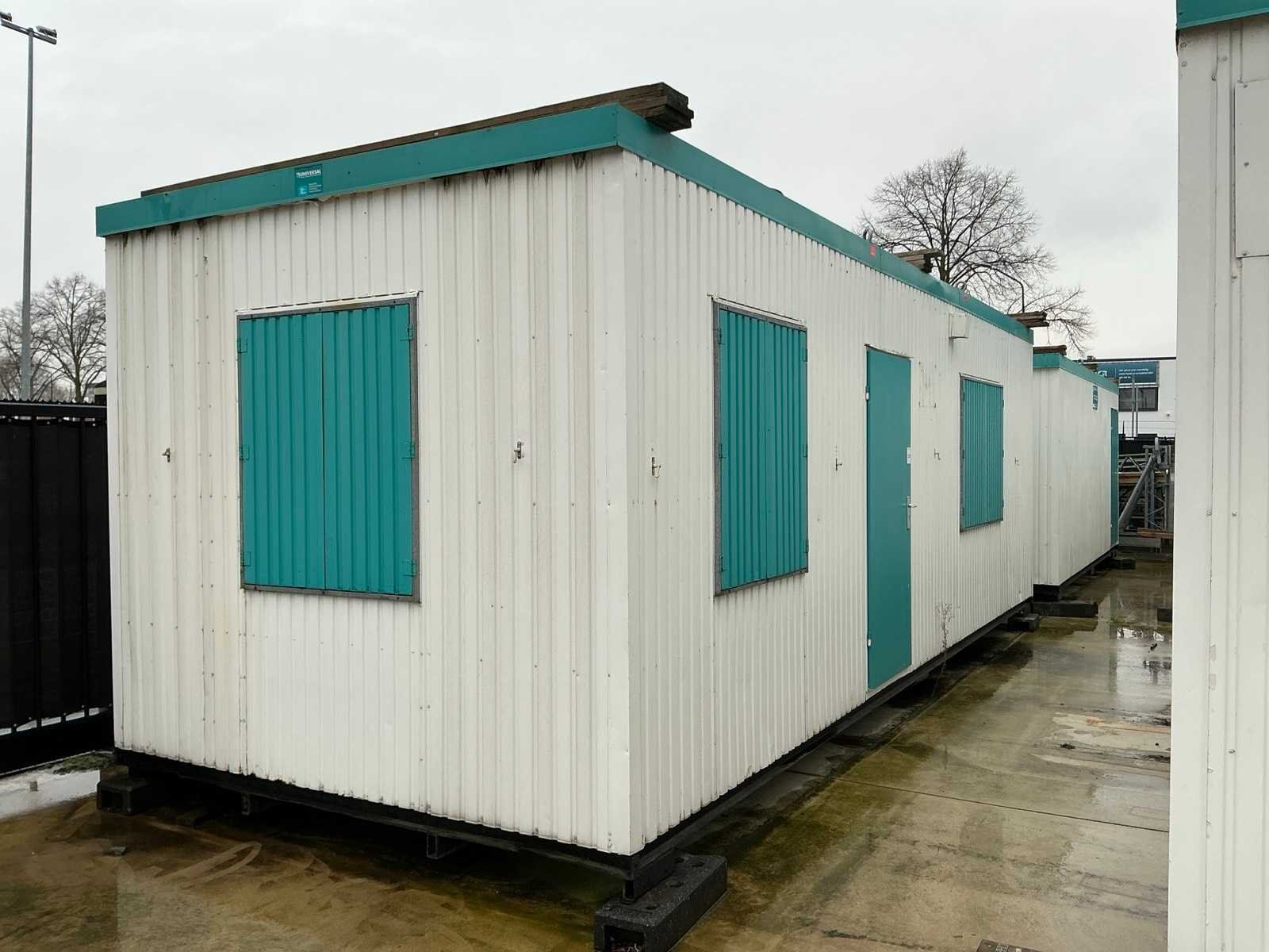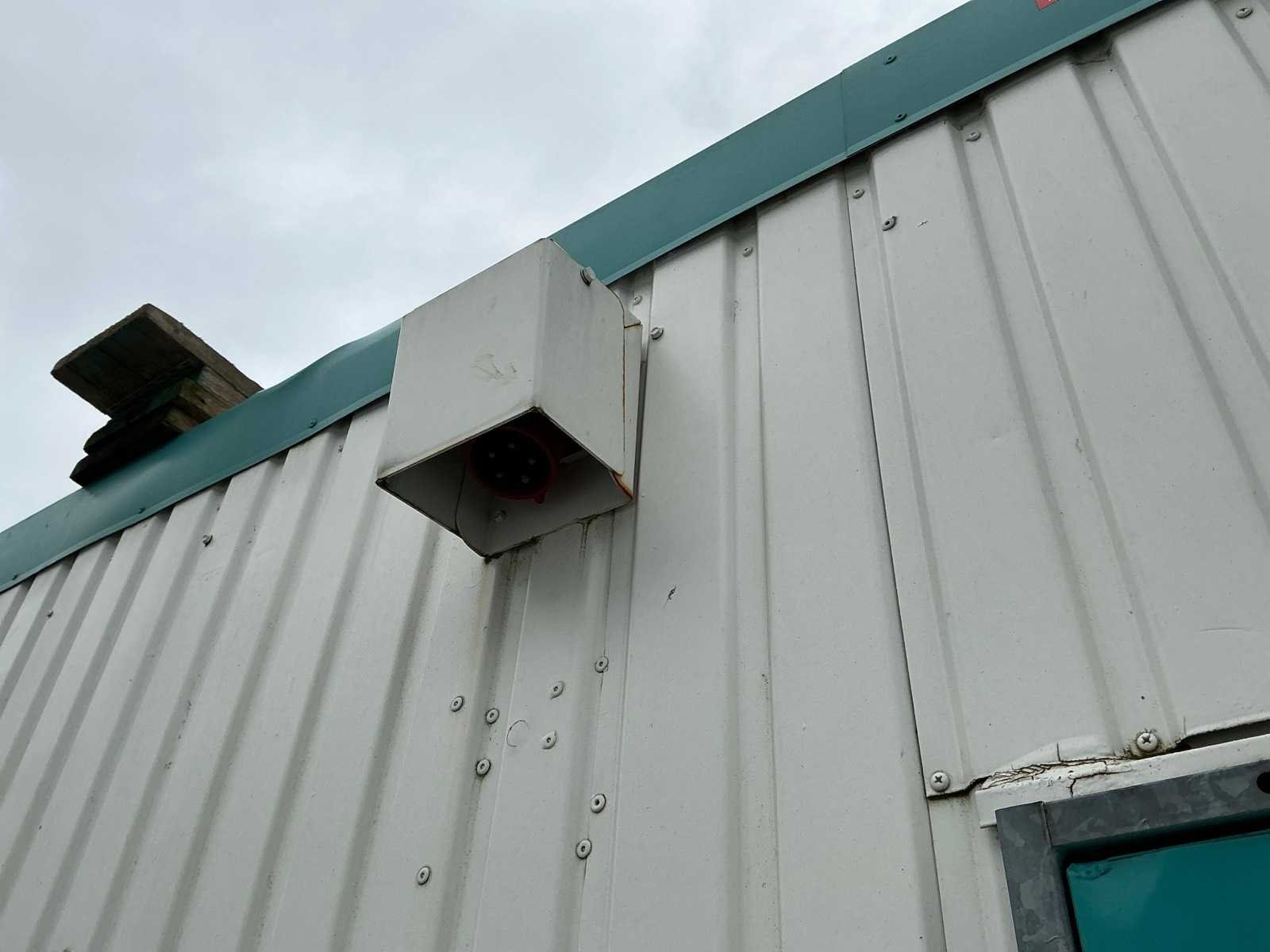 1x loopdeur; 2x elektrische kachel; verlichting; 5x stopcontact; aansluiting 400 Volt 32 Ampère; 4x schuifraam en 1x verluchtingsraam; voorzien van 4 hijsogen; scharnier deur beschadigd, afgebroken. Aantal ramen: 4 Totale afmeting L: 8080mm Totale afmeting Breedte: 3090mm Totale afmeting Hoogte: 2860mm