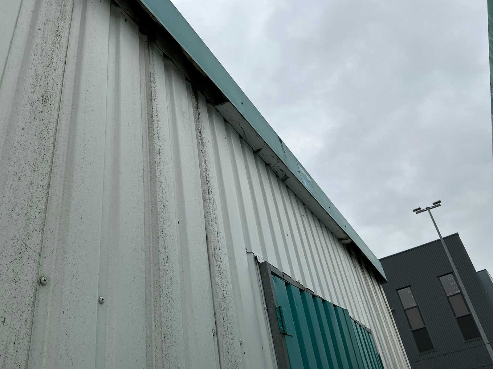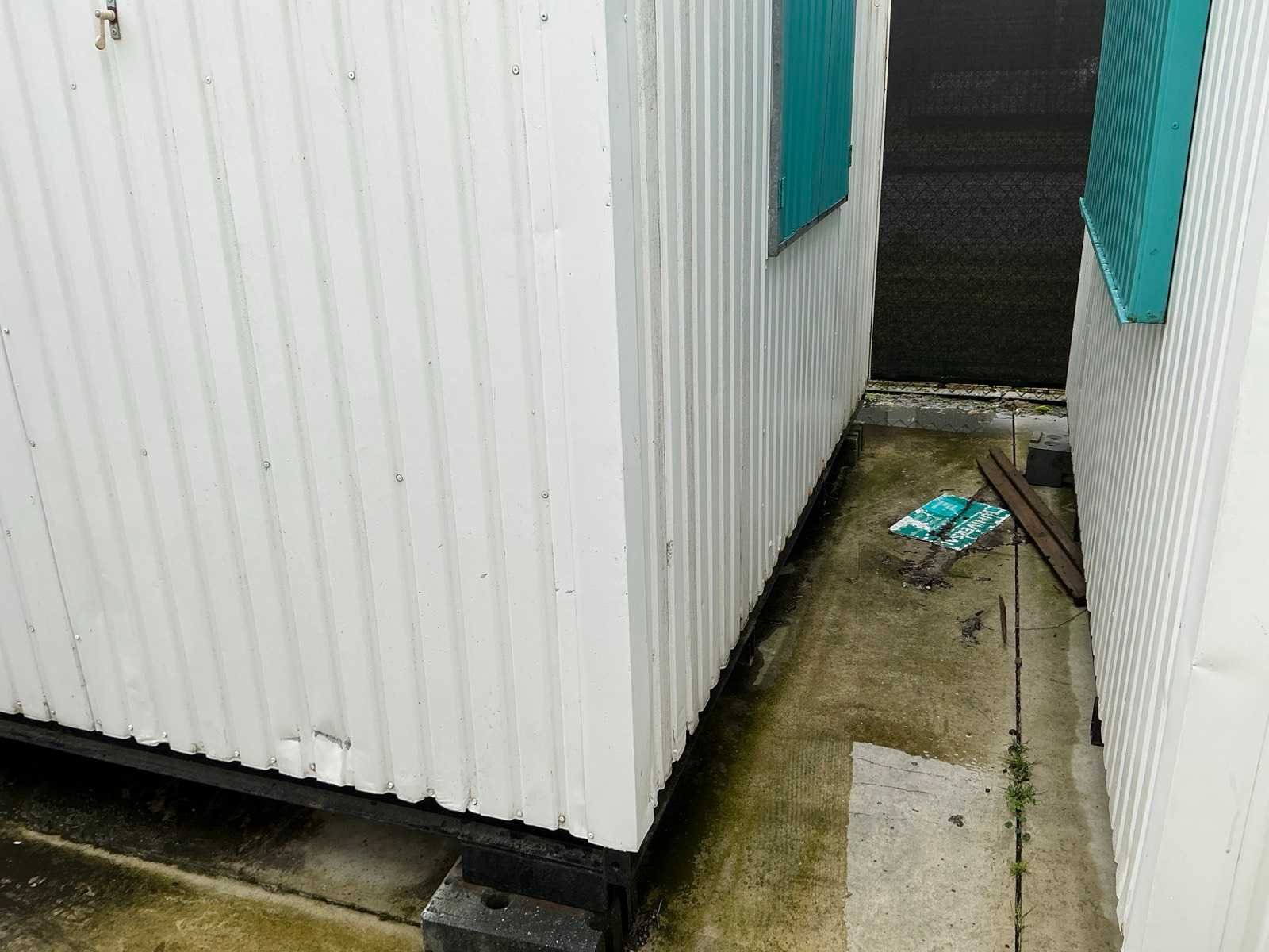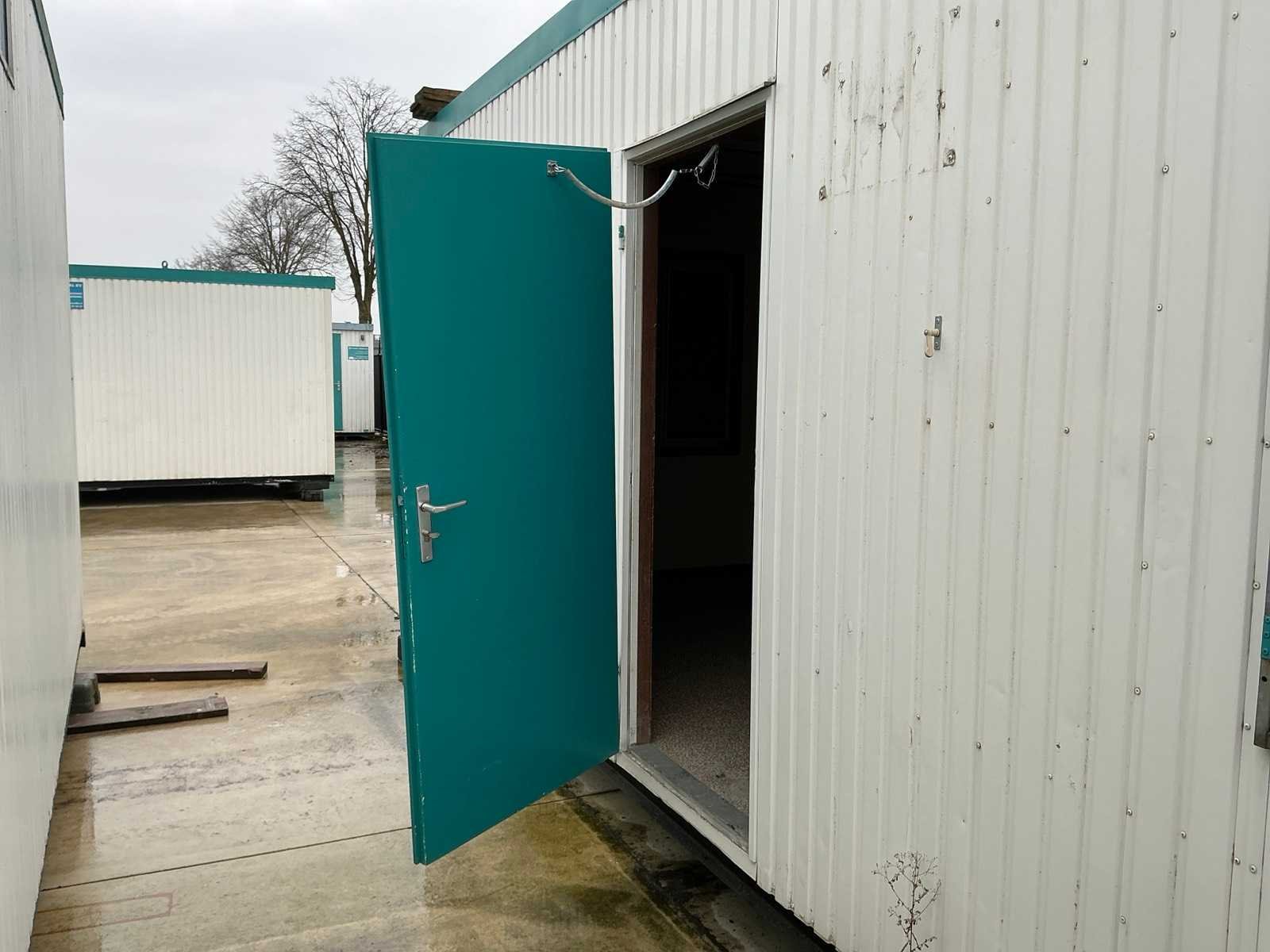 1x loopdeur; 2x elektrische kachel; verlichting; 5x stopcontact; aansluiting 400 Volt 32 Ampère; 4x schuifraam en 1x verluchtingsraam; voorzien van 4 hijsogen; scharnier deur beschadigd, afgebroken. Aantal ramen: 4 Totale afmeting L: 8080mm Totale afmeting Breedte: 3090mm Totale afmeting Hoogte: 2860mm
