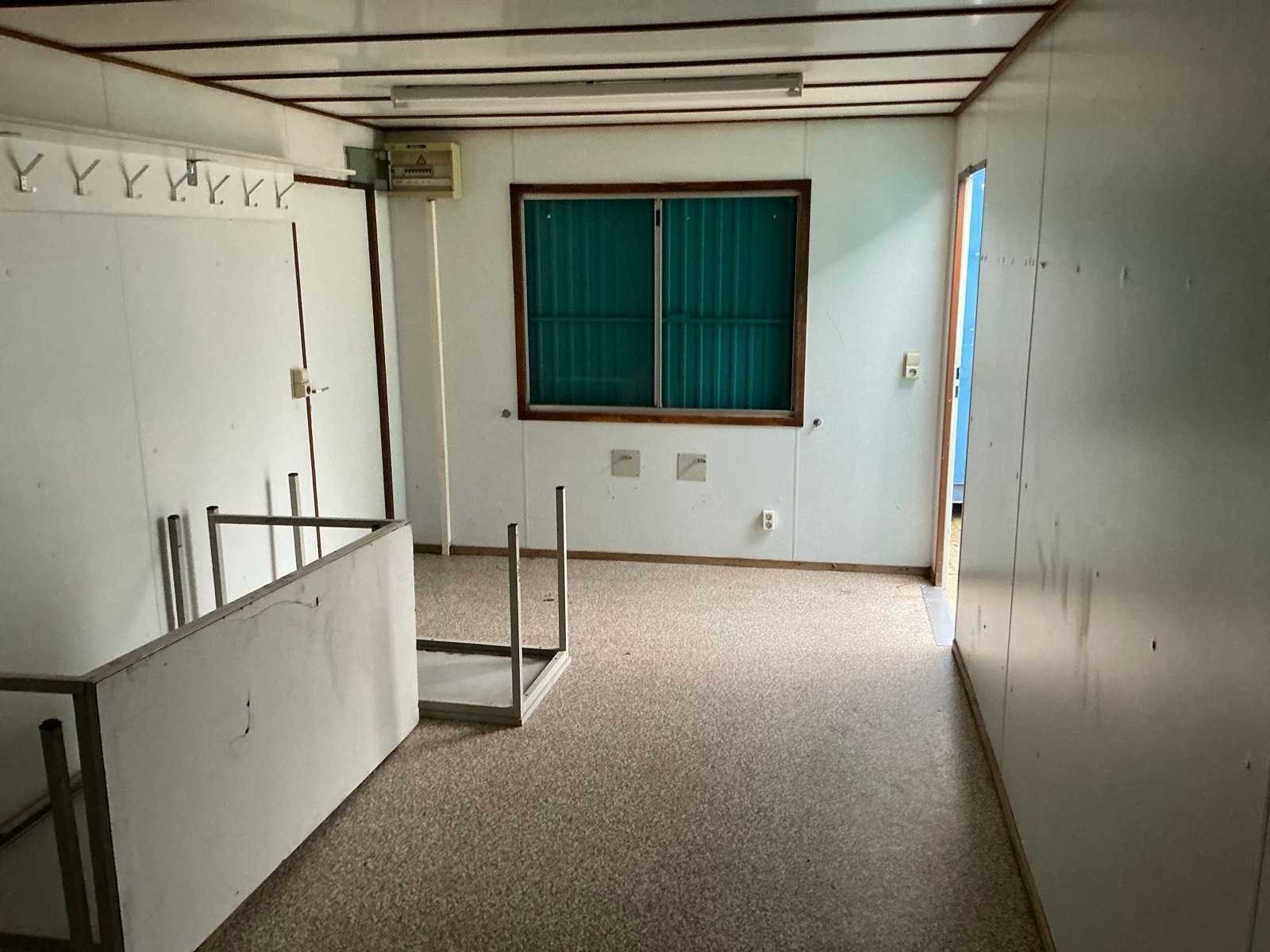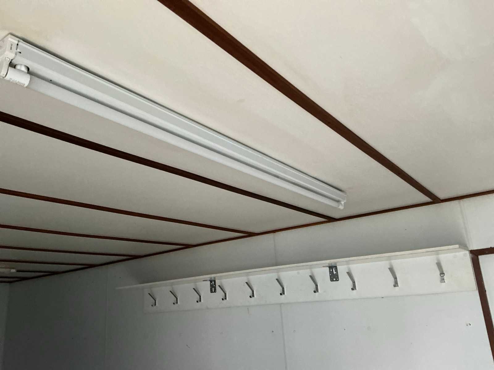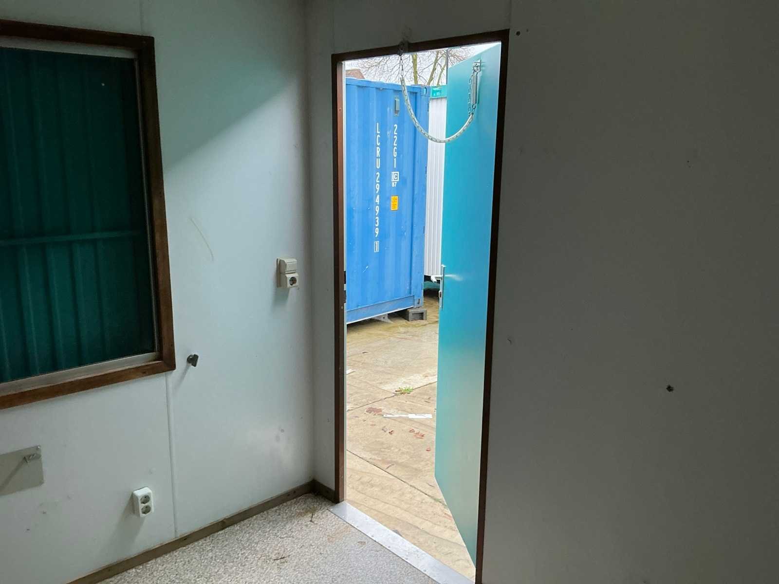 2x loopdeur; verlichting; 5x stopcontact; aansluiting 400 Volt 32 Ampère; 2x schuifraam ; 3 tafels; voorzien van 4 hijsogen Afmeting l: 6019mm Afmeting b: 3018mm Afmeting h: 2780mm Aantal ramen: 2