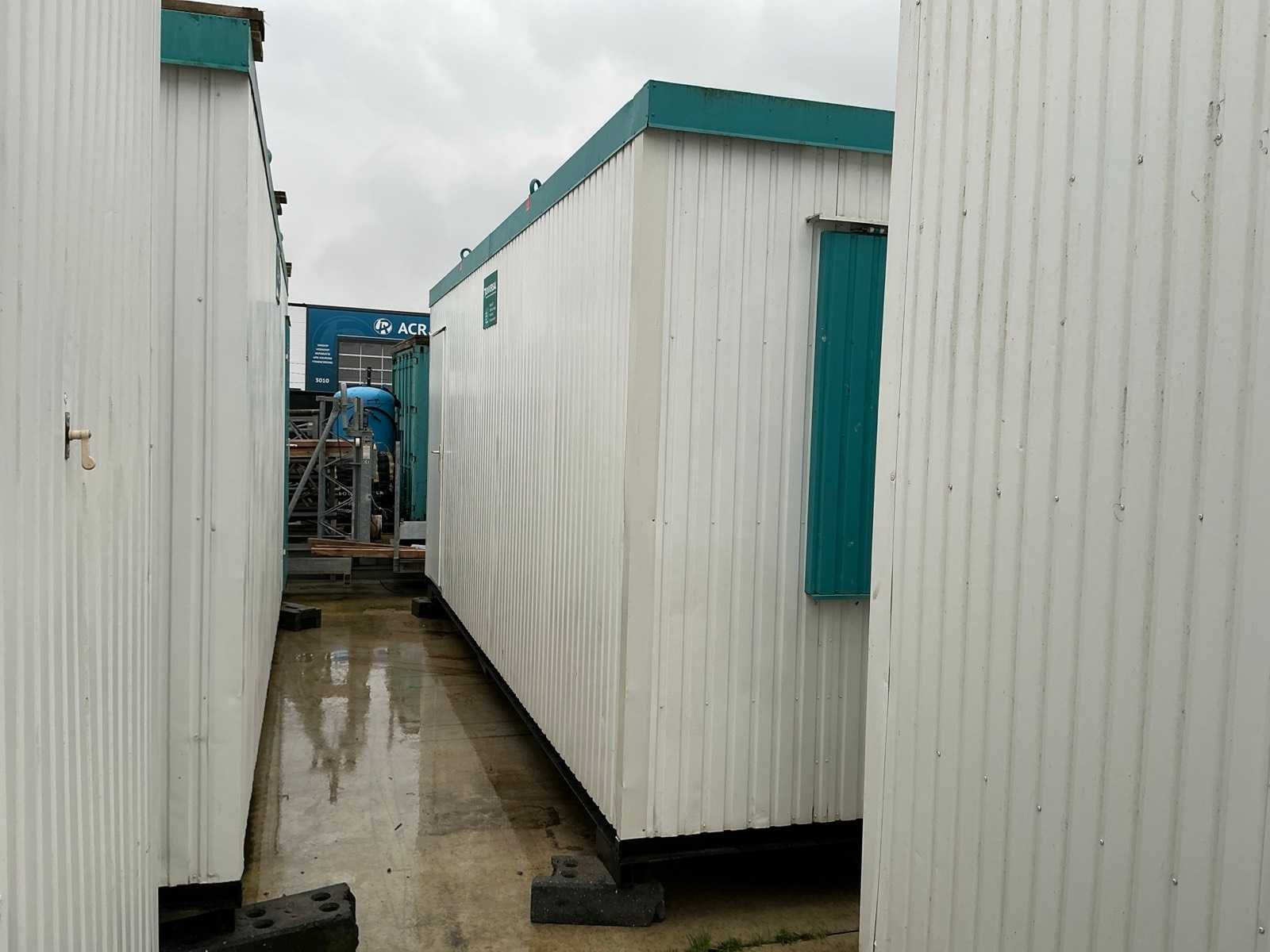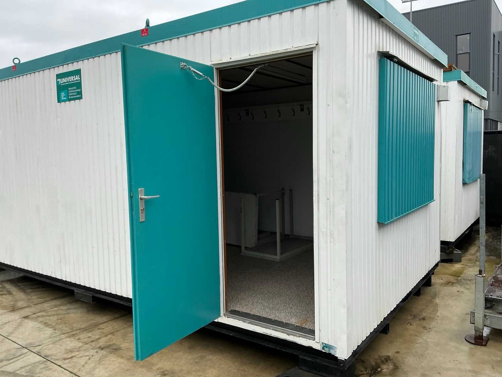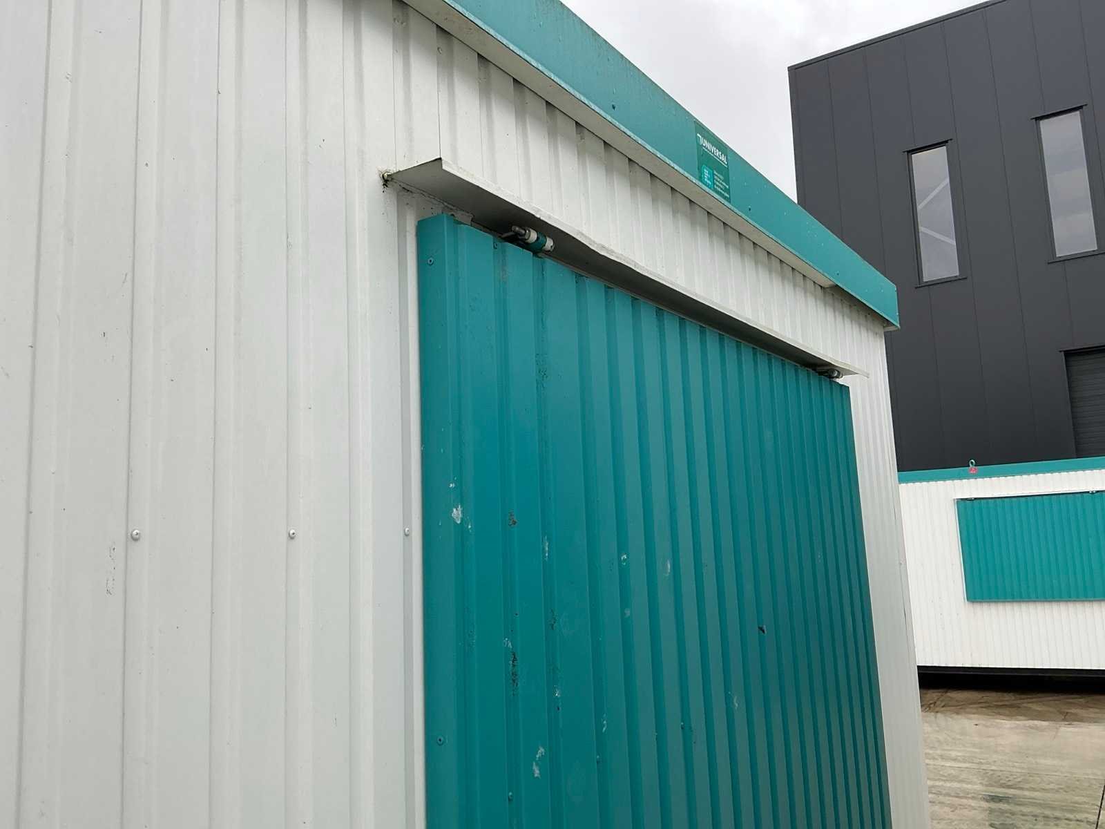 2x loopdeur; verlichting; 5x stopcontact; aansluiting 400 Volt 32 Ampère; 2x schuifraam ; 3 tafels; voorzien van 4 hijsogen Afmeting l: 6019mm Afmeting b: 3018mm Afmeting h: 2780mm Aantal ramen: 2