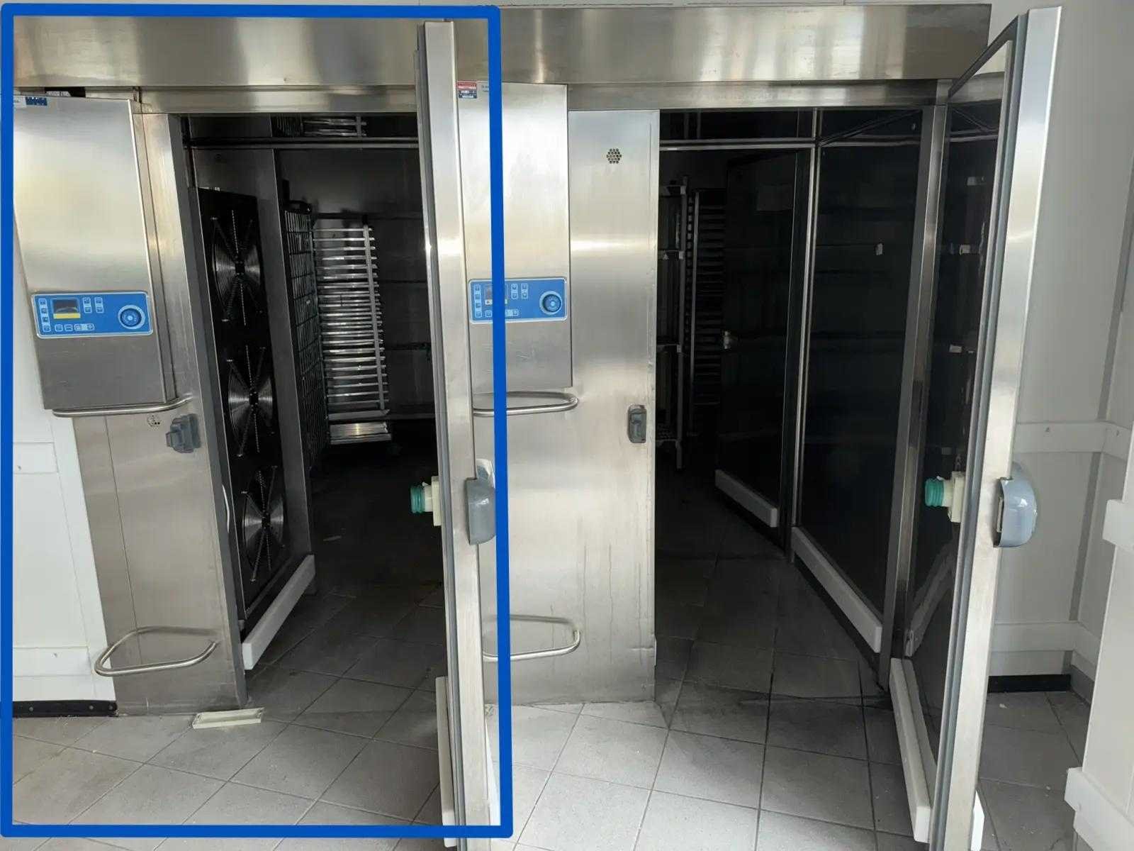 V.v. deuren aan beide kanten. Reeds professioneel gedemonteerd en zorgvuldig getransporteerd naar de afhaallocatie. LET OP! Voor bovenstaande kunnen additionele kosten van toepassing zijn. Producten zijn werkend, stroom was afgesloten op het moment van fotograferen. Blastchiller is zonder compressor. LET OP! Deze kavel maakt onderdeel uit van een combinatie kavel (kavelnummer 10) deze kavel blijft onder gunning totdat de combinatie kavel gesloten is. Merk: Polaris Type: PBC202DP Aansluiting: 400V Totale afmeting L: 1200mm Totale afmeting Breedte: 1200mm Totale afmeting Hoogte: 2200mm