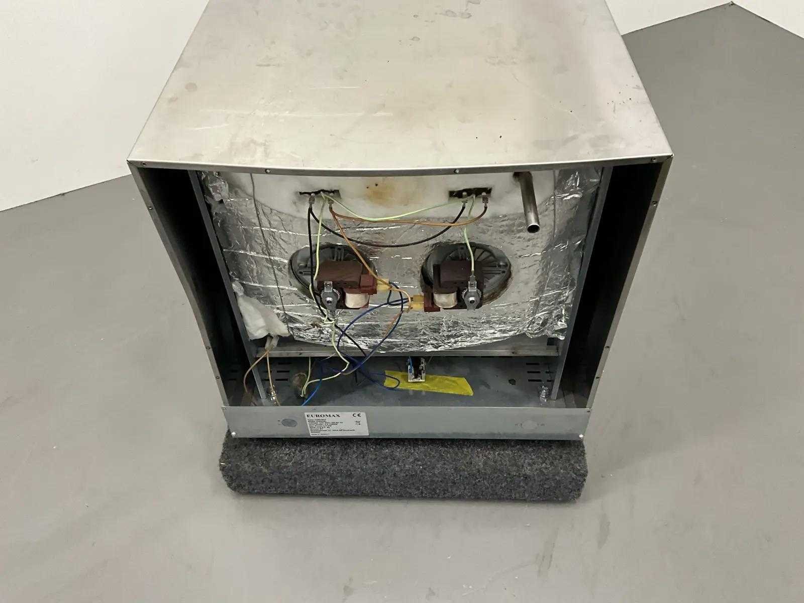 LET OP! Stekker en afdekplaat achterzijde ontbreekt. Merk: Euromax Type: Convect Aansluiting: 230V Vermogen: 2.7kW Totale afmeting L: 63cm Totale afmeting Breedte: 59cm Totale afmeting Hoogte: 64cm