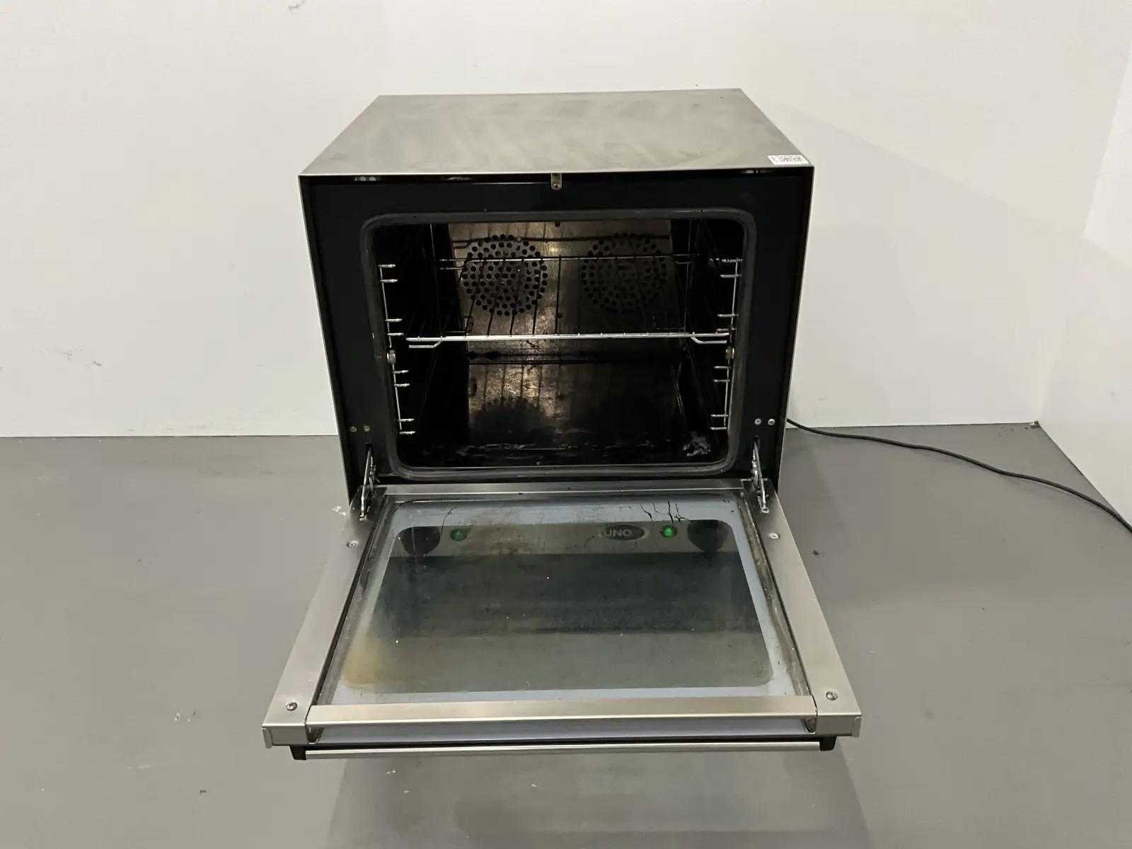 Merk: Unox Type: XF030-TG Aansluiting: 230V Vermogen: 2.6kW Totale afmeting L: 60cm Totale afmeting Breedte: 53cm Totale afmeting Hoogte: 57cm