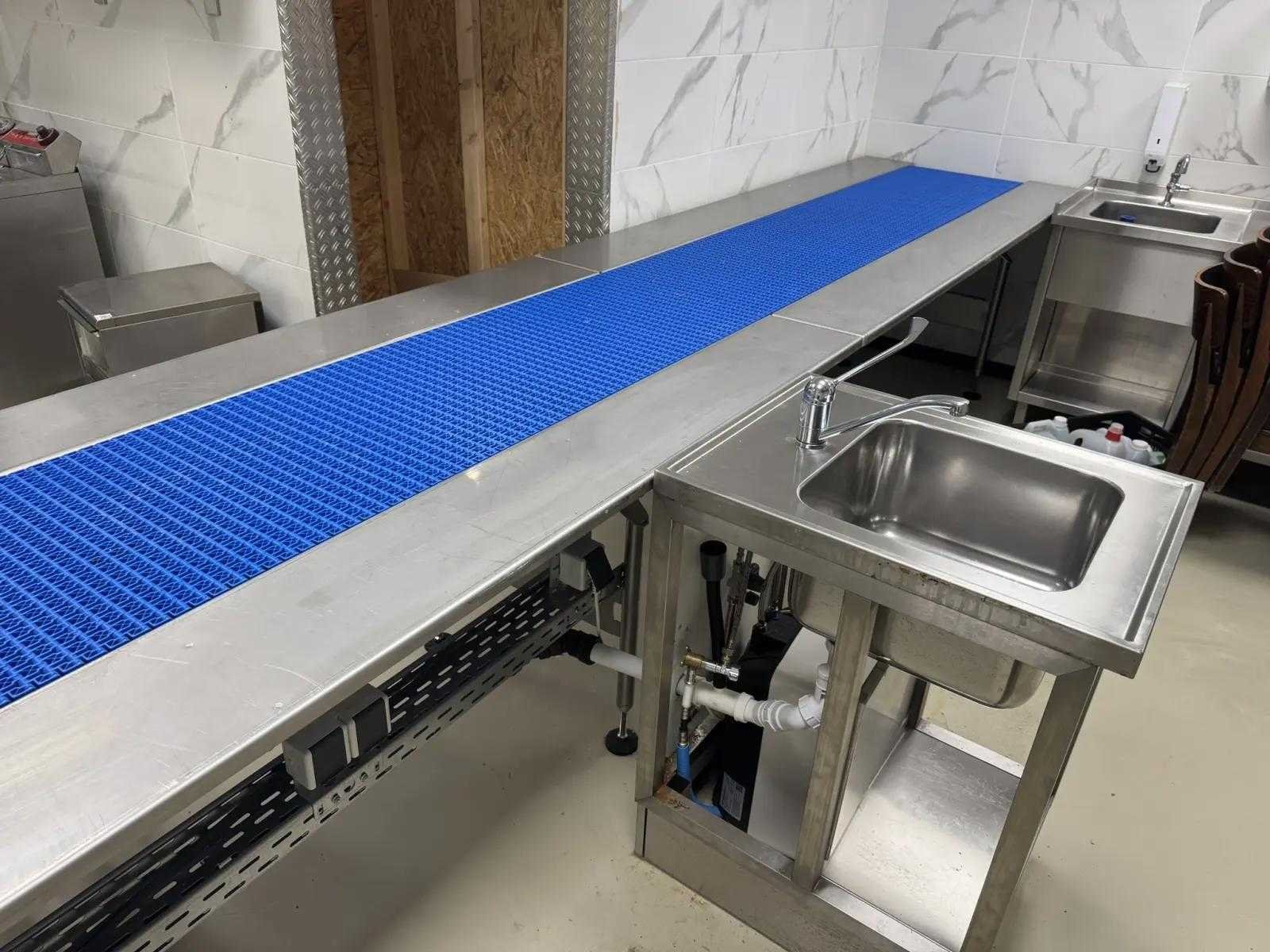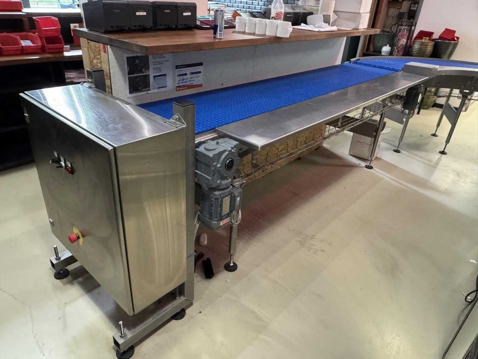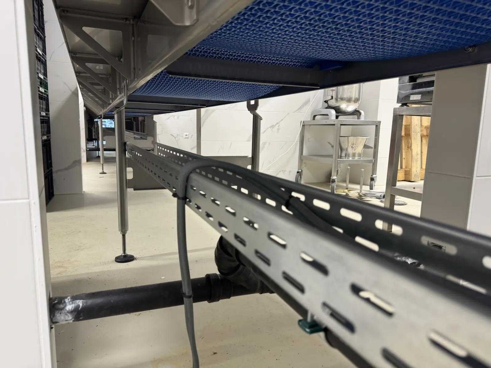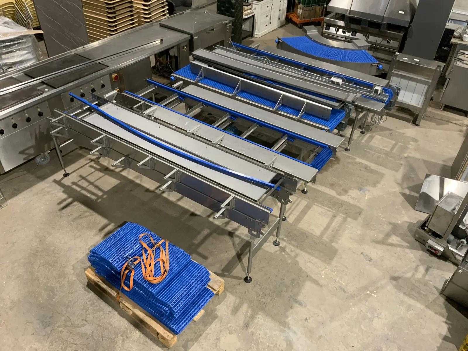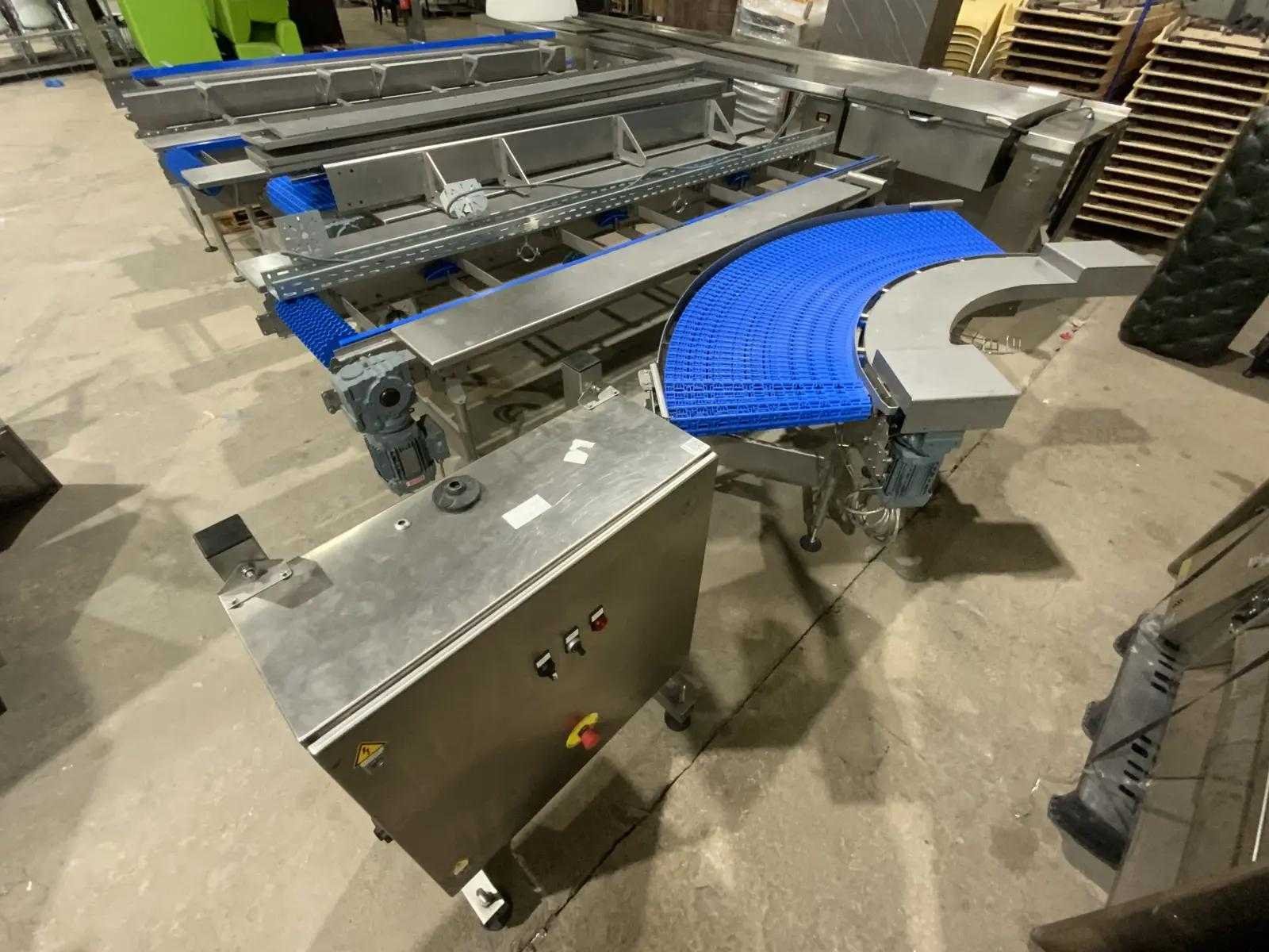 Transportband met 20 meter aan bandlengte. de breedte van de tafel is 1000mm en de transportband breedte is 50 cm. Bekijk een video van de werking door deze link te kopieren: https://www.youtube.com/watch?v=AtKLb5fPcGQ Reeds professioneel gedemonteerd en zorgvuldig getransporteerd naar de afhaallocatie. LET OP! Voor bovenstaande kunnen additionele kosten van toepassing zijn. Merk: New Motion Type: MBC-S & MBC-C Bouwjaar: 2021 Totale afmeting L: 15550mm Totale afmeting Breedte: 4200mm Totale afmeting Hoogte: 1900mm